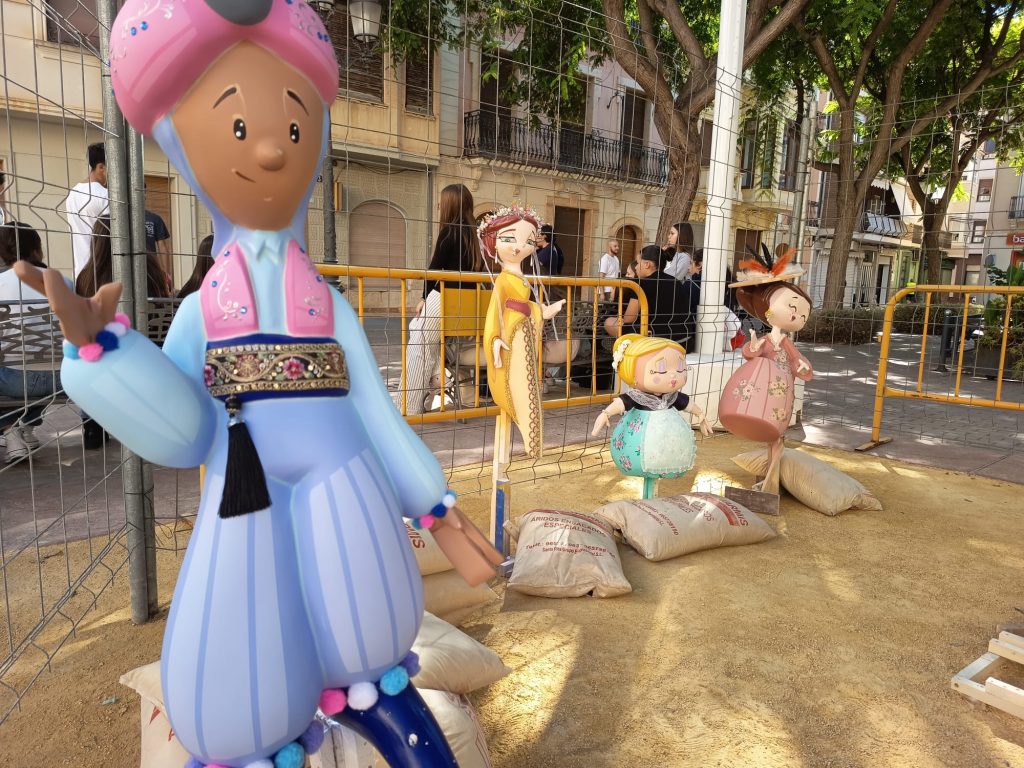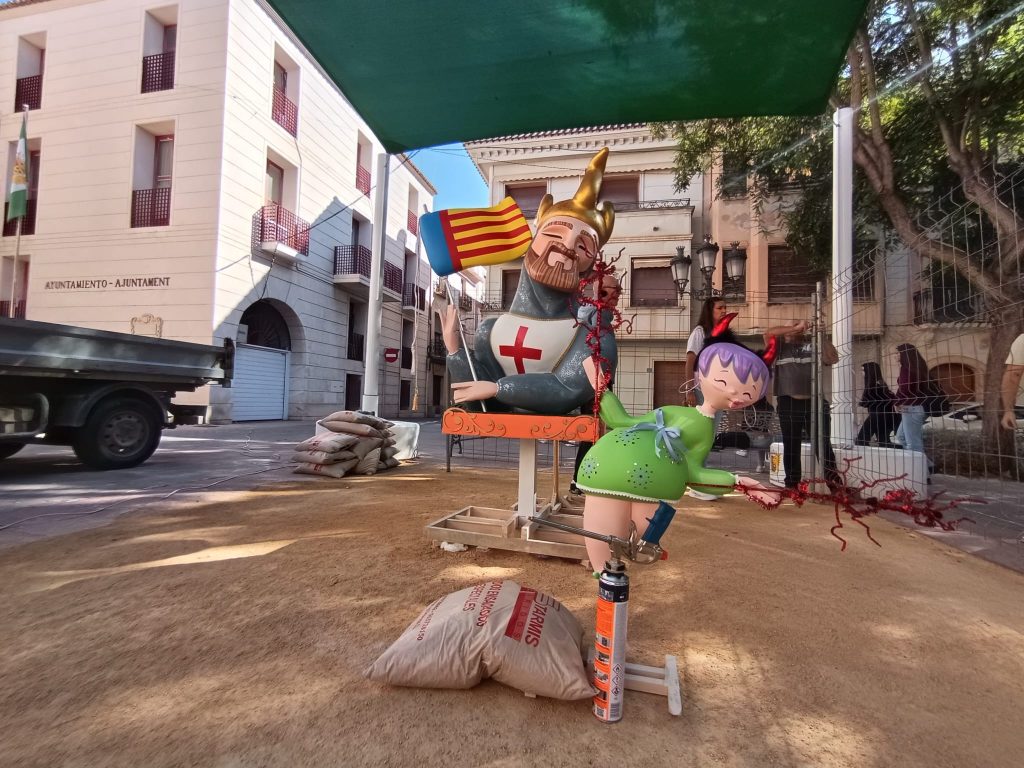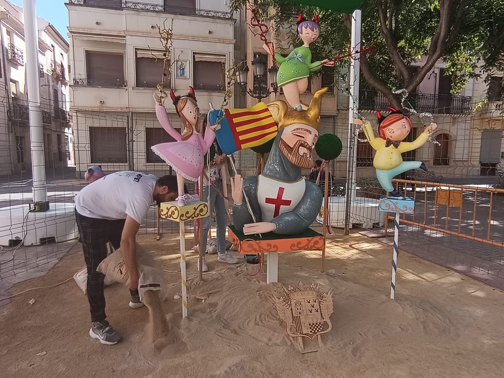 La Plaça Vella acoge ya los trabajos de la “plantà” de Foguera Infantil que presidirá la plaza durante las celebraciones del 9 d’Octubre. La obra ha sido realizada por SuperArte, el taller de maestros artesanos especializado en la creación de hogueras y fallas con sede en Novelda.