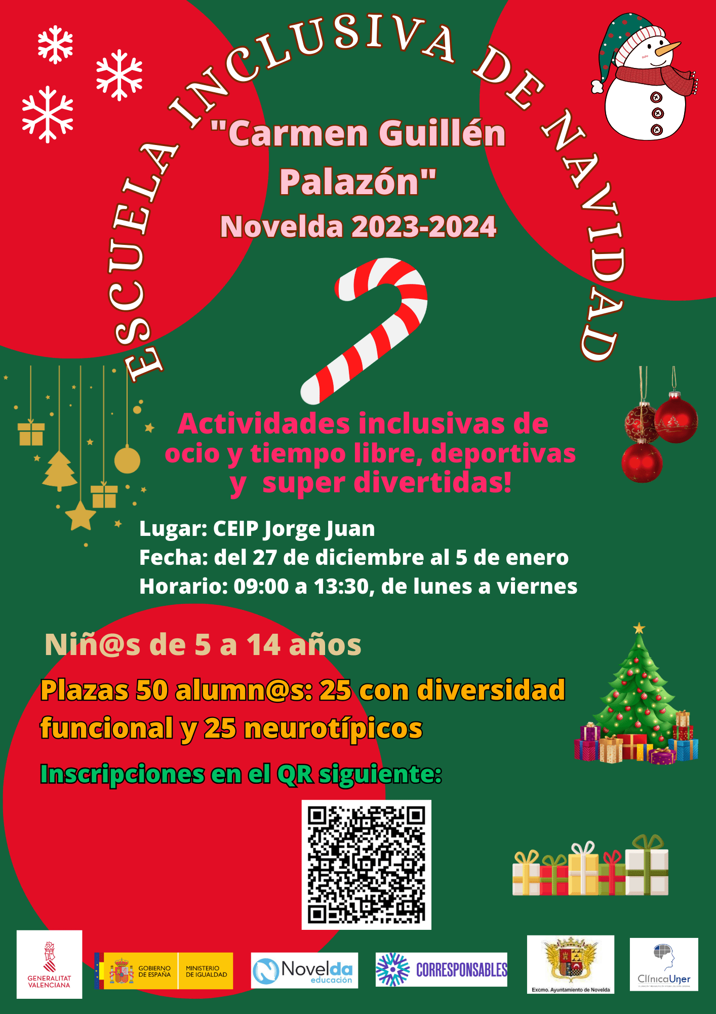 Las inscripciones se podrán realizar, a partir del 12 de diciembre, a través del QR y en la página de Educación del sitio web del Ayuntamiento de Novelda (novelda.es).