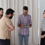 Fran Martínez ha aprovechado el encuentro con los jóvenes emprendedores de equipo creativo de Caravan para mostrar su satisfacción ante la creación de nuevos negocios en el municipio, donde, aseguraba, “la actividad comercial no cesa y los índices de nuevas aperturas son muy positivos”, derivados en buena parte por la exención del pago de la tasa por licencia de apertura para nuevos establecimientos comerciales, de hasta 250 metros, que el Ayuntamiento de Novelda aprobó en 2023 con el objetivo de “facilitar la puesta en marcha de nuevos proyectos de negocio, impulsar el emprendimiento y apoyar a autónomos, pymes y micropymes”, al tiempo que se revitaliza el casco urbano.