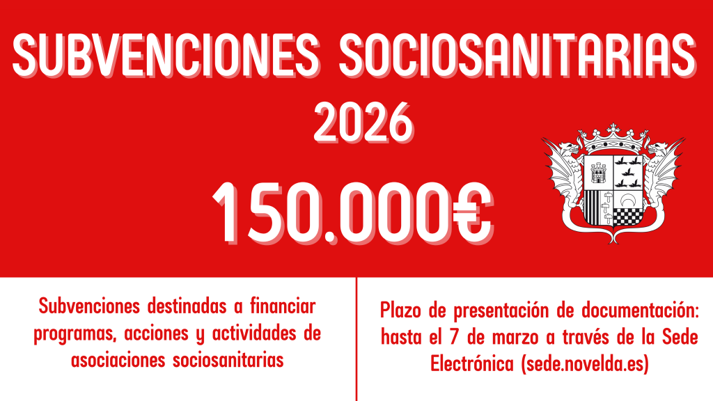 El Ayuntamiento de Novelda destina 150.000€ al programa de subvenciones para las asociaciones sociosanitarias sin ánimo de lucro del municipio, ayudas que permitirán a las entidades cofinanciar programas y actividades que se desarrollen entre noviembre de 2025 y noviembre de 2026.