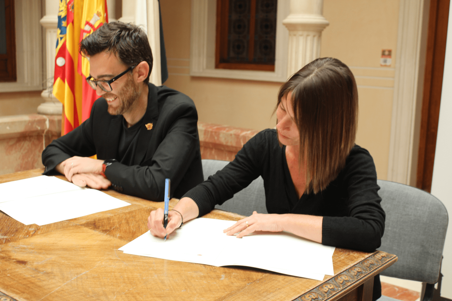 El alcalde de Novelda, Fran Martínez, y los presidentes y presidentas de las asociaciones de padres y madres de alumnos de los colegios Jorge Juan, Padre Dehon, San José de Cluny, Santa María Magdalena, Gómez Navarro, Alfonso X el Sabio, Jesús Navarro, Oratorio Festivo y Sánchez Albornoz y los IES Vinalopó y La Mola han firmado este convenio que, con un importe de 35.367€, se reparte de manera proporcional al número de alumnos participantes de cada uno de ellos y a las actividades realizadas, con importes que oscilan entre 12.027€ y los 1.247€.