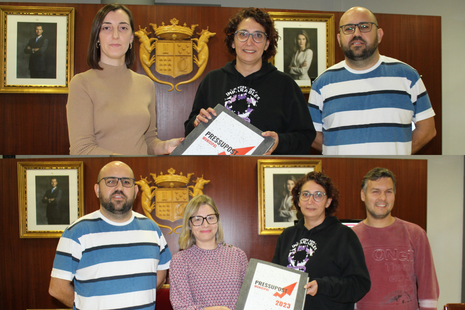 La primera teniente de alcalde, Geno Micó, las portavoces de Compromís, Silvia Anna, Guanyar, Lidia Martínez, y el concejal de Hacienda, Iván Ñíguez, fueron los encargados de rubricar unos acuerdos que, en palabras del responsable económico, “mejoran el documento presupuestario presentado por el equipo de gobierno” en materia de mantenimiento de ciudad, emergencia climática, fomento del empleo, accesibilidad, sanidad, educación o patrimonio, entre otras.