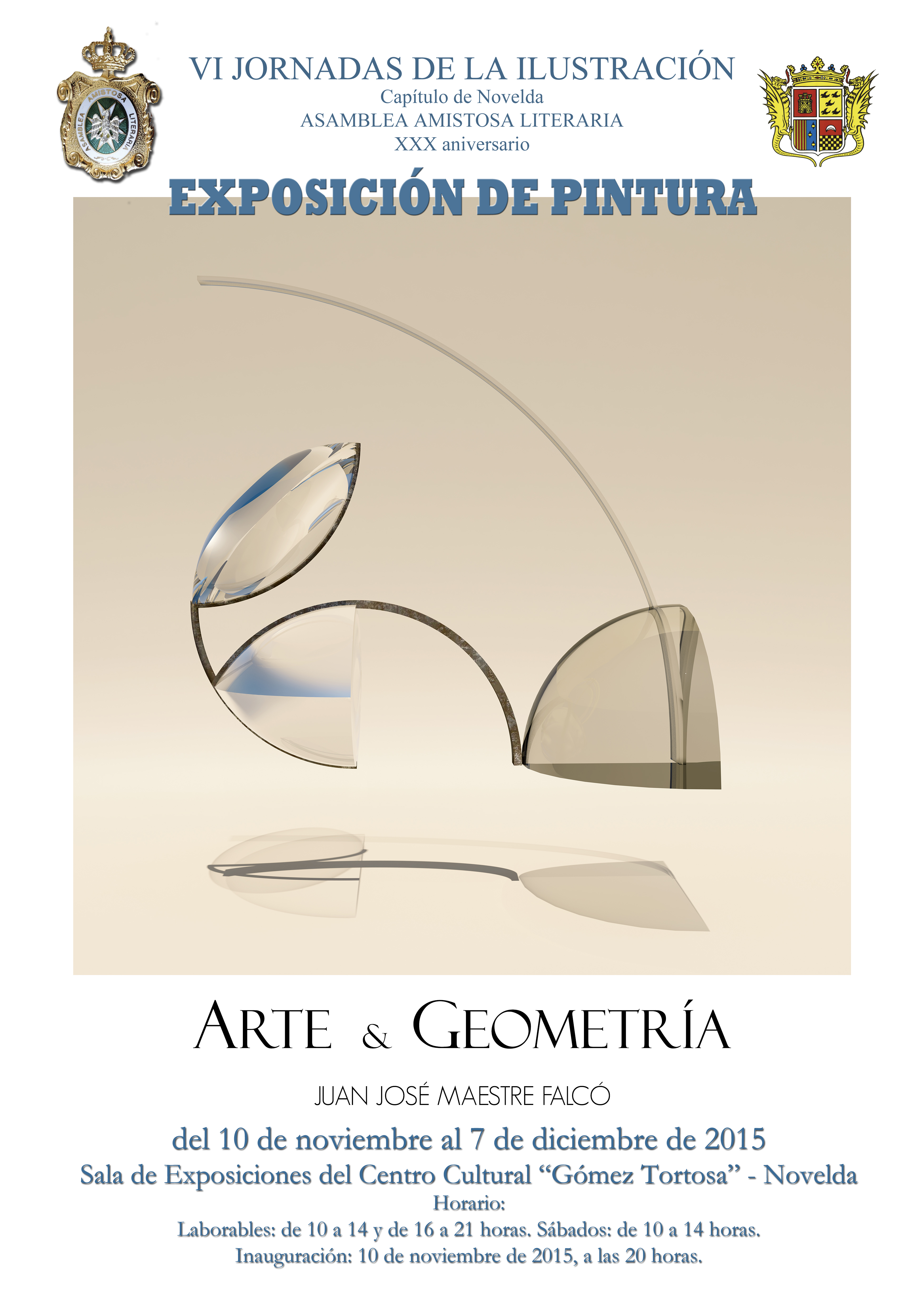 Del 10 de noviembre al 7 de diciembre, en el Centro Cultural Gómez-Tortosa. Exposición “Arte y geometría”, de Juan José. Maestre Falcó. Horario: de lunes a viernes de 10:00 a 14:00 h. y de 16:00 a 21:00 h.; sábados de 10:00 a 14:00 h. Org. Asamblea Amistosa Literaria y Concejalía de Cultura y Patimonio.