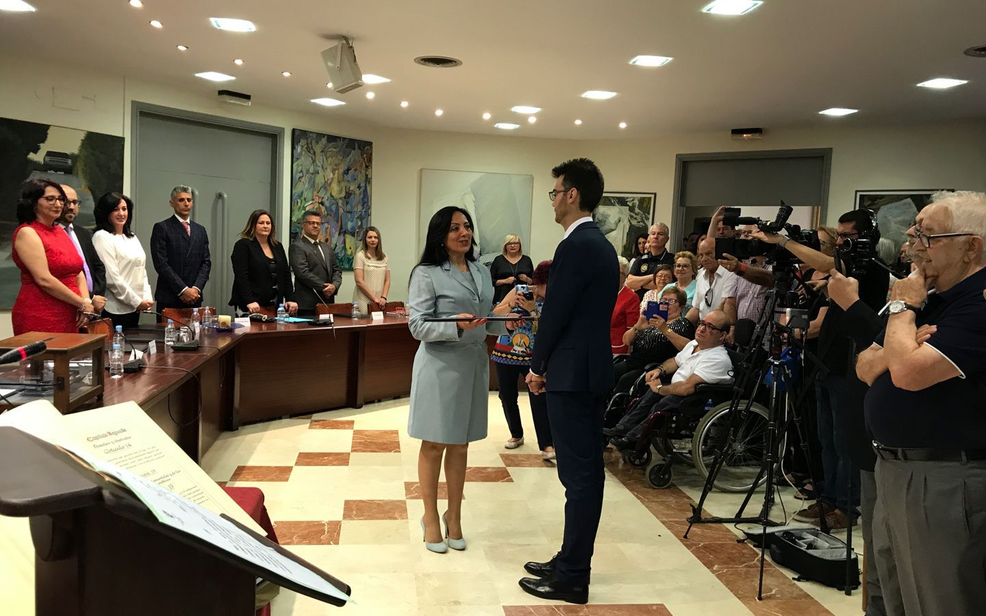 Tras la votación secreta en urna por parte de todos los concejales electos, Margarita Serrano, reperesentante de Vox, como presidenta de la mesa de edad, de la que también ha formado parte la socialista Mélani Sánchez como miembro más joven de la corporación municipal, ha sido la encargada de proclamar a Fran Martínez como nuevo alcalde, invistiéndolo de la “autoridad, tratamiento, derechos y deberes del cargo” y entregarle el simbólico bastón de mando.