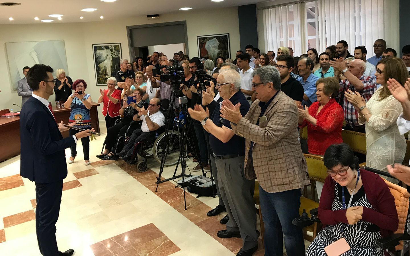 El pleno de constitución de la nueva corporación municipal y elección de alcalde ha contado con numeroso público que, tanto en el Salón de Plenos como en el vestíbulo del Ayuntamiento, ha podido seguir en directo una sesión en la que han estado presentes los tres alcaldes socialistas de la etapa democrática, Salvador Sánchez, Luis Gómez y Mariano Beltrá, así como la diputada autonómica Laura Soler.