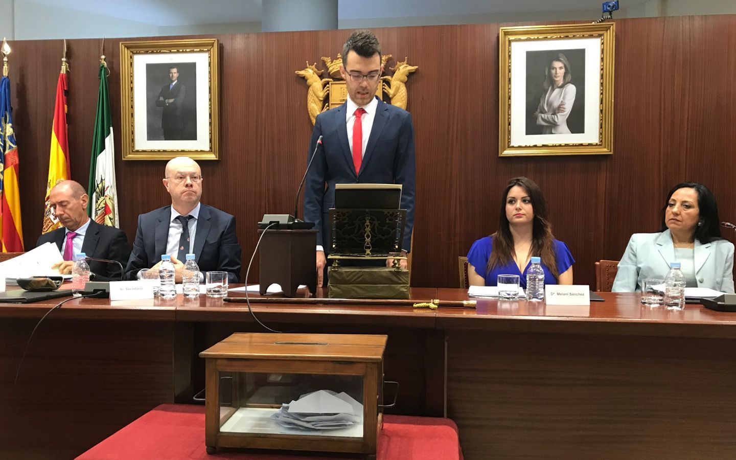 Con los once votos de los concejales socialistas, que le otorgan la mayoría absoluta, el socialista Fran Martínez se ha convertido esta mañana en el nuevo alcalde de Novelda en el transcurso de un pleno constitutivo en el que los 21 miembros de la corporación municipal han jurado o prometido sus cargos.