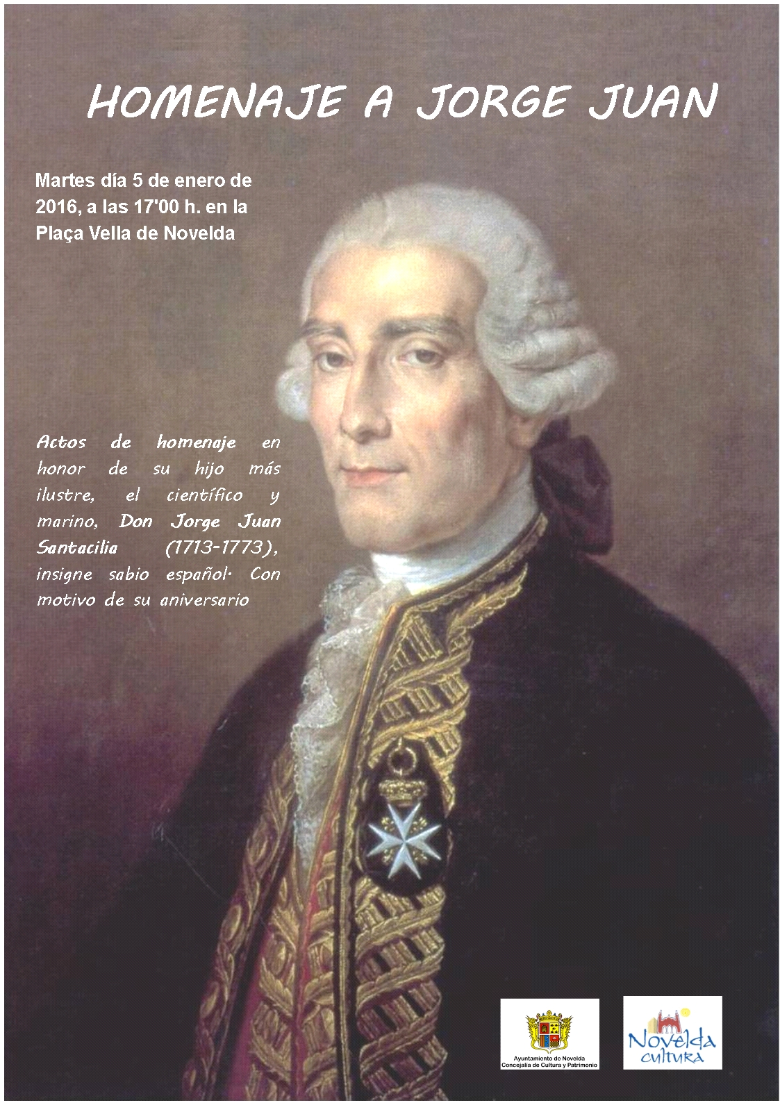 Martes 5 de enero, a las17’00 h. en la Plaça Vella, Homenaje a Jorge Juan. Con la paricipación de la Unión Musical “La Artística” y del Orfeón Noveldense “Solidaridad”. Organiza: Asamblea Amistosa Literaria y Concejalía de Cultura y Patrimonio.