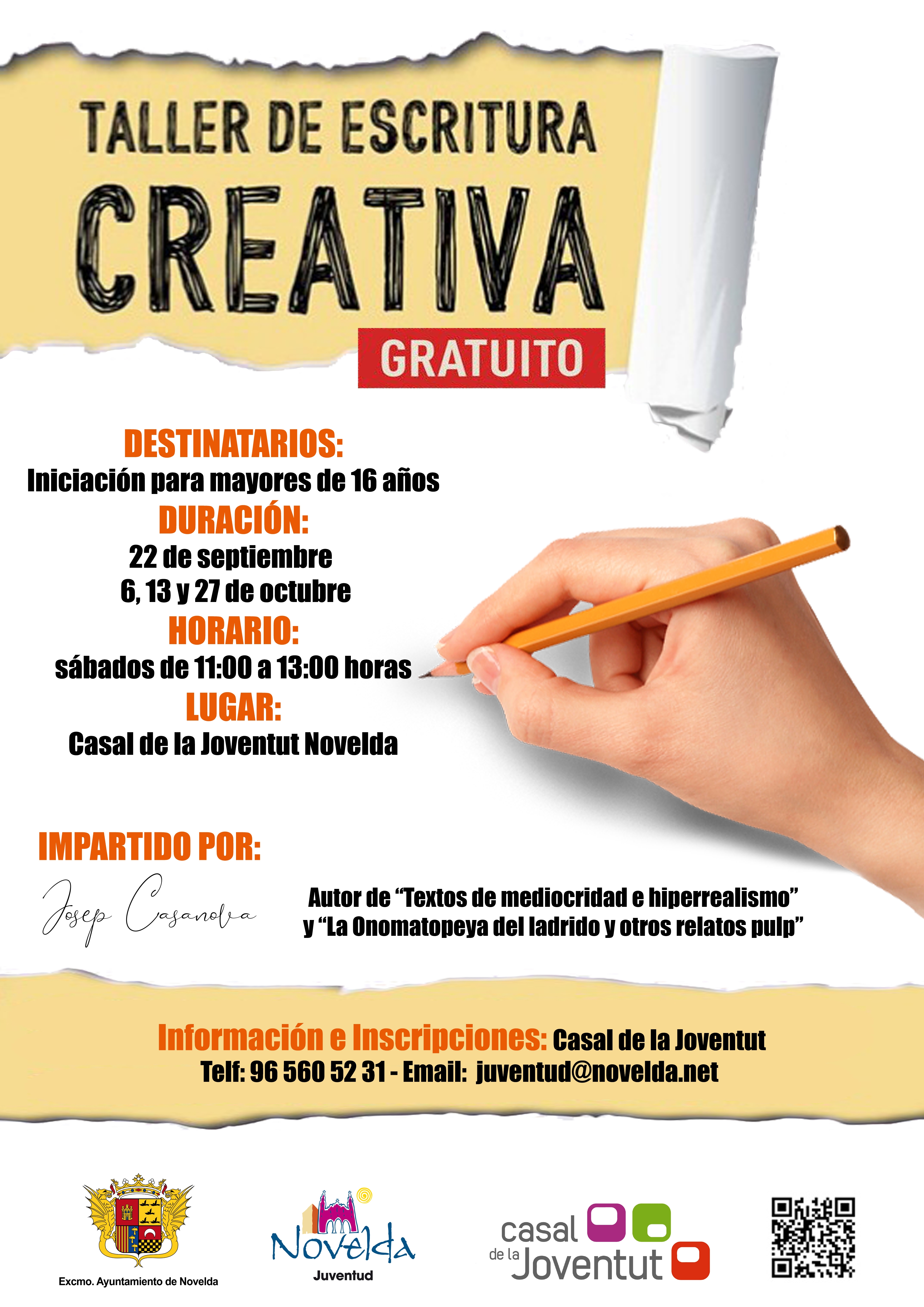 El escritor Josep Casanovas será el encargado de impartir un taller que se realizará en el Casal de la Juventud los sábados 22 de septiembre y 6, 13 y 27 de octubre en horario de 11:00h a 13:00h.