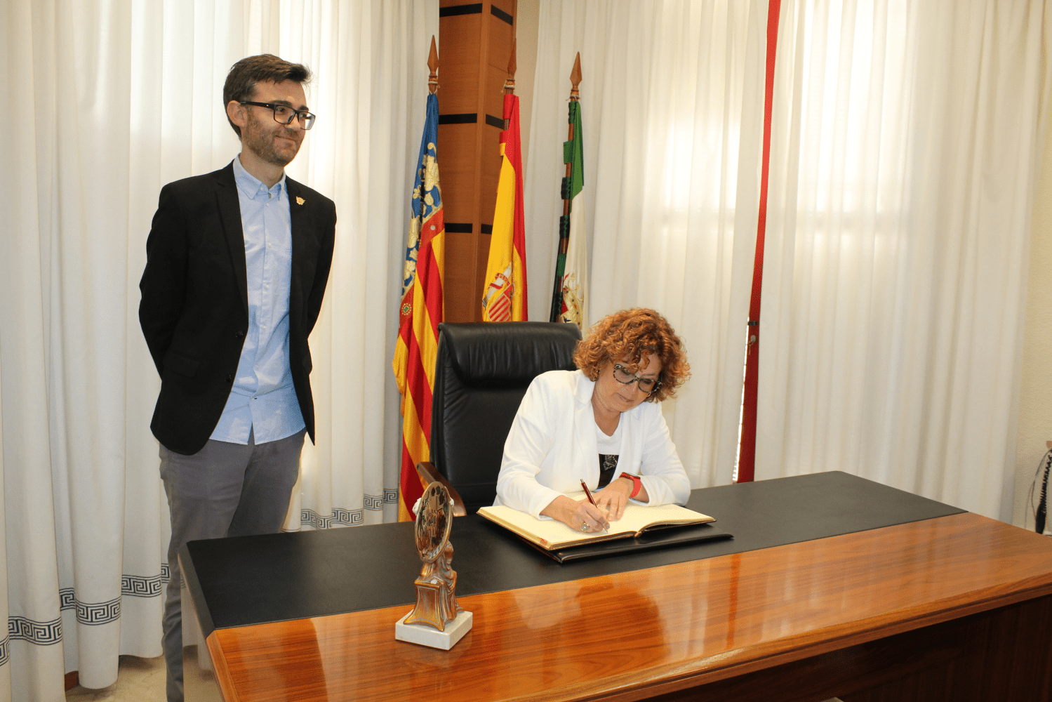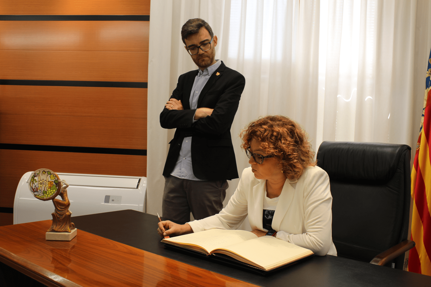 Fran Martínez, acompañado por miembros del equipo de gobierno, ha aprovechado la estancia de la Consellera en la ciudad para, después de firmar en el Libro de Oro del Ayuntamiento, mostrarle las instalaciones de L’Espai, centro de formación y emprendimiento que, ubicado en el centro de la ciudad, abrió sus puertas el pasado mes de febrero y que, según señalaba el alcalde, “podría convertirse en el espacio adecuado para desarrollar las actividades enmarcadas en el convenio” que en 2020 convirtió a Novelda en ciudad colaboradora de Distrito Digital con el objetivo de facilitar el acceso de las empresas al mercado digital, establecer sinergias entre agentes sociales y económicos y ofrecer cursos de formación y asesoramiento a emprendedores y empresas para su incorporación a la economía digital.