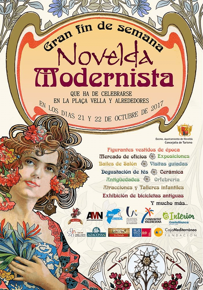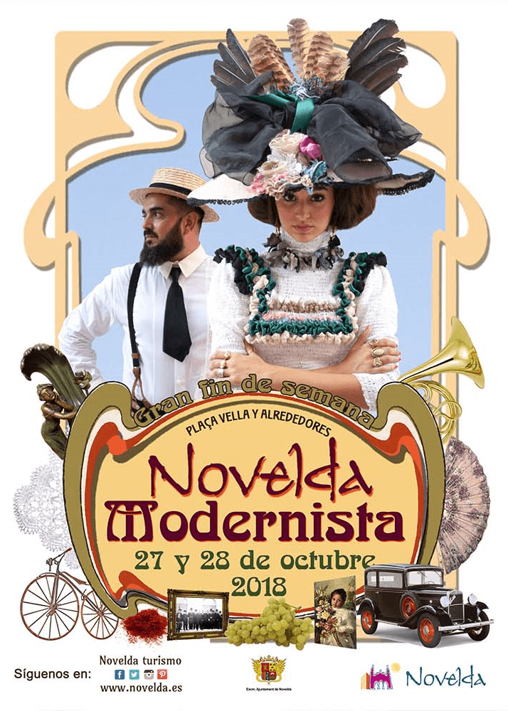 Exposiciones, conferencias, visitas guiadas por diferentes espacios especialmente significativos del modernismo local, vehículos de época, talleres, espectáculos circenses de calle, música en directo, juegos tradicionales, nanos i gegants, xaramita cana, recreación de oficios tradicionales, jornadas gastronómicas y de tapas de inspiración modernista, con la uva y el azafrán como elementos sugerentes, y concurso de escaparates modernistas son algunas de las propuestas de un evento que ha conseguido pone en valor el patrimonio y legado modernista de Novelda, rindiendo en la última edición un sentido homenaje a Antonia Navarro Mira, La Pichocha, figura primordial del modernismo noveldense, en el centenario de su fallecimiento.