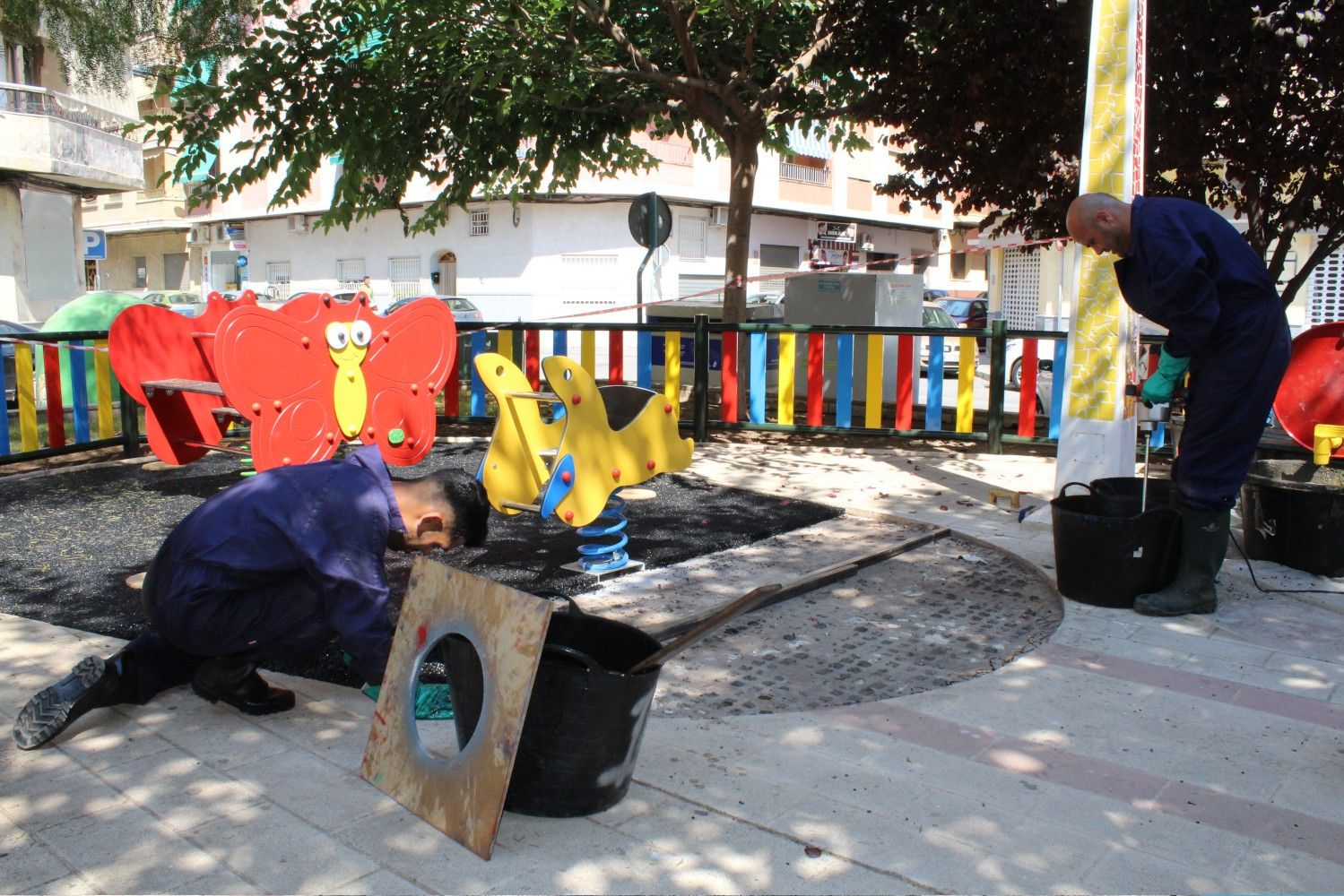 Las actuaciones, con un montante global de 86.000€, se están desarrollando en el parque Ravonis,del barrio Sagrado Corazón, donde se ha cambiado el caucho, se han reparado los juegos infantiles y se ha sustituido el antiguo vallado; en El Pedregal, situado en la Avenida Reyes Católicos, se ha puesto caucho continuo y se han cambiado los elementos de los juegos infantiles, mientras que en el parque Sanchís Guarner, del barrio La Cruz, se ha reformado la pista de tierra existente con césped artificial exterior deportivo, creando un espacio de juego más versátil y útil. Por último en el parque Tremecén, ubicado en la calle Goya, se ha llevado a cabo la sustitución de los juegos infantiles y el vallado perimetral y se ha renovado el caucho continuo de las dos zonas de juegos.