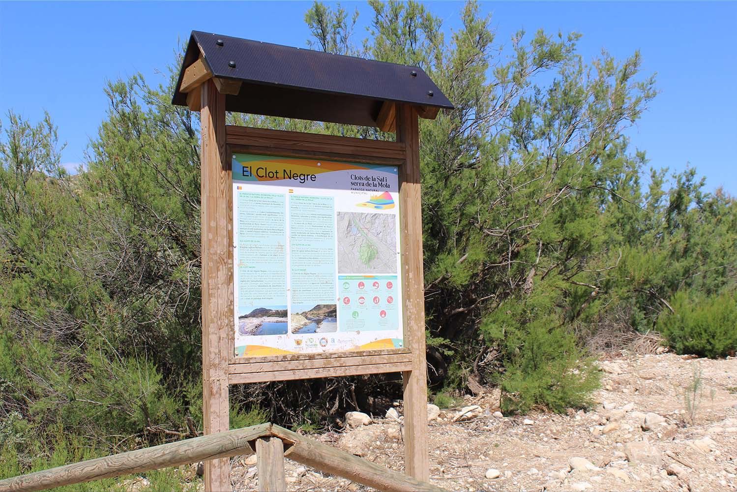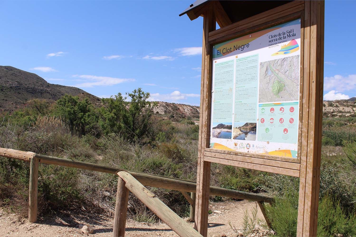 Los trabajos, que incluyen la colocación de dos paneles de presentación del paraje, en los accesos a través de Monóvar y La Mola, y dos paneles de interpretación ambiental, ubicados en el Clot Roig y el Clot Negre, en los que se dan a conocer las normas de comportamiento y el uso tradicional de los mismos, se completan con la instalación de un gran indicador de presentación del municipio y del propio paraje natural en el aparcamiento del Castillo de la Mola. Además este cartel estará acompañado por un panel que recogerá los senderos existentes en el municipio y toda la información técnica (PR-CV 311 Novelda-Castillo de la Mola, PR-CV 325 Novelda-Sierra del Cid, SL-CV 127 Ruta dels Clots de la Sal y SL-CV 174 Refugios Canteros).