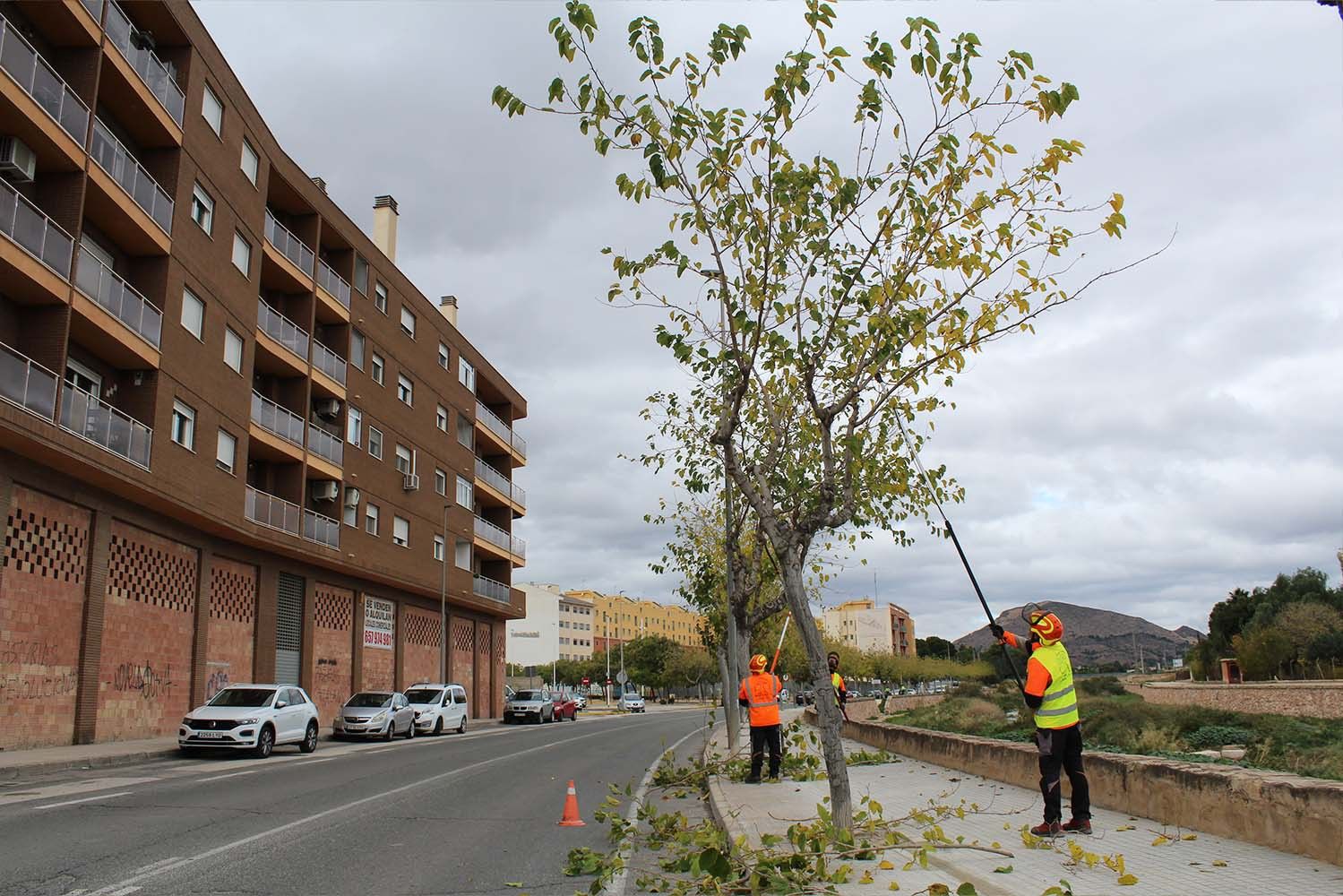 La concejalía de Medio Ambiente ha iniciado la campaña anual de poda del arbolado lineal y de parques y jardines, trabajos que, sobre 842 árboles y 300 palmeras municipales, está desarrollando la empresa concesionaria especializada Baobab S.L.
