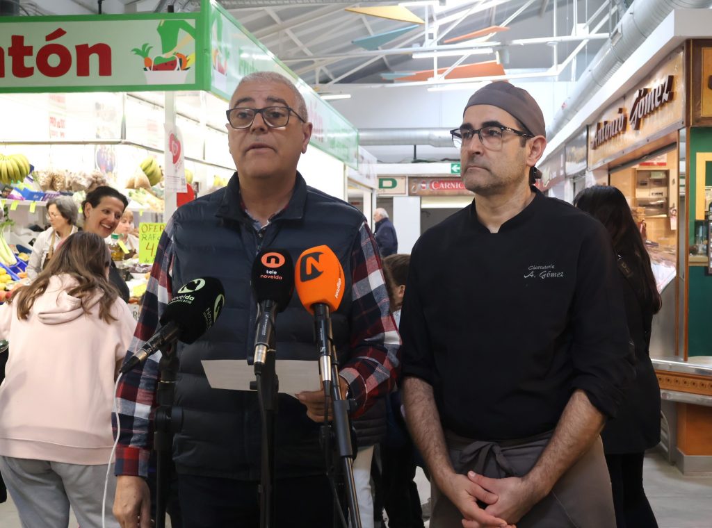 El concejal de Mercado, Santi Sánchez, acompañado por Antonio Gómez, miembro de la Asociación Mercado de Abastos de Novelda, ha señalado que “queremos que nuestro alumnado sea consciente de que la mejor garantía de producto y trato personalizado es la que se ofrece aquí, en ‘La Plaça’, y que es necesario hoy más que nunca apostar por una compra de cercanía, de calidad, con productos de proximidad y de temporada”.