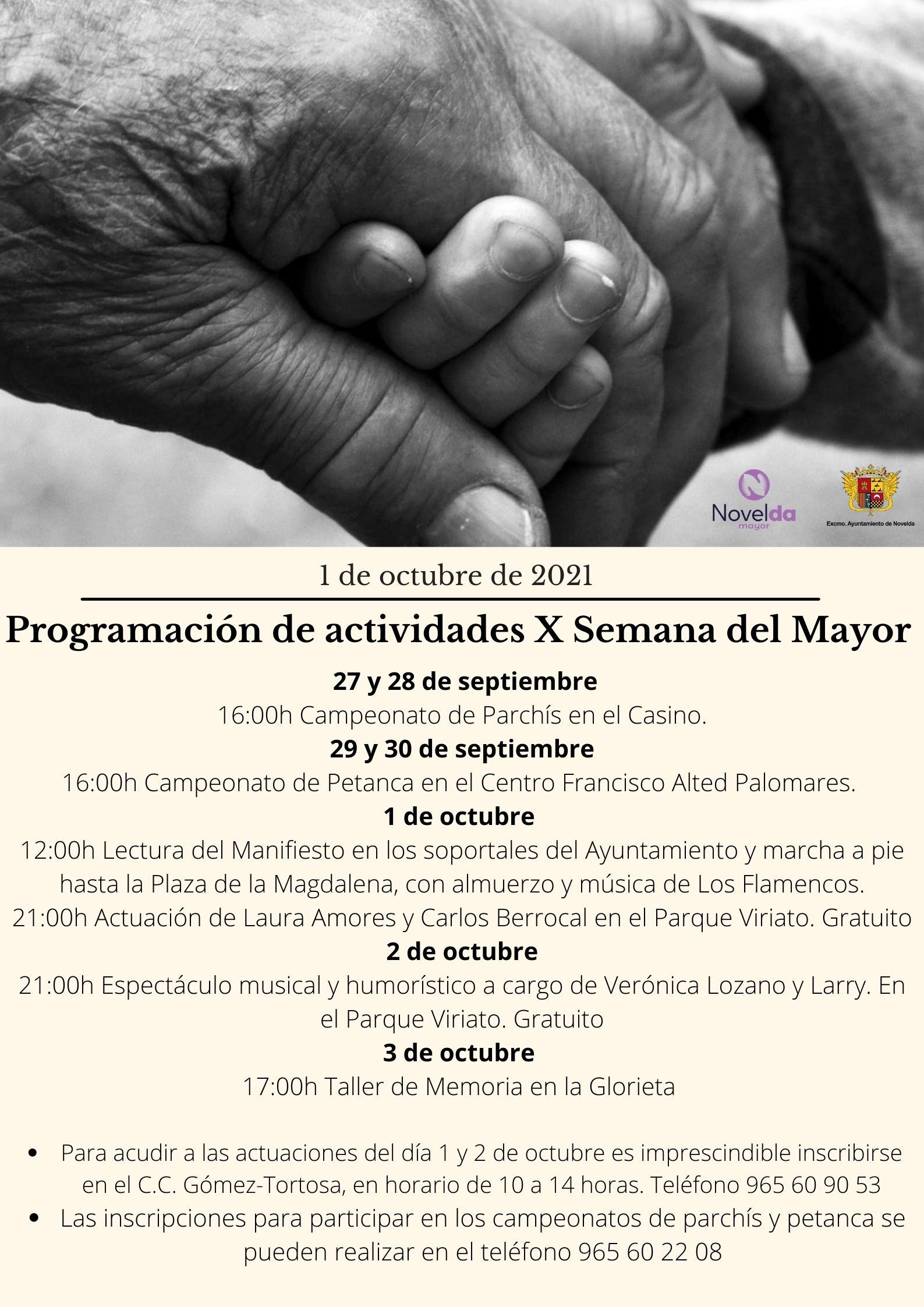 La concejalía del Mayor ha preparado una variada programación, con diversas actividades, para celebrar la décima edición de la Semana del Mayor del 27 de septiembre al 3 de octubre.