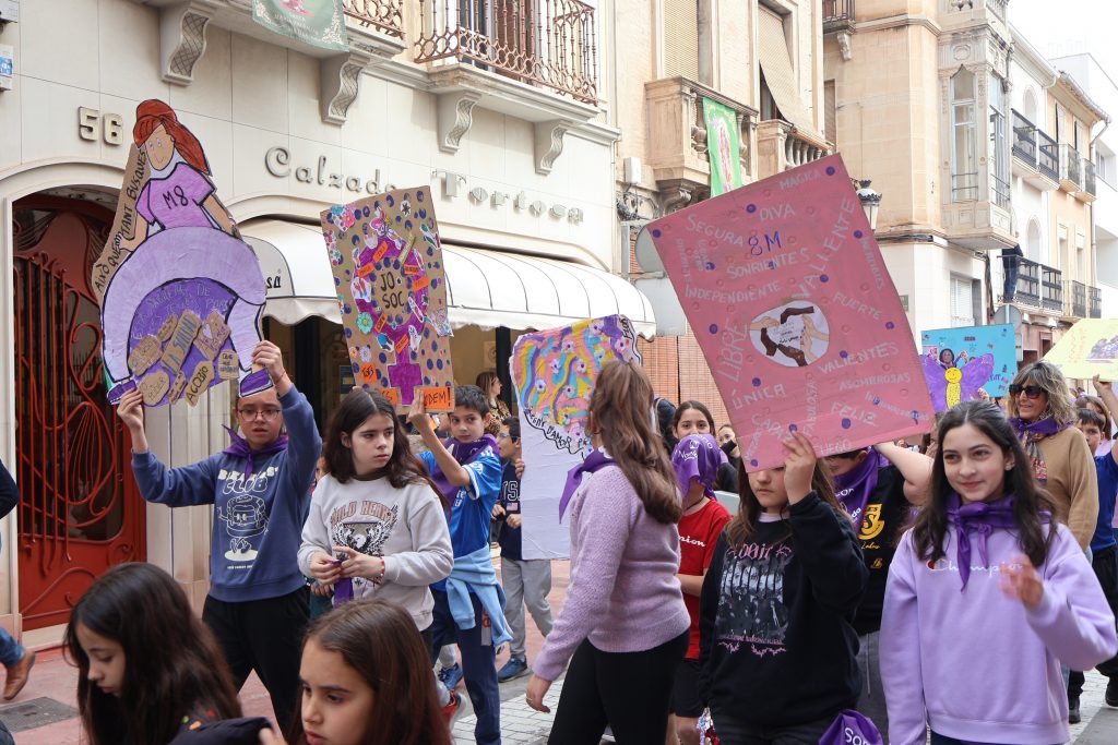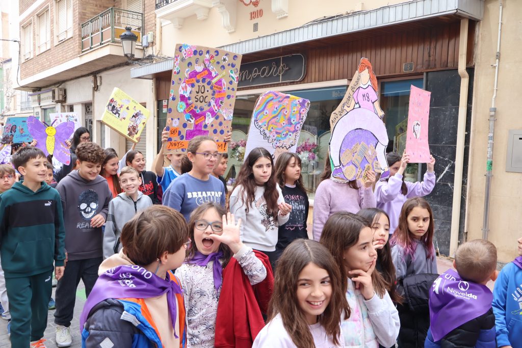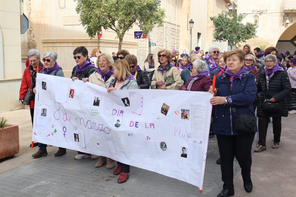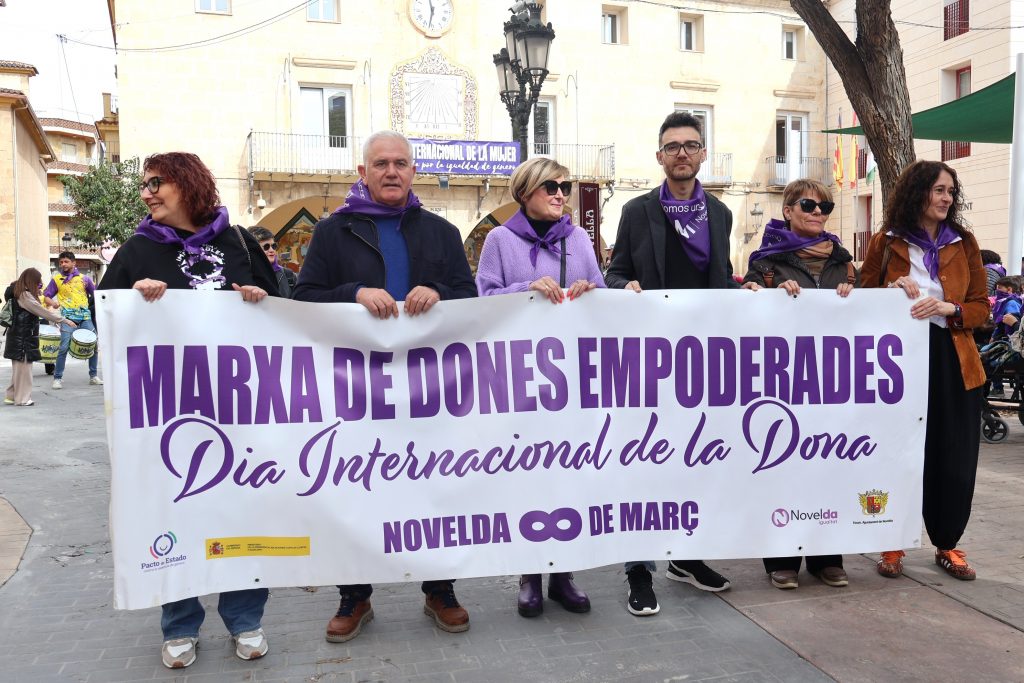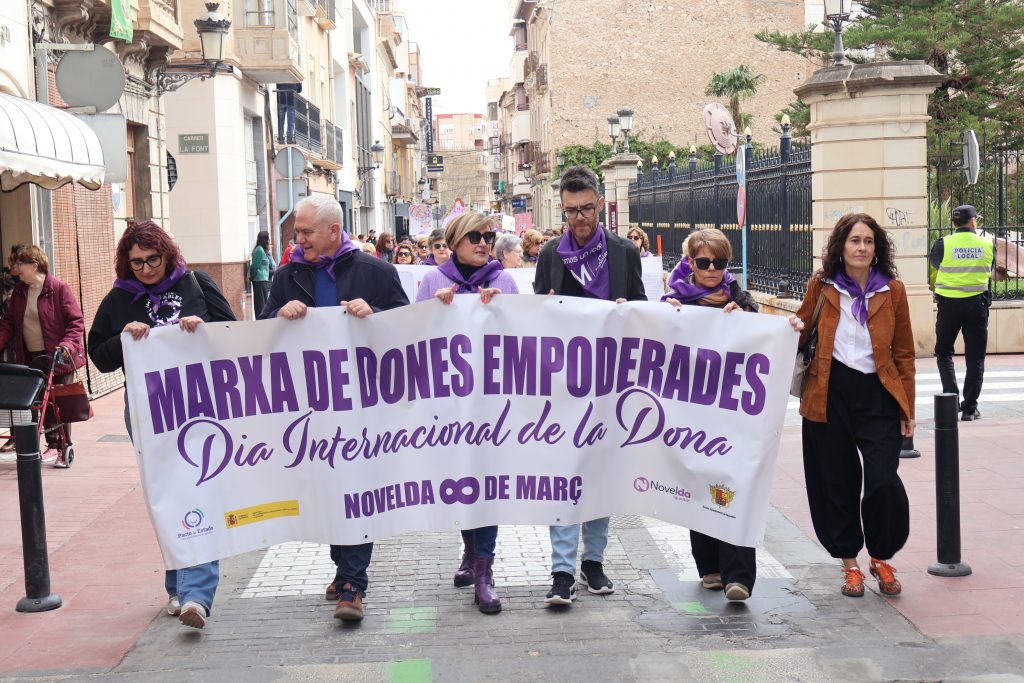 Tras una marcha encabezada por una pancarta bajo el lema “Mujeres Empoderadas” que ha recorrido las calles de la zona centro de Novelda, las puertas del Ayuntamiento han sido el escenario de la lectura del manifiestos conmemorativo del 8M, Día Internacional de la Mujer, que este año, impulsando el mensaje“Mujer sin límites. Creando futuro”, ha hecho puesto el foco en todas las mujeres que desde cada rincón de la ciudad, desde el hogar, el aula, la empresa, la asociación o la institución, impulsan y transforman la sociedad con su trabajo, su talento y su valentía.