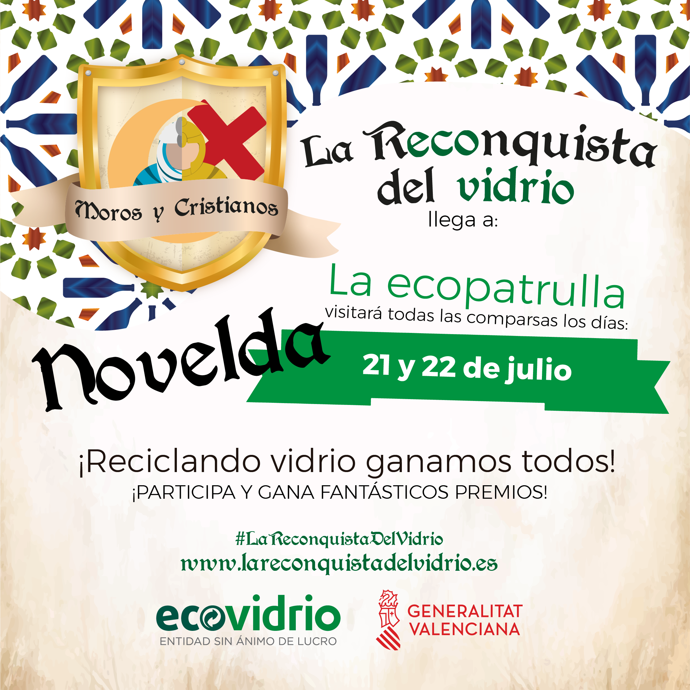 Ecovidrio, entidad sin ánimo de lucro encargada de la gestión del reciclado de los residuos de envases de vidrio en España, y el Ayuntamiento de Novelda, en colaboración con la Generalitat Valenciana, ponen en marcha ‘La Reconquista del Vidrio’, una campaña para incentivar la concienciación del reciclado de envases de vidrio durante las fiestas de Moros y Cristianos 2022.