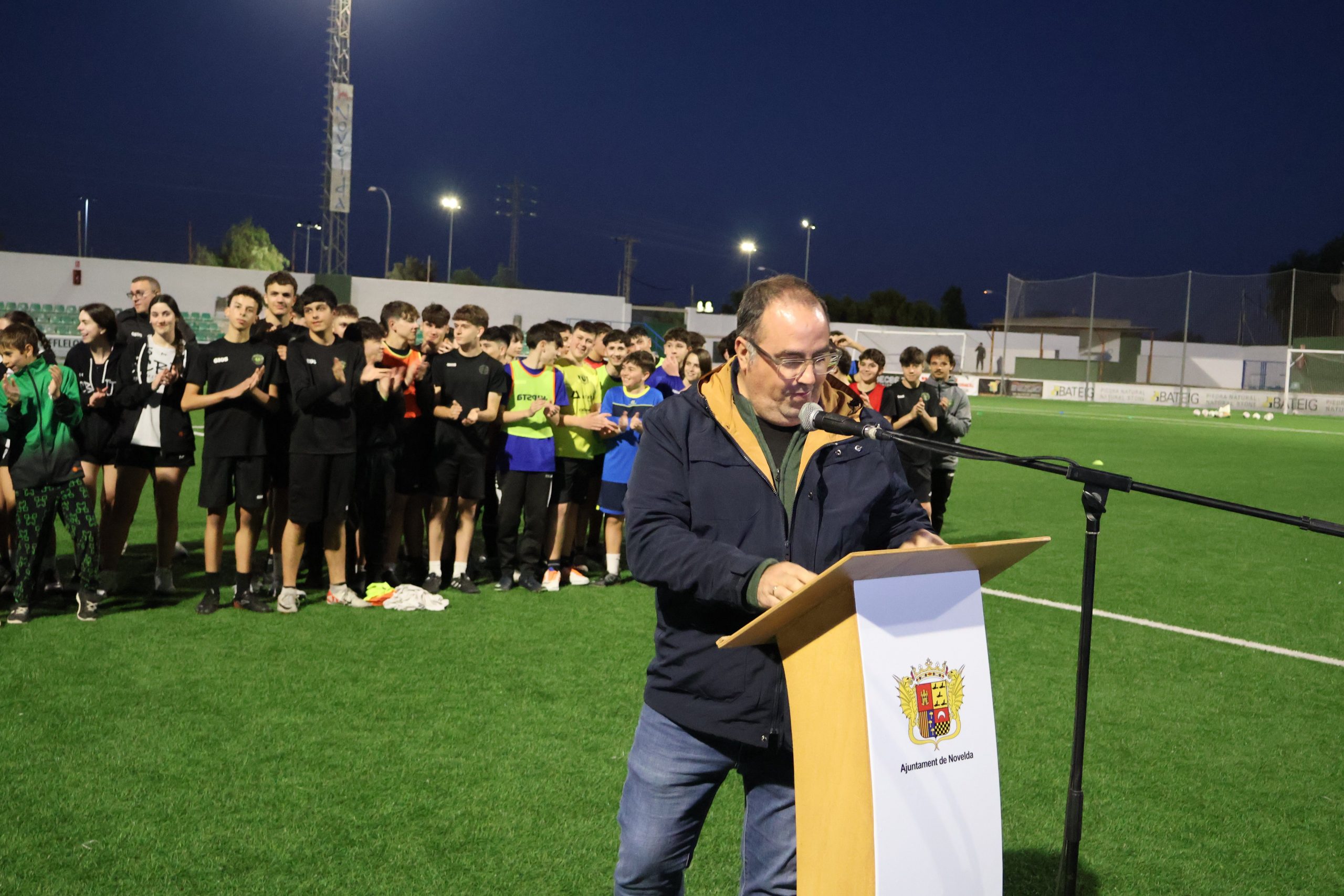 El campo de fútbol de La Magdalena ha acogido un acto, que ha contado con la participación de representantes de los clubs deportivos locales, en el que el concejal de Deportes, acompañado por el alcalde de Novelda, Fran Martínez, y miembros del equipo de gobierno, ha dado lectura a un manifiesto que ha reafirmado el derecho de todas las personas a la igualdad de trato y oportunidades en la práctica deportiva, sin discriminación por razón de sexo, edad, discapacidad, salud, religión, orientación e identidad sexual y expresión de género.