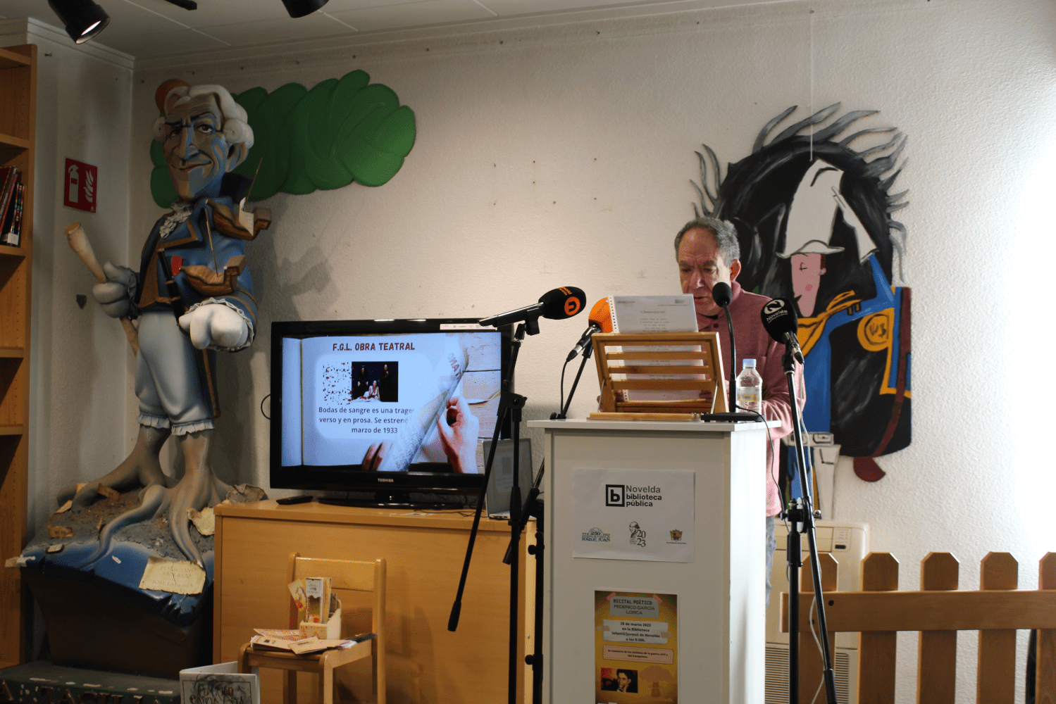 Enmarcada en el programa de actos y actividades que se están realizando en el día de hoy en toda la Comunidad Valenciana con motivo del “Día de la Memoria Democrática”, una jornada institucionalizada en 2018 a través de la Ley de la Generalitat de Memoria Democrática y para la Convivencia de la Comunitat Valenciana, que establece la fecha del 28 de marzo, aniversario de la muerte del poeta oriolano Miguel Hernández, como un día para el homenaje a las Víctimas de la Guerra Civil y el Régimen Franquista, la Biblioteca Municipal ha albergado un acto en el que Geno Micó, Primera Teniente Alcalde, ha dado lectura al manifiesto oficial y los alumnos del Centro Público de Formación de Personas Adultas L’Illa del Garroferets han leído fragmentos de la obra del poeta Federico García Lorca.