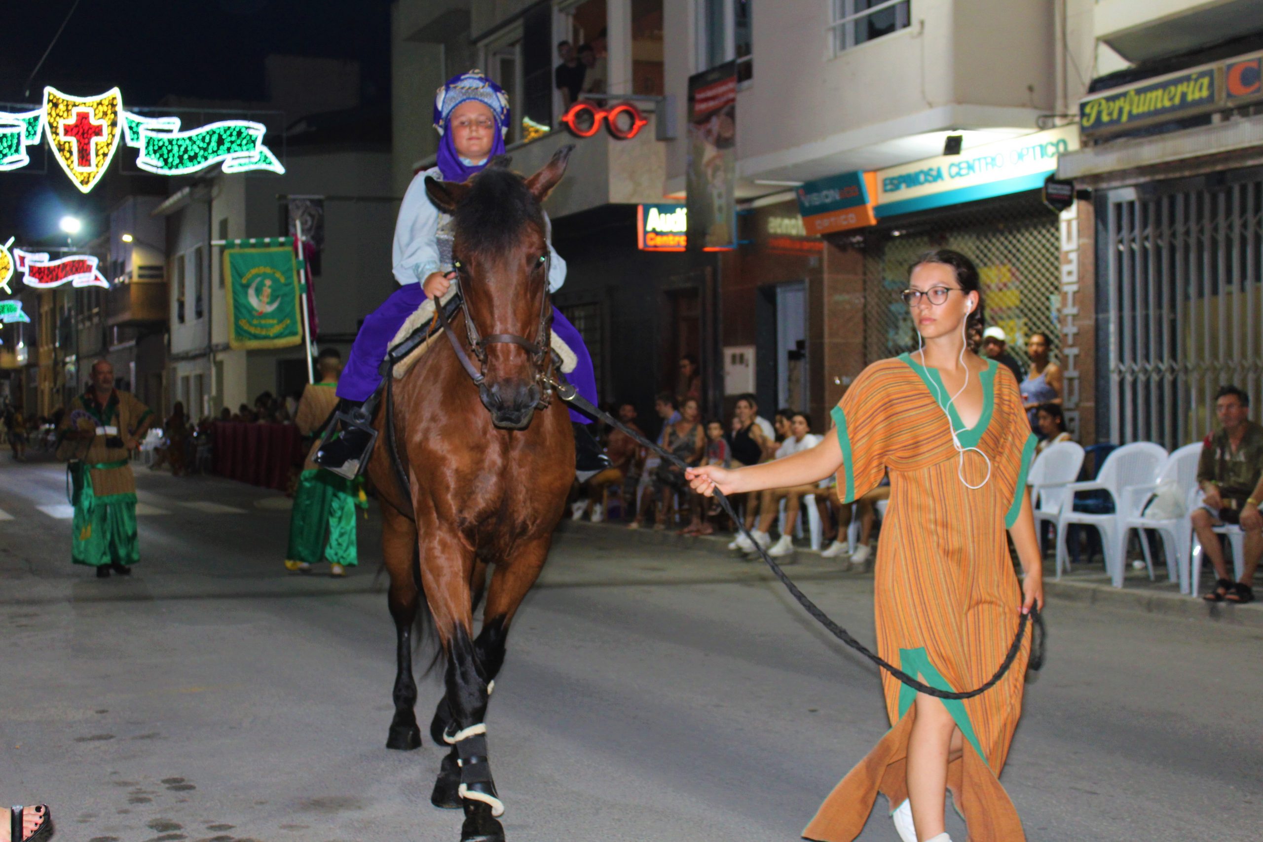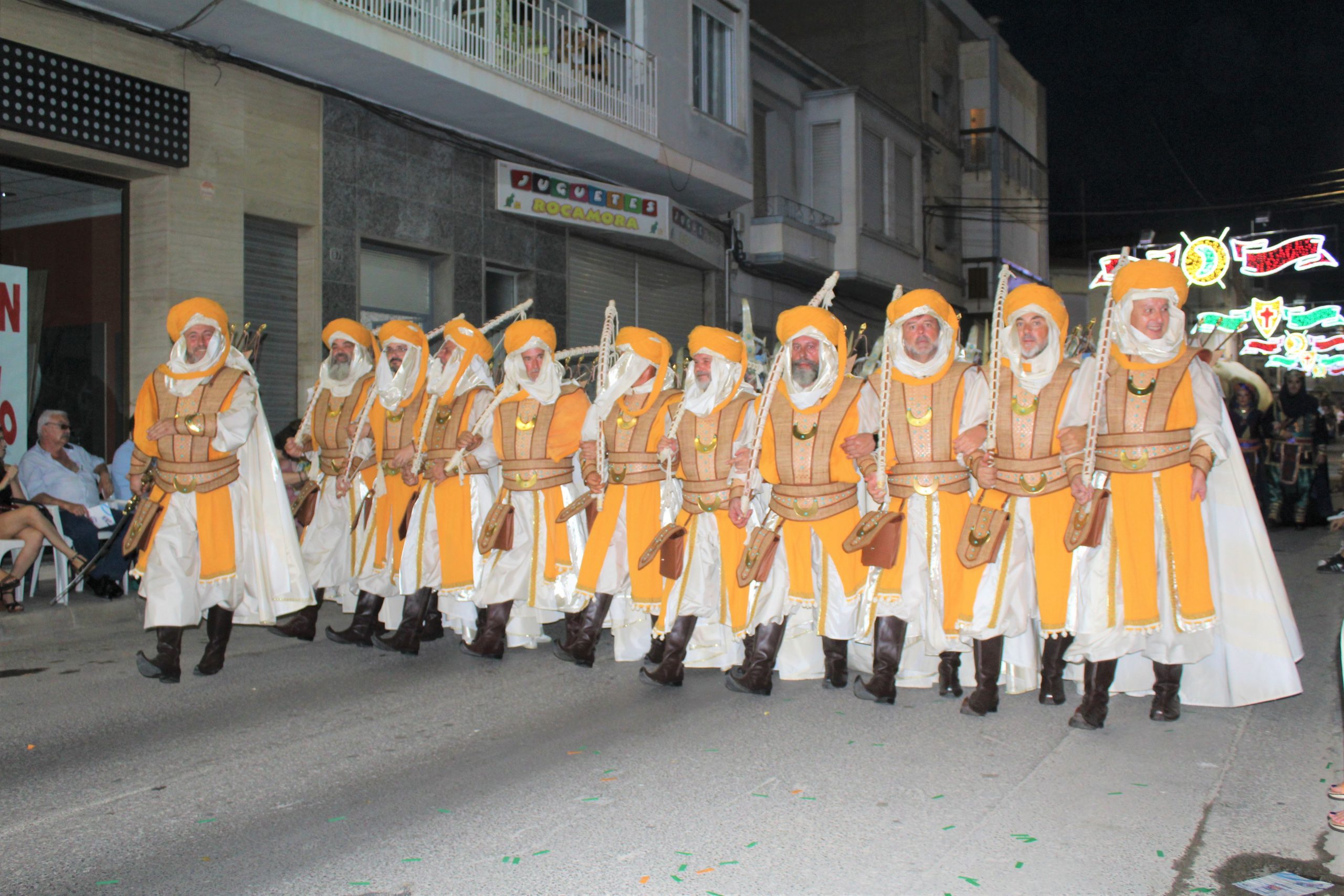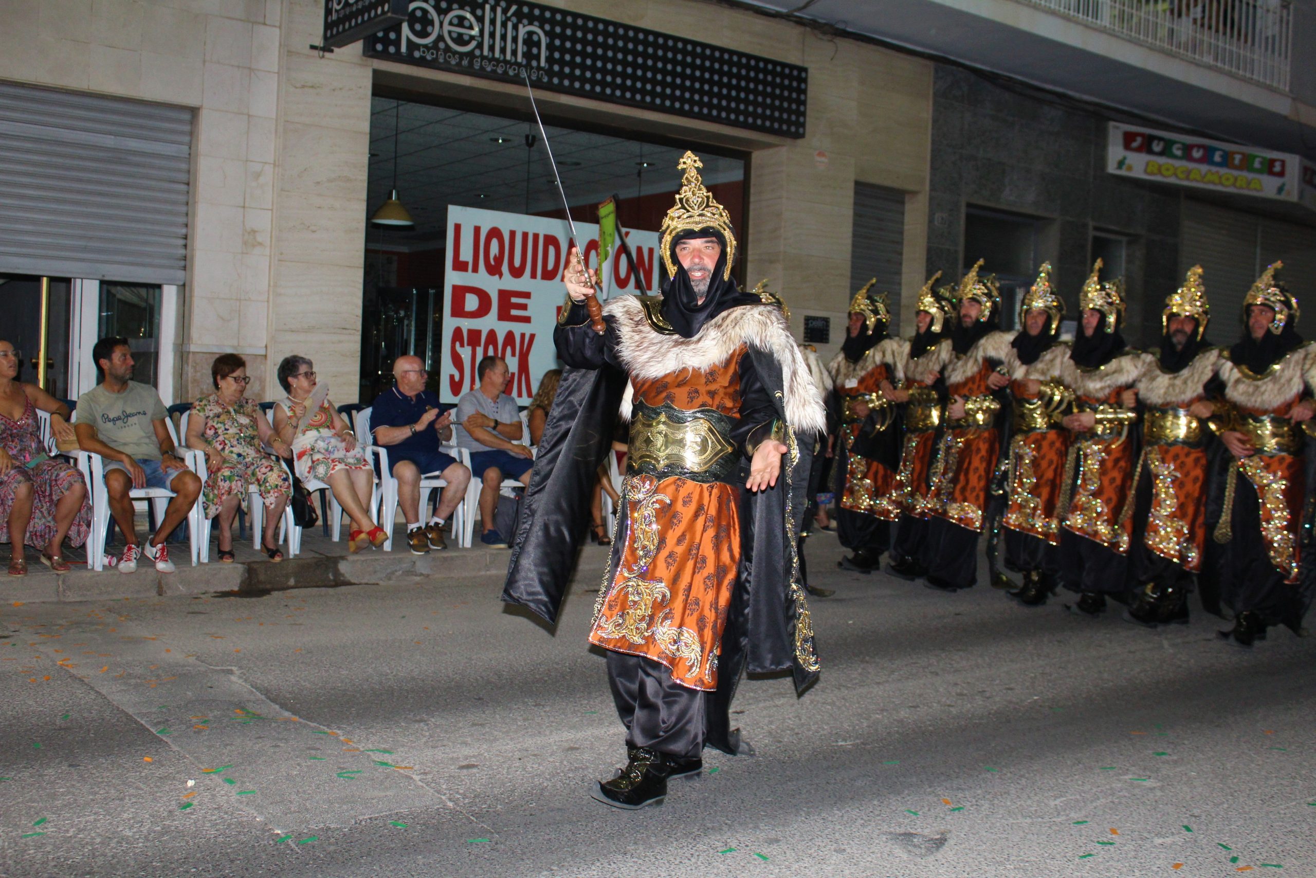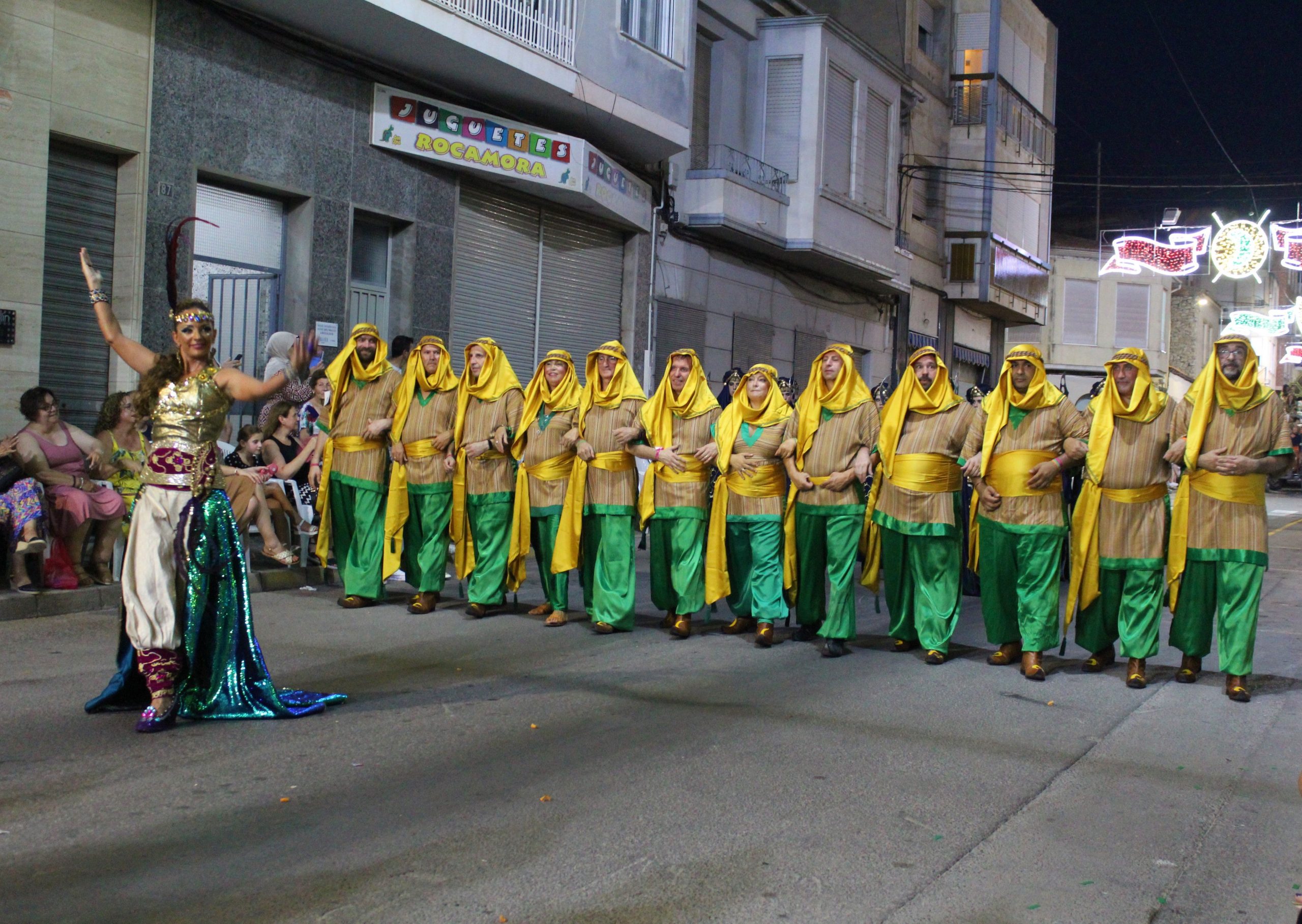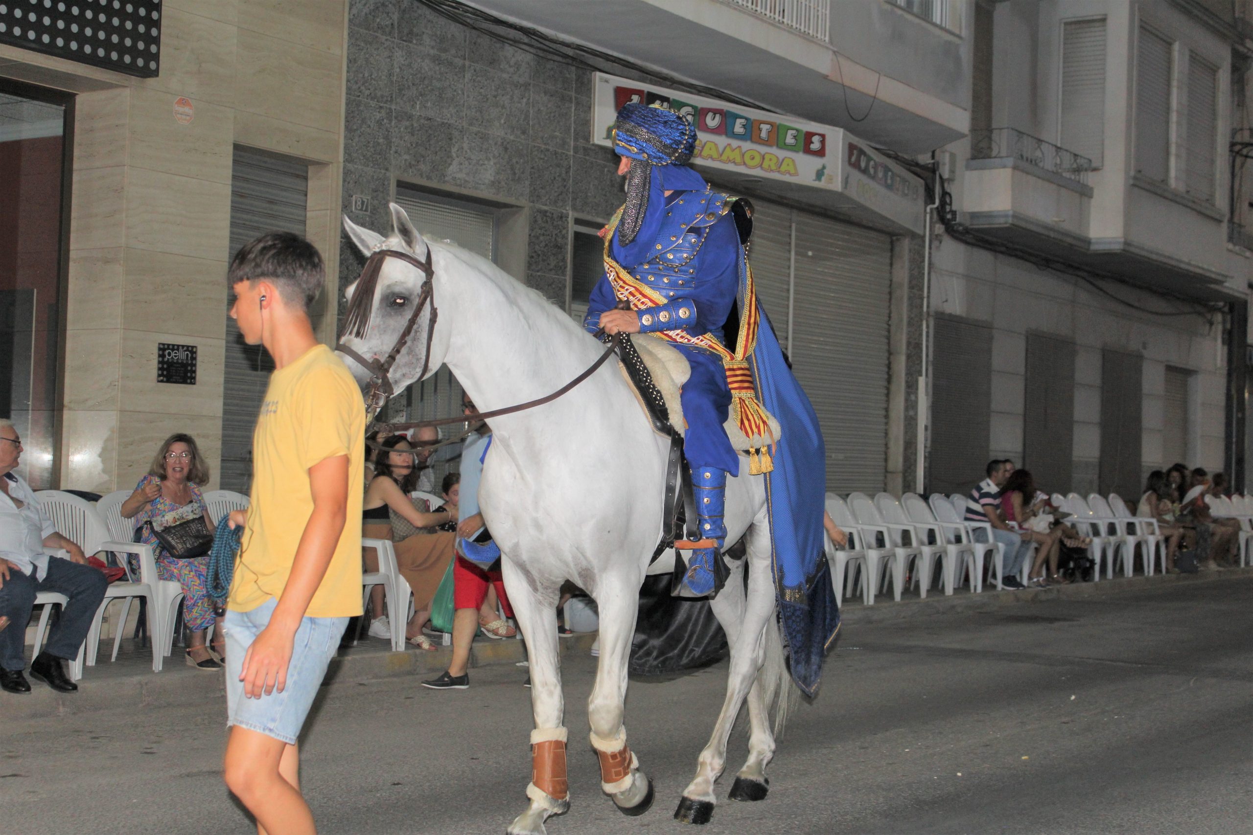 Encabezados por el embajador y Sultana Mora, el bando moro desfiló anoche por las calles de Novelda con las comparsas Árabes Damasquinos, Piratas Berberiscos, Árabe Beduinos, Negres Betànics y Árabes Omeyas. Mientras, el bando cristiano, con su embajador y Reina Cristiana, acompañados por Mozárabes, Zíngaros y Astures, recorrió las calles noveldenses bajo el esplendor de las marchas cristianas.