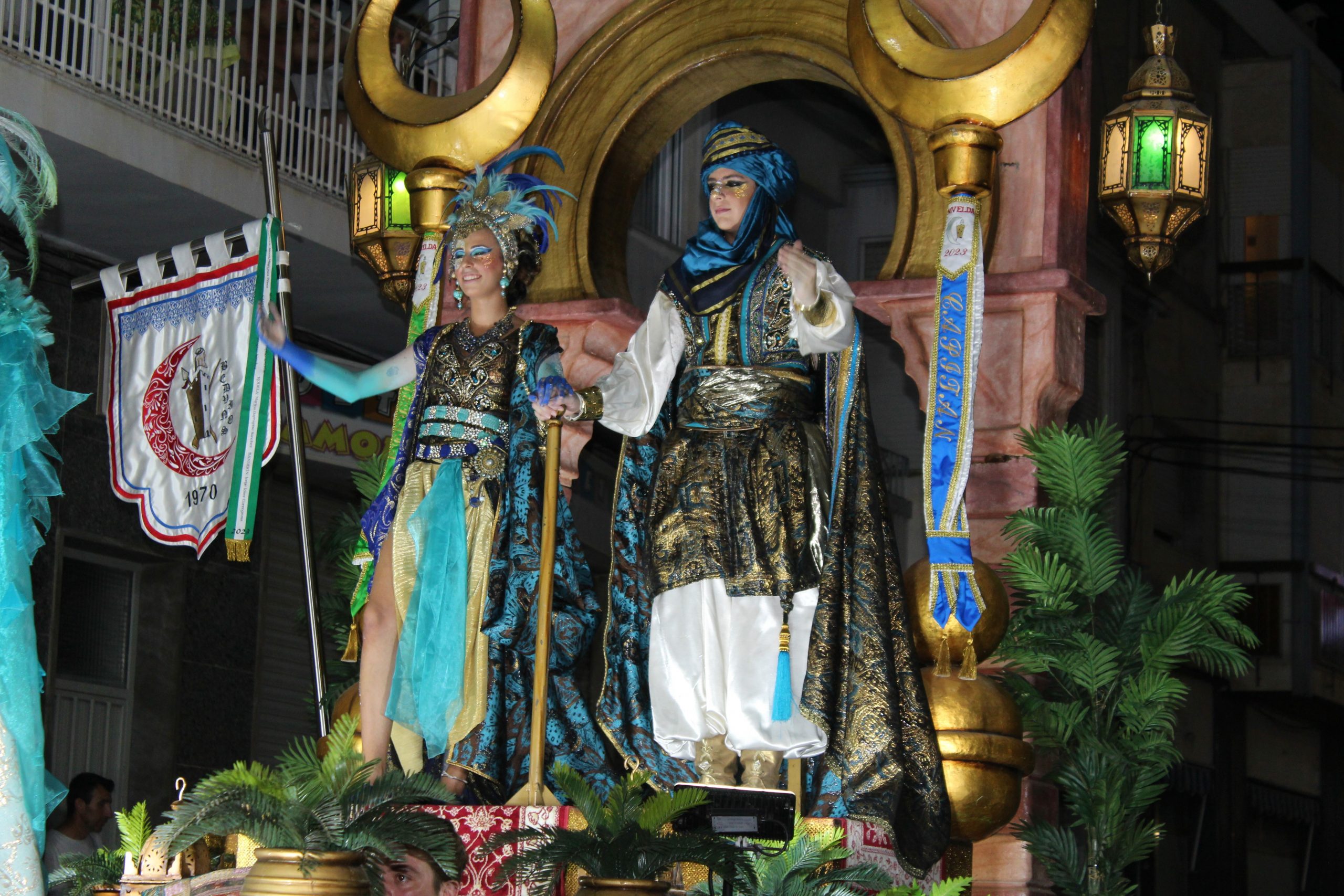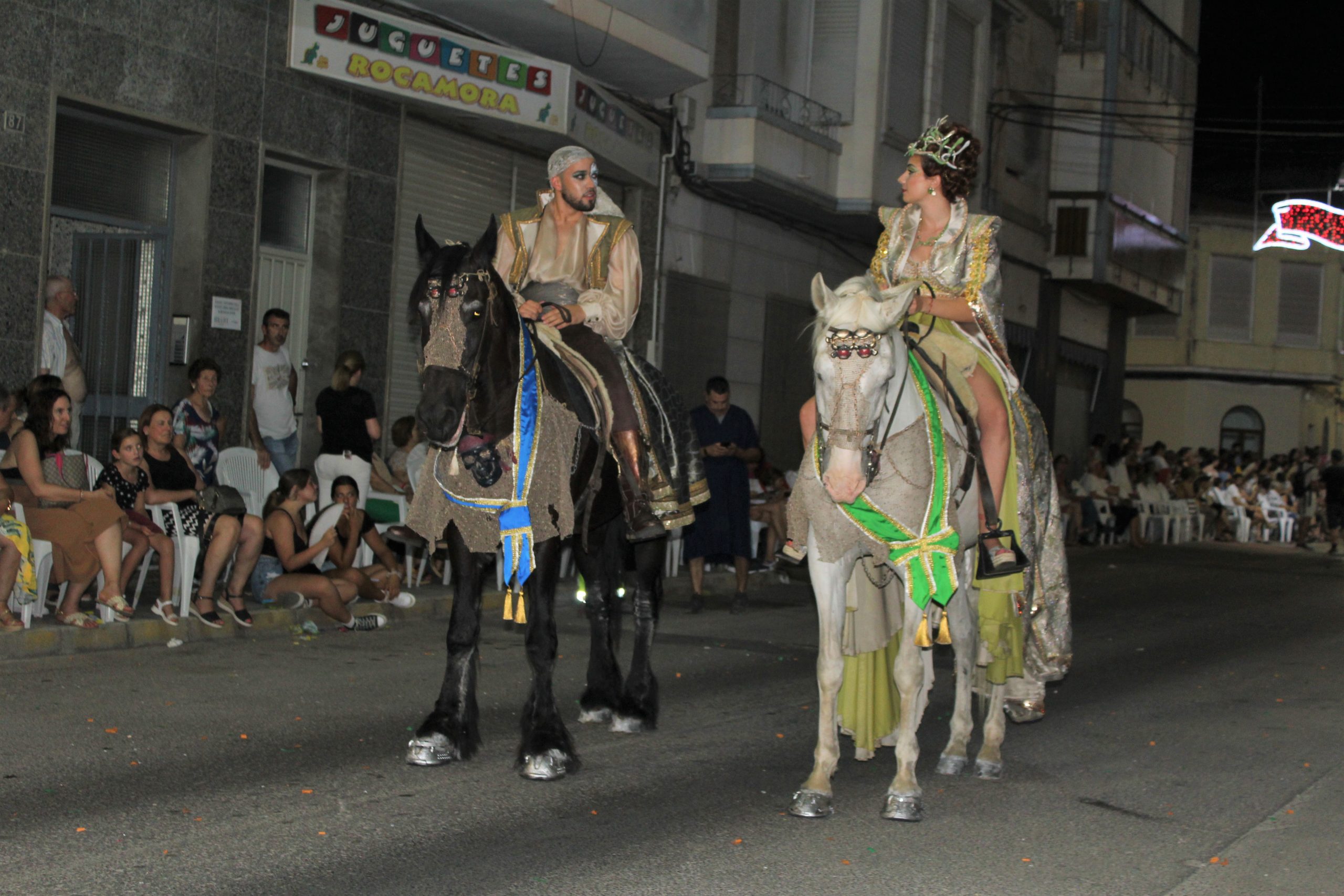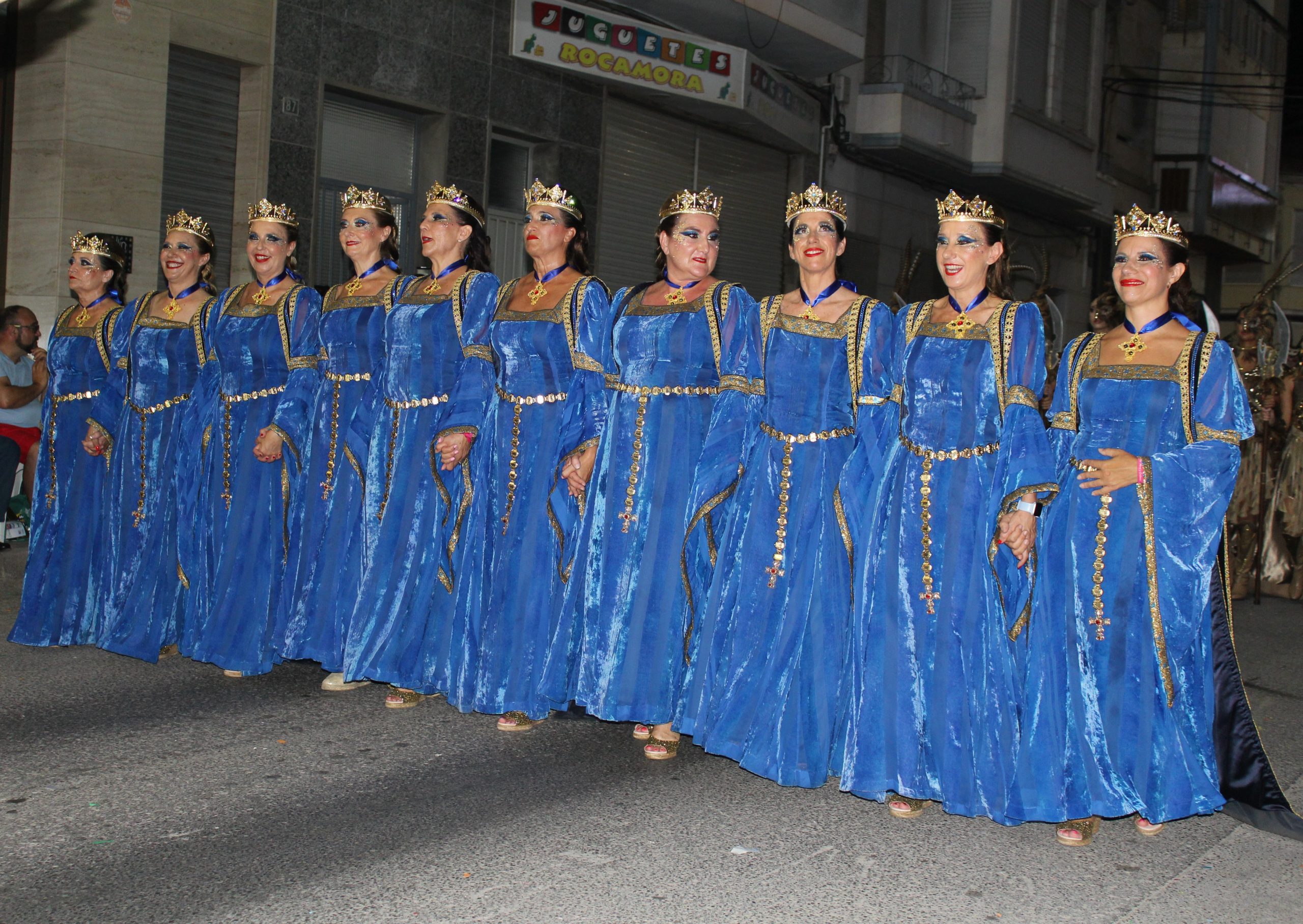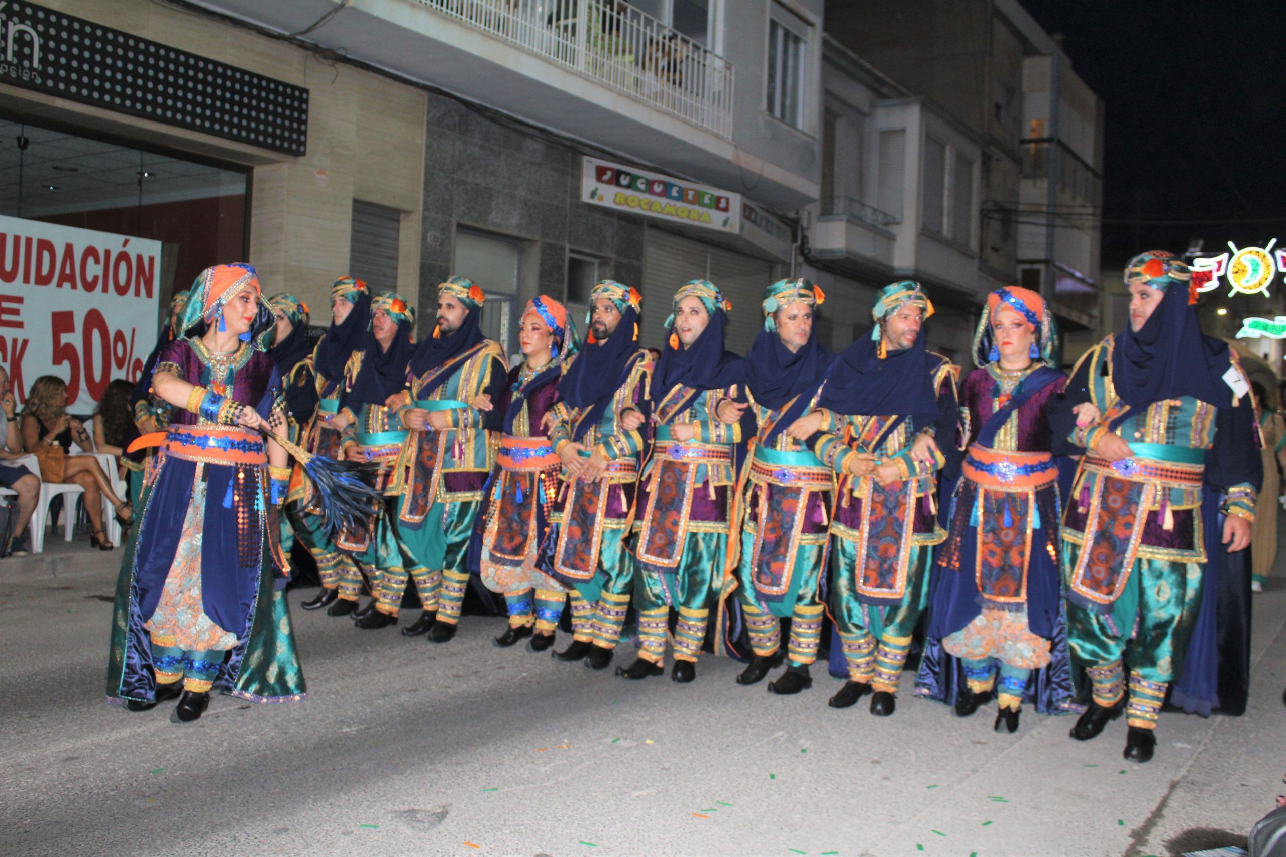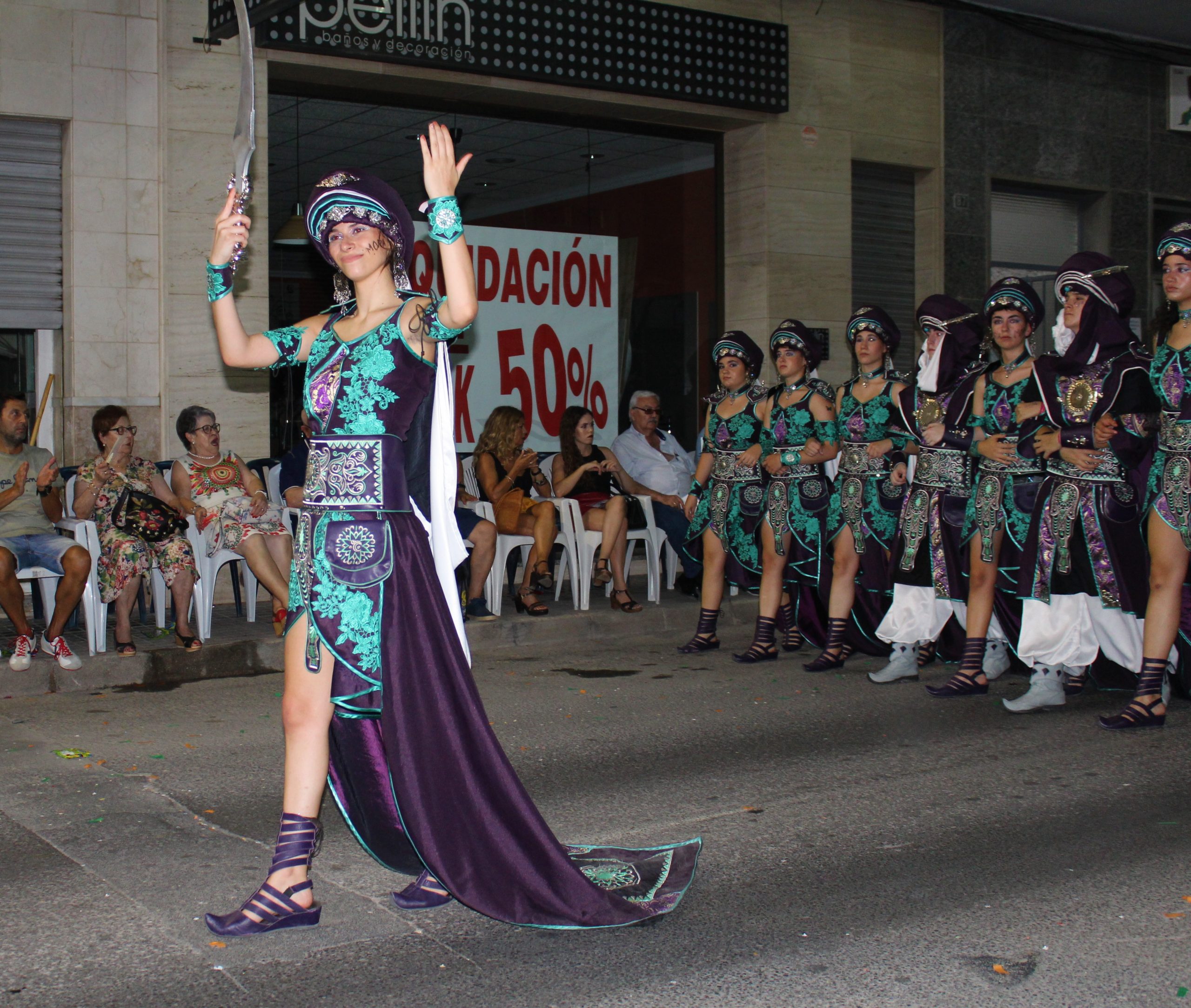 Encabezados por el embajador y Sultana Mora, el bando moro desfiló anoche por las calles de Novelda con las comparsas Árabes Damasquinos, Piratas Berberiscos, Árabe Beduinos, Negres Betànics y Árabes Omeyas. Mientras, el bando cristiano, con su embajador y Reina Cristiana, acompañados por Mozárabes, Zíngaros y Astures, recorrió las calles noveldenses bajo el esplendor de las marchas cristianas.