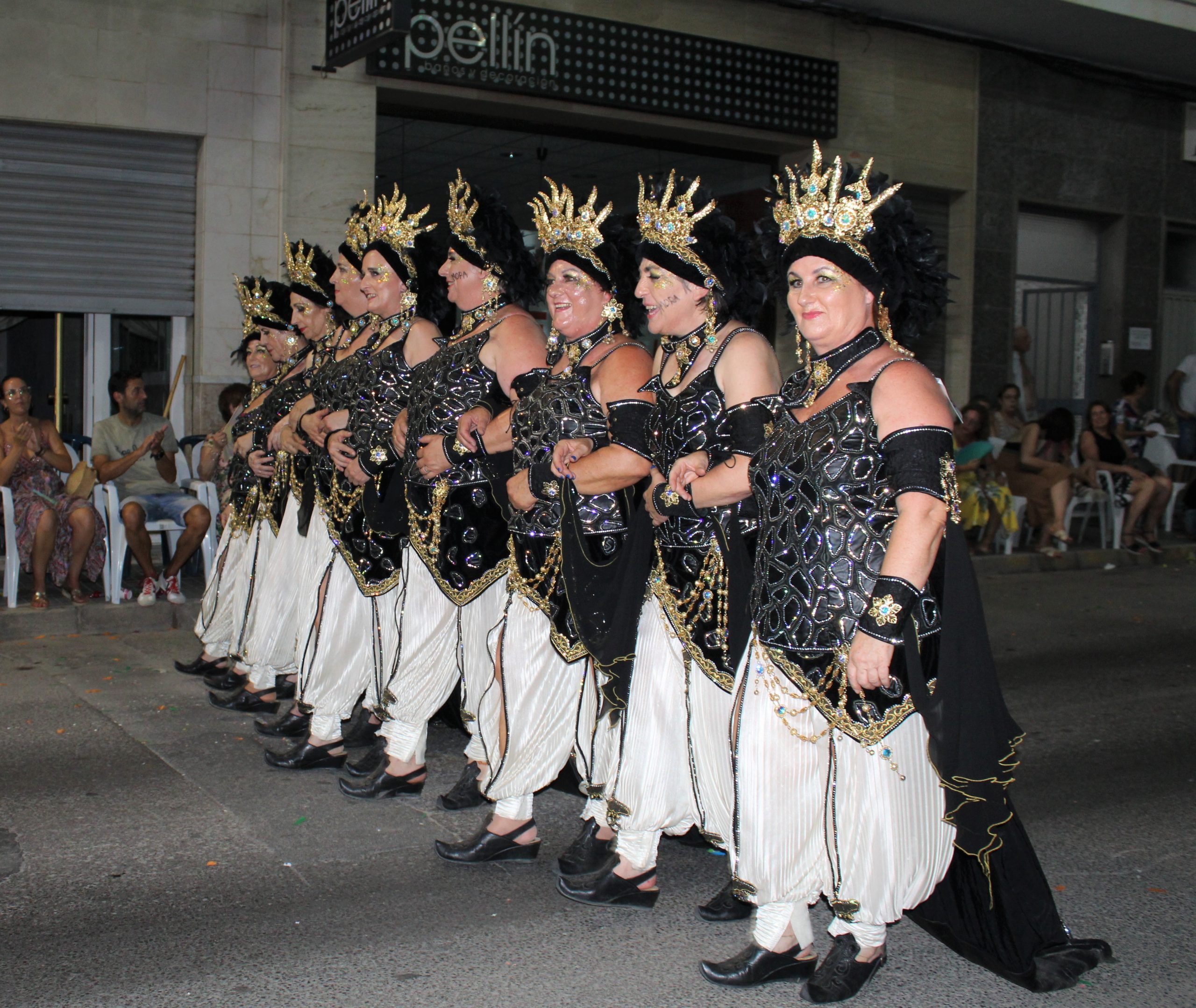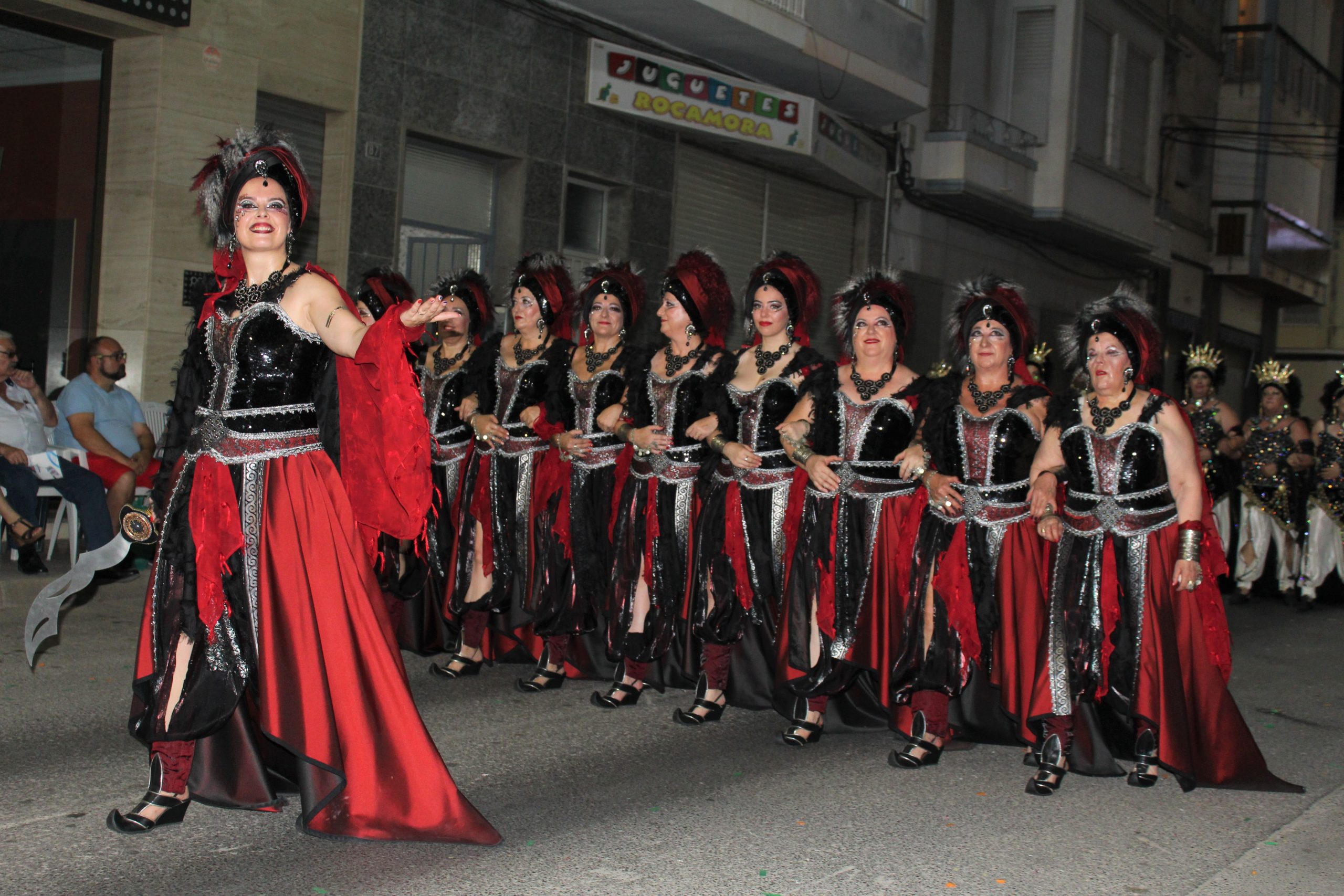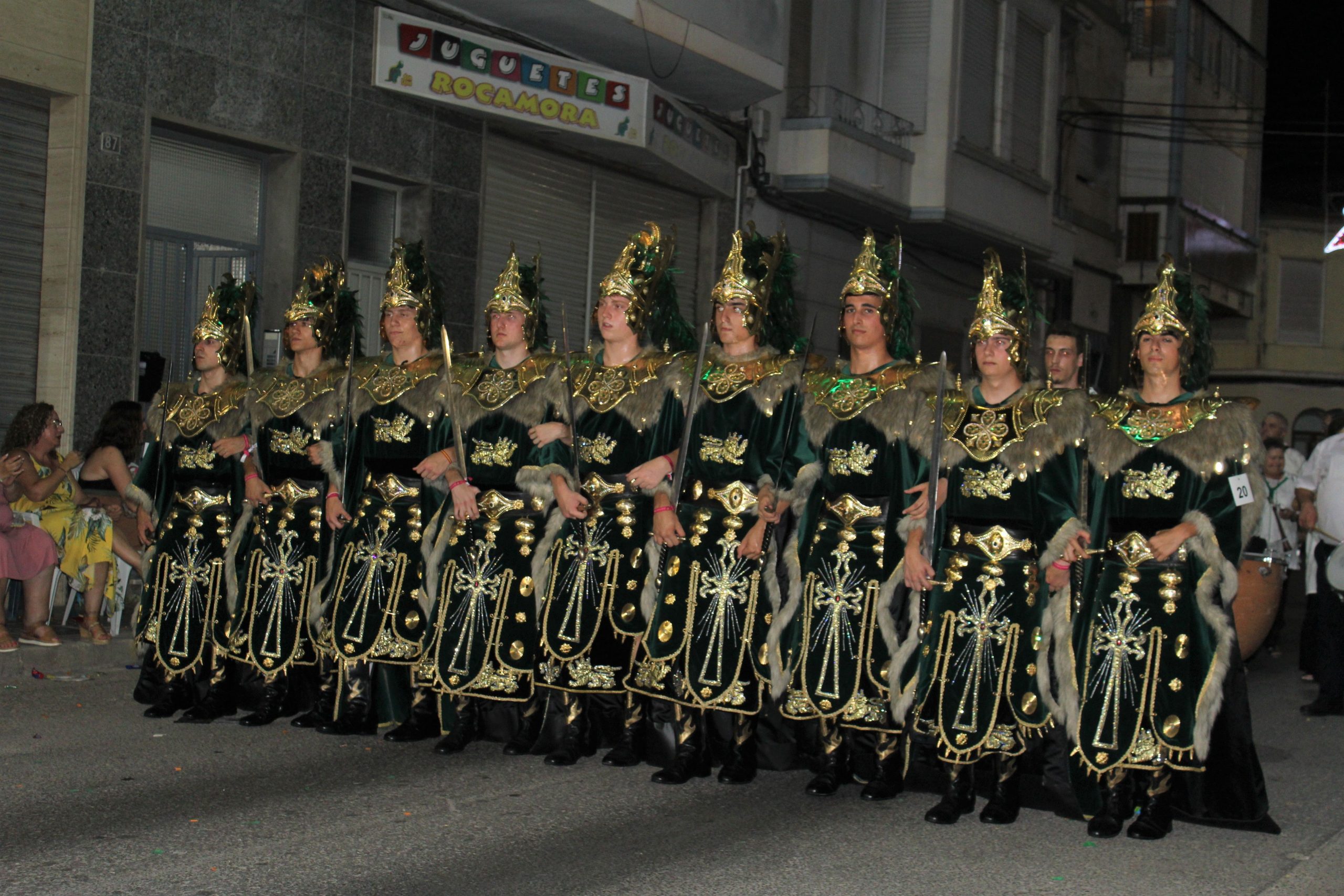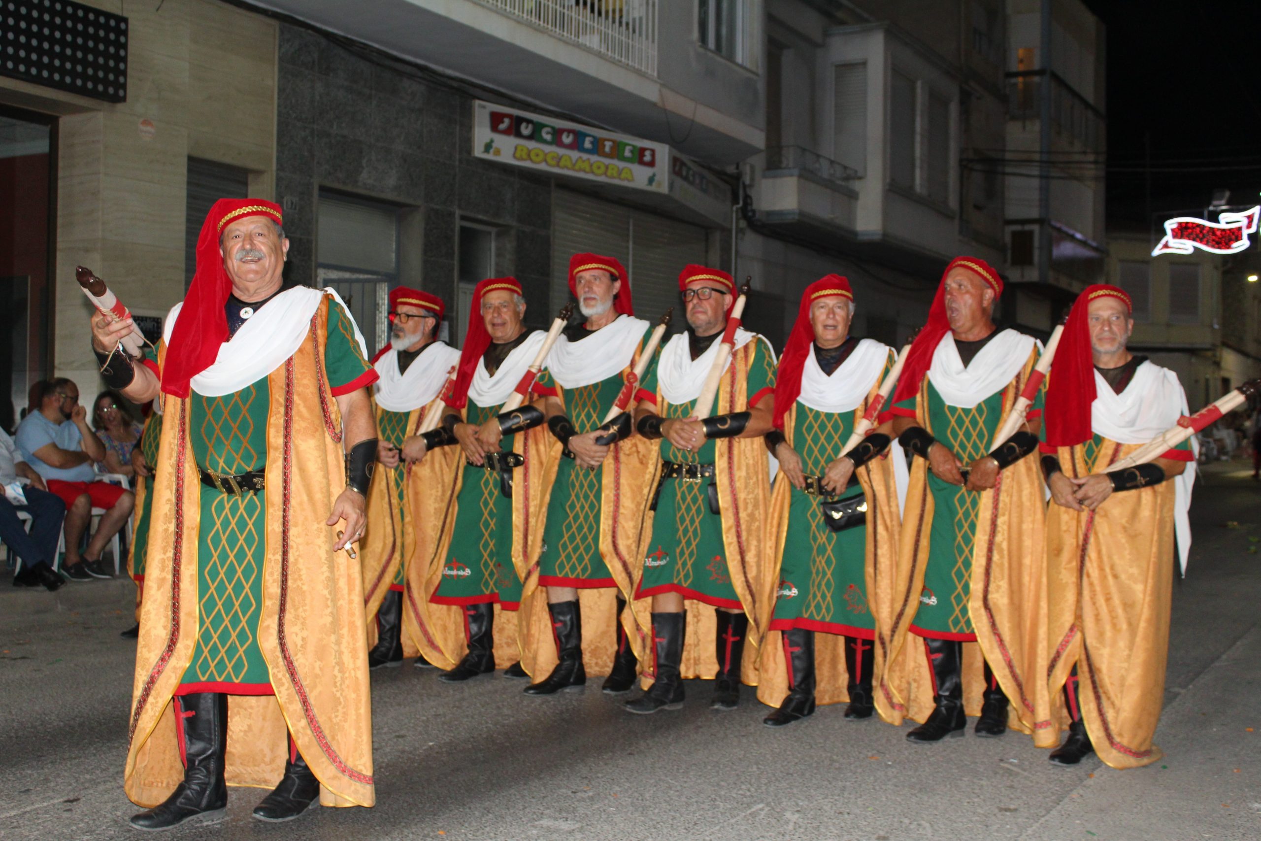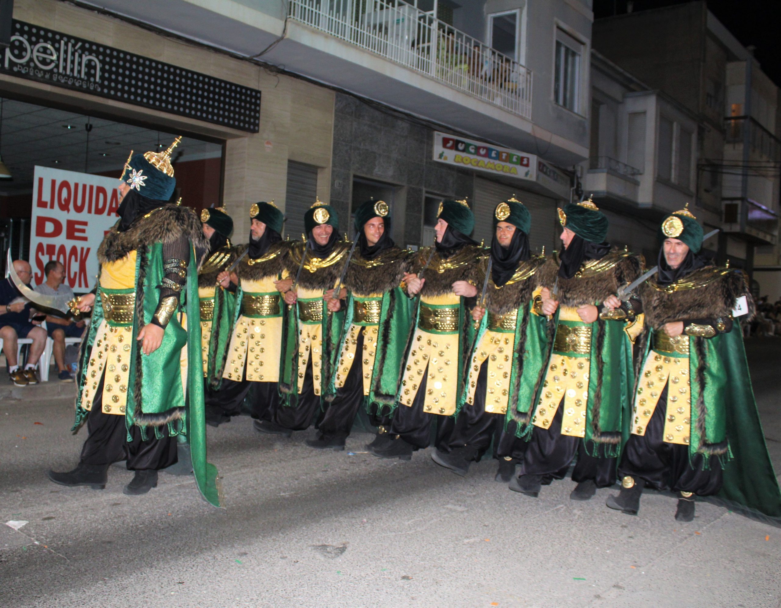 Encabezados por el embajador y Sultana Mora, el bando moro desfiló anoche por las calles de Novelda con las comparsas Árabes Damasquinos, Piratas Berberiscos, Árabe Beduinos, Negres Betànics y Árabes Omeyas. Mientras, el bando cristiano, con su embajador y Reina Cristiana, acompañados por Mozárabes, Zíngaros y Astures, recorrió las calles noveldenses bajo el esplendor de las marchas cristianas.