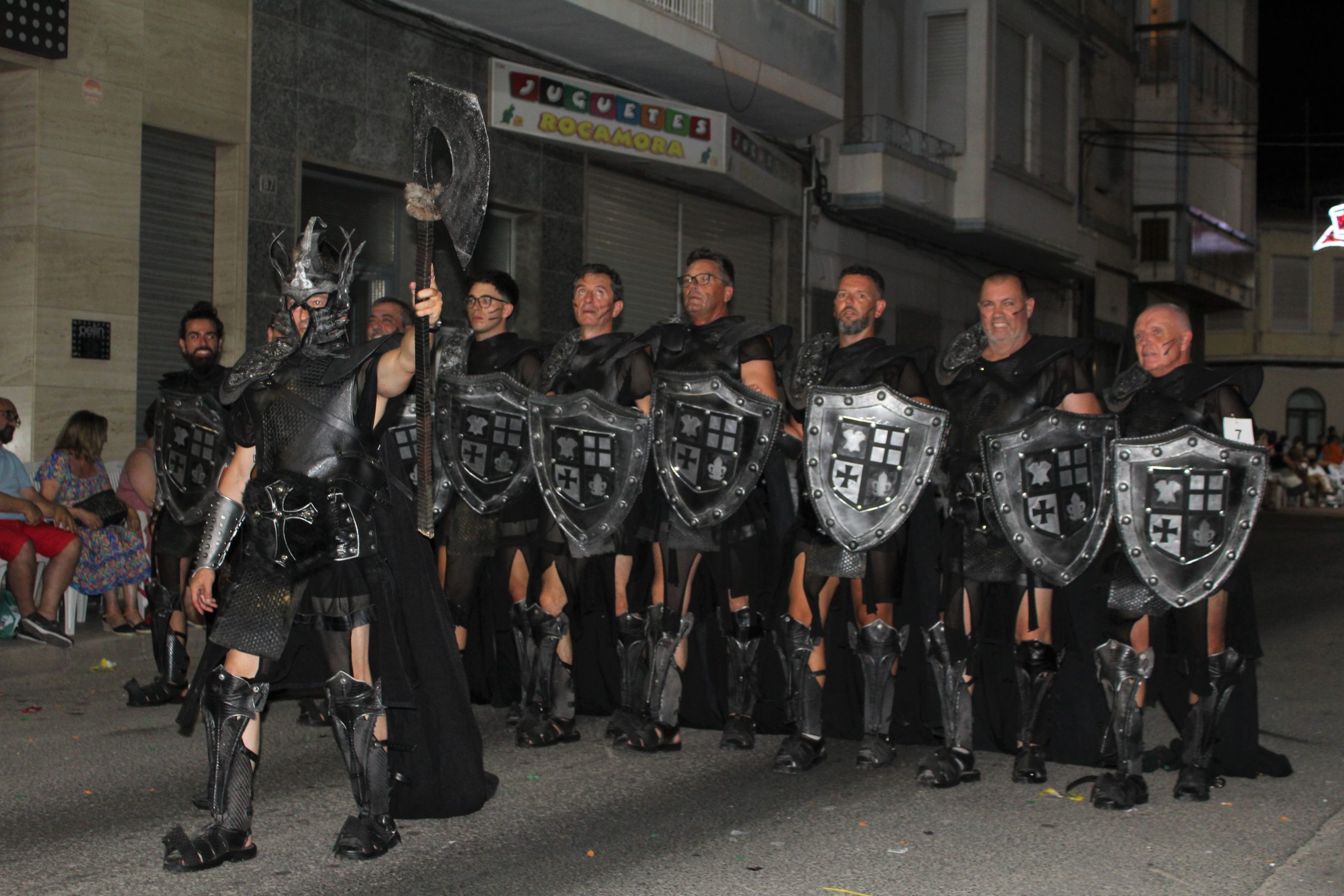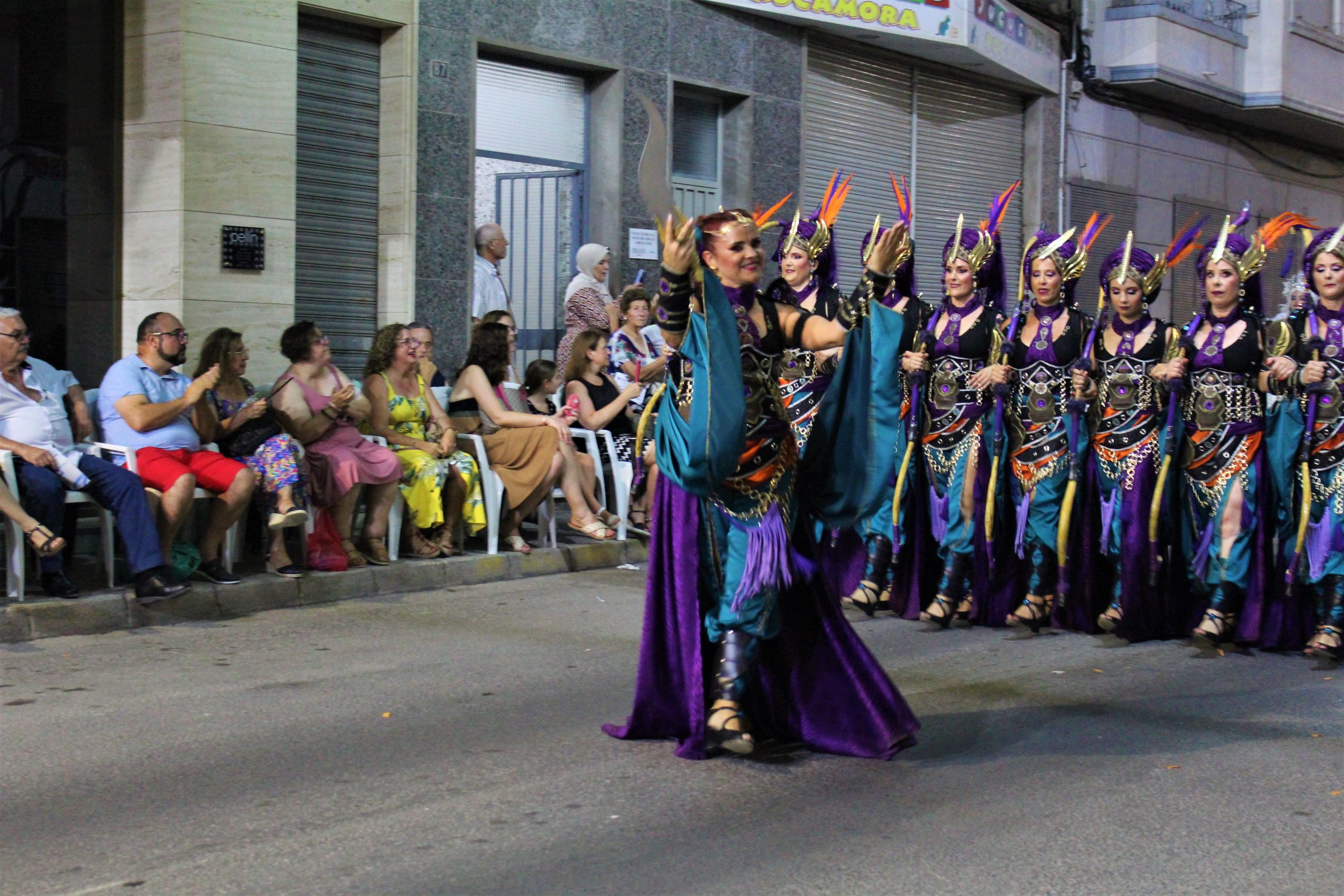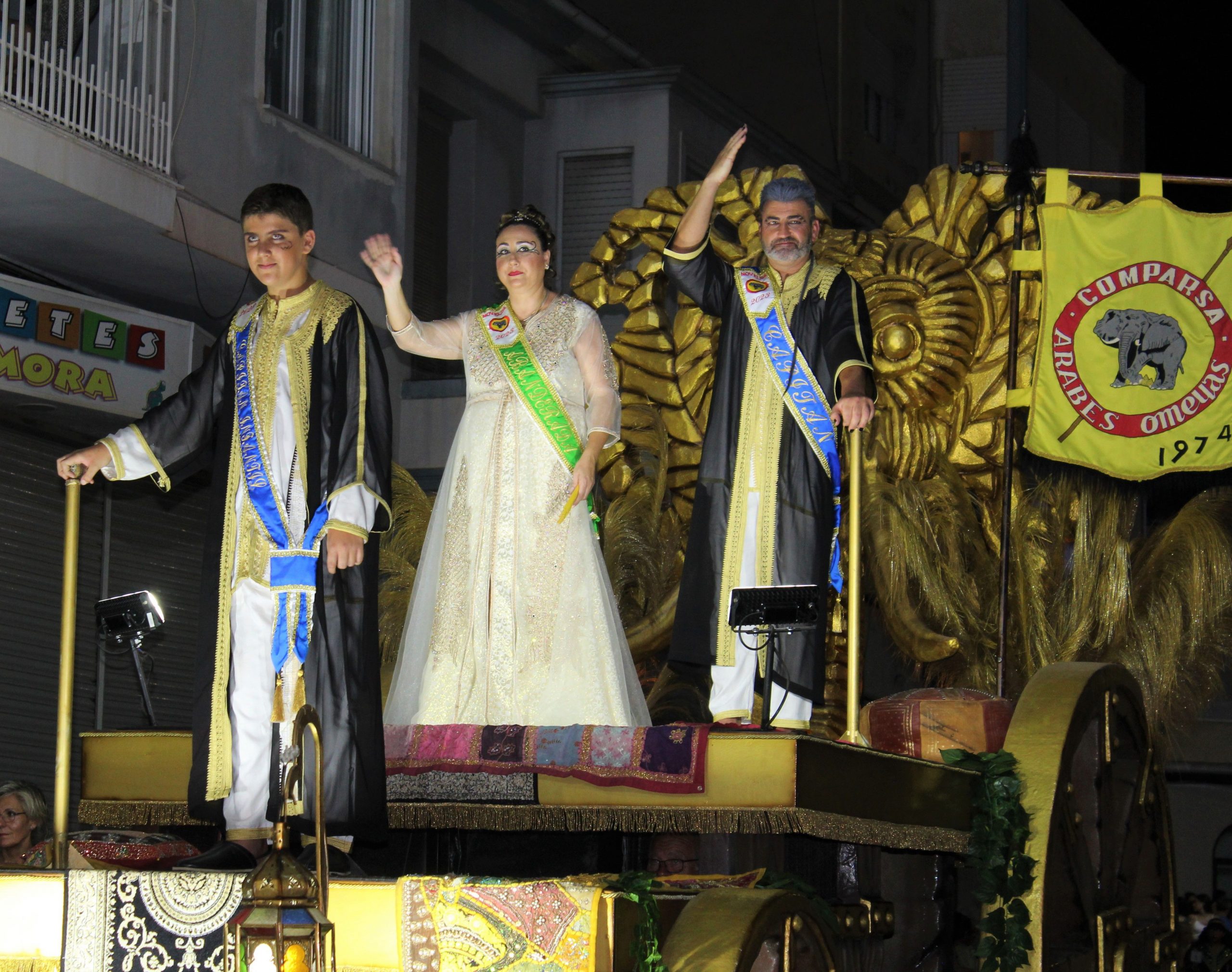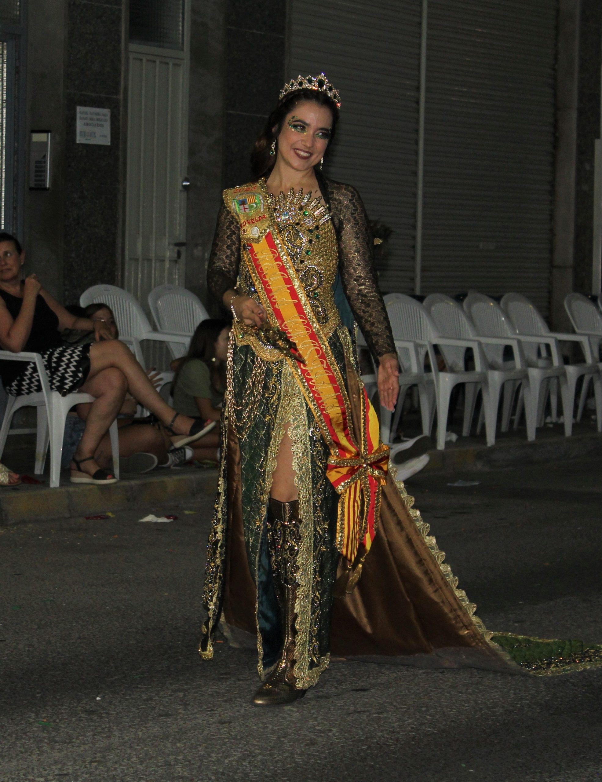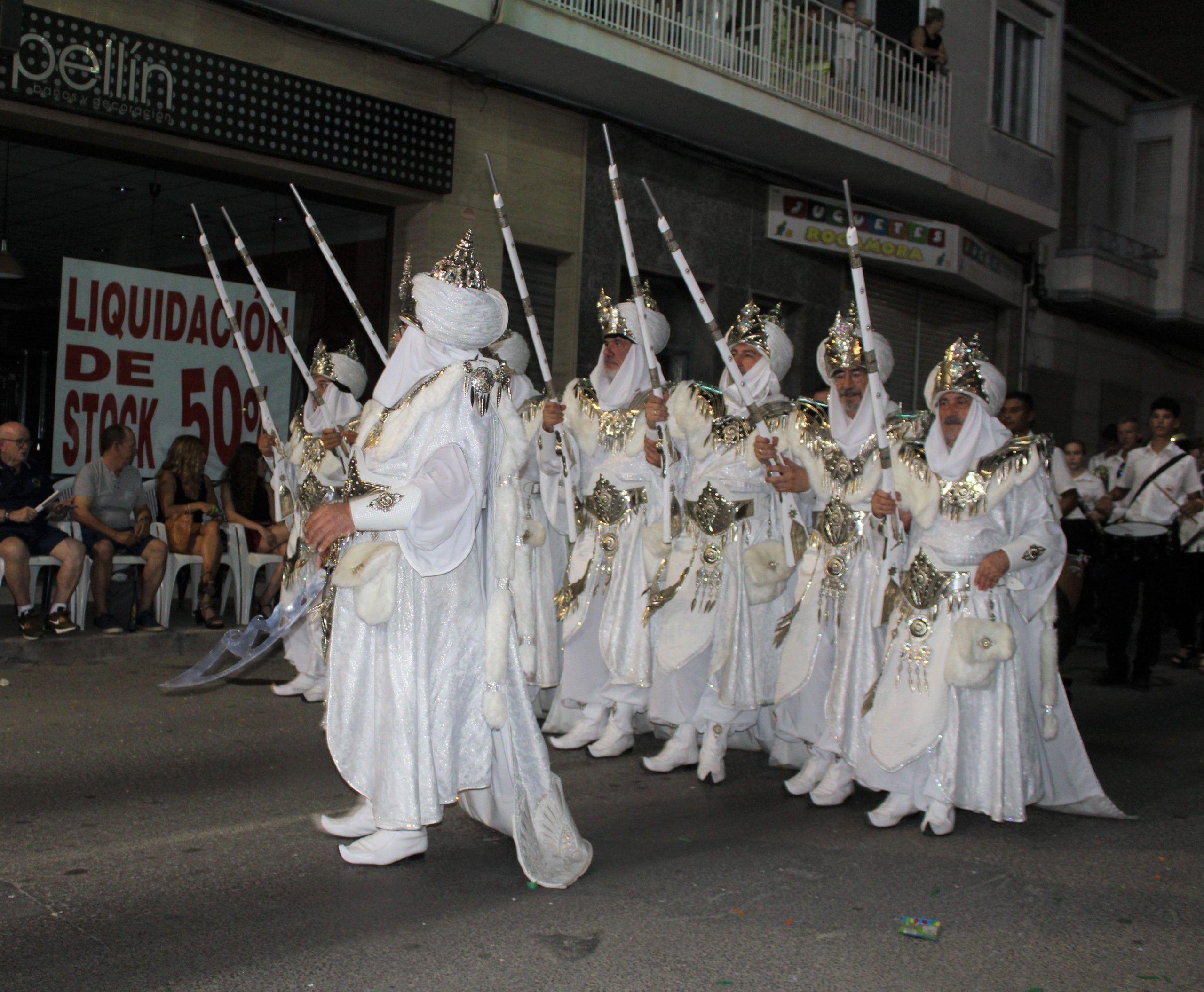 Encabezados por el embajador y Sultana Mora, el bando moro desfiló anoche por las calles de Novelda con las comparsas Árabes Damasquinos, Piratas Berberiscos, Árabe Beduinos, Negres Betànics y Árabes Omeyas. Mientras, el bando cristiano, con su embajador y Reina Cristiana, acompañados por Mozárabes, Zíngaros y Astures, recorrió las calles noveldenses bajo el esplendor de las marchas cristianas.