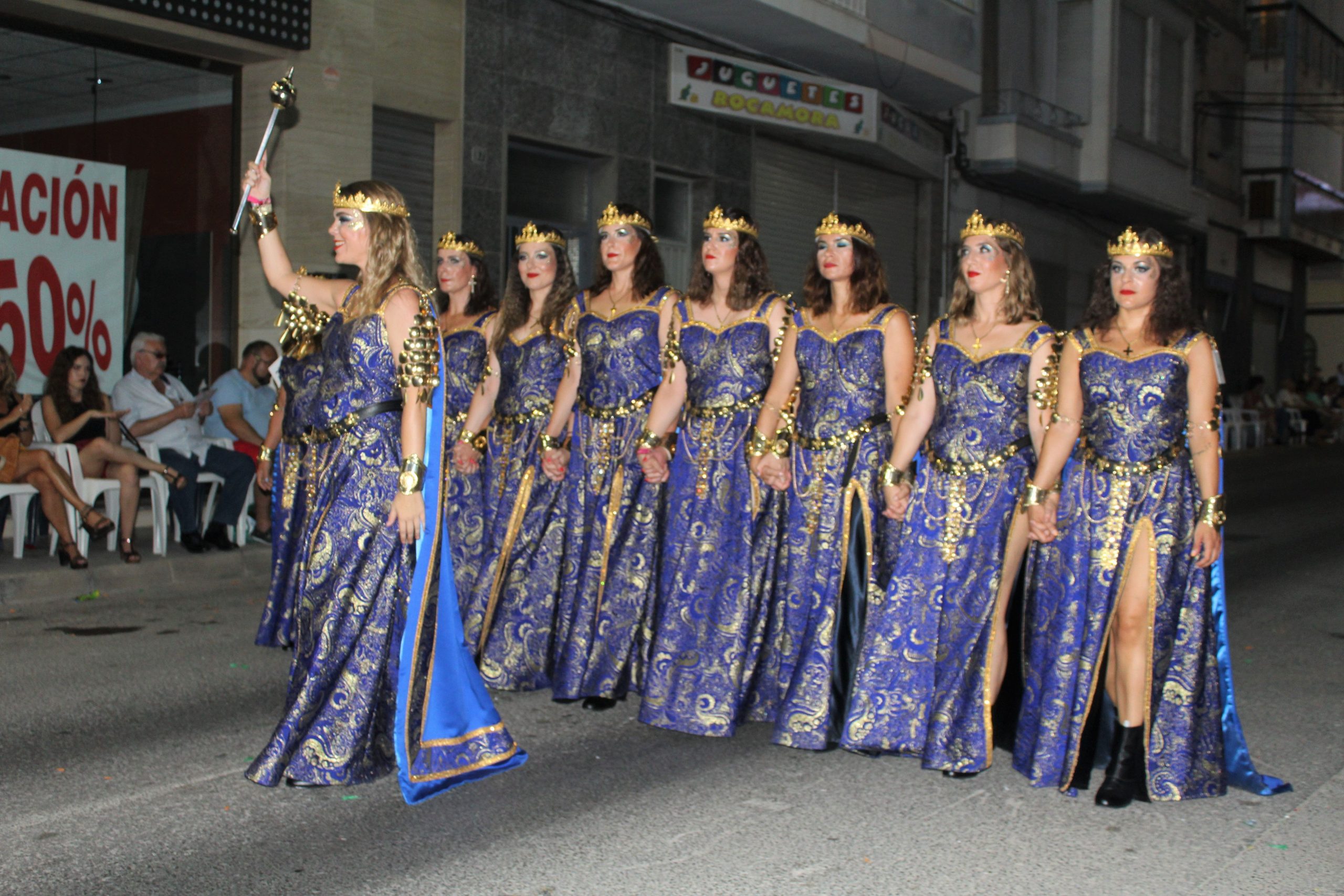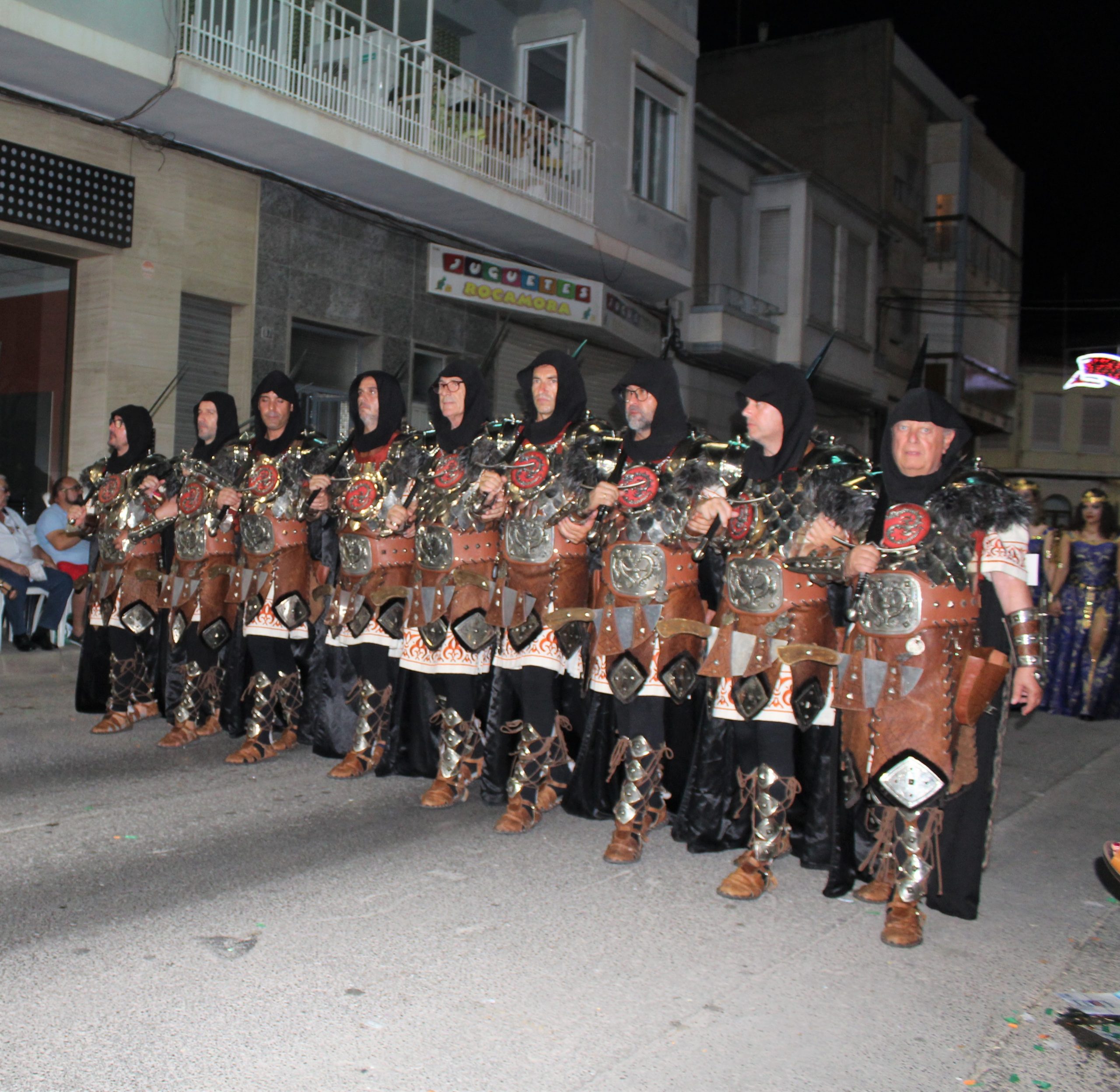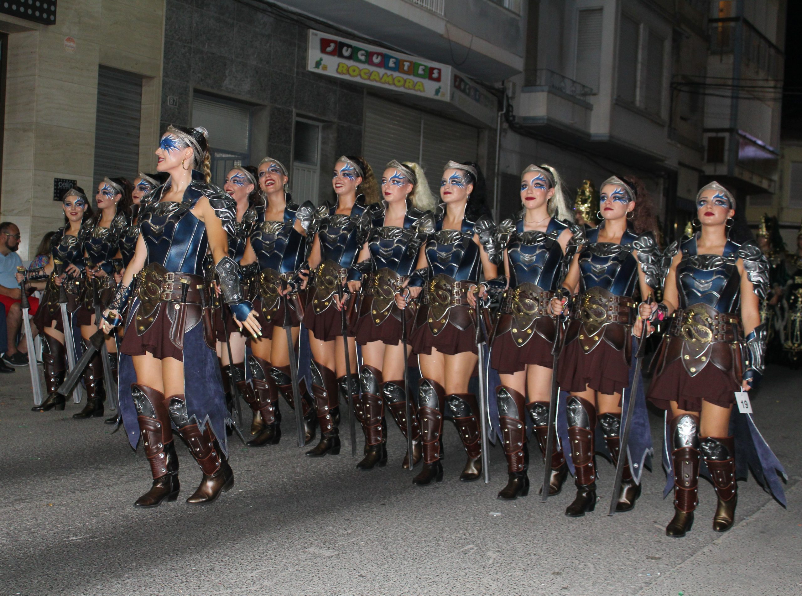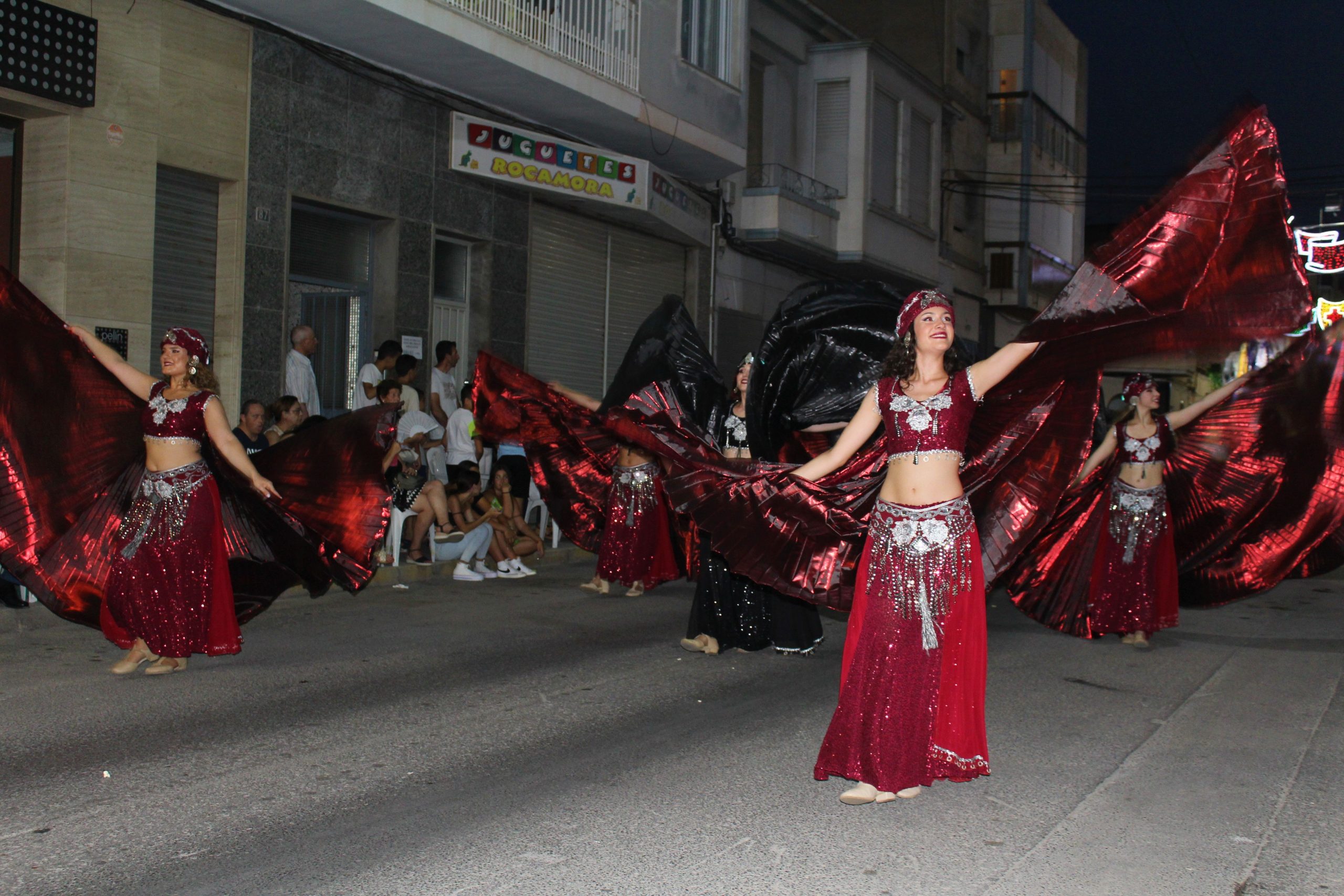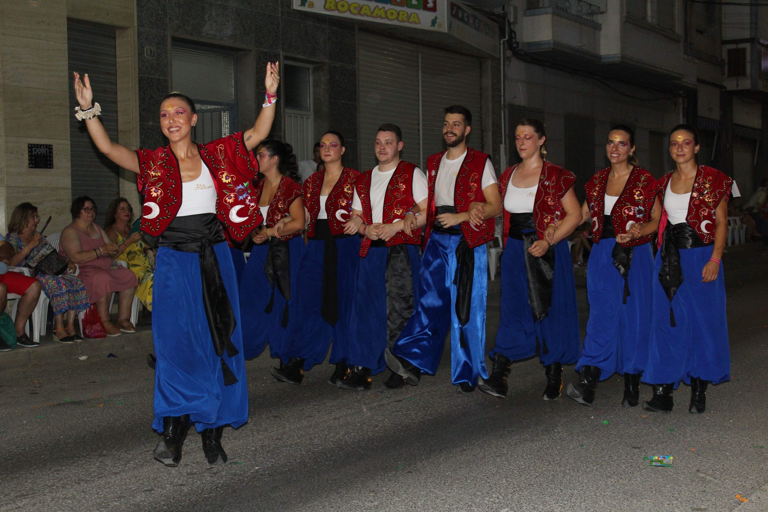 Encabezados por el embajador y Sultana Mora, el bando moro desfiló anoche por las calles de Novelda con las comparsas Árabes Damasquinos, Piratas Berberiscos, Árabe Beduinos, Negres Betànics y Árabes Omeyas. Mientras, el bando cristiano, con su embajador y Reina Cristiana, acompañados por Mozárabes, Zíngaros y Astures, recorrió las calles noveldenses bajo el esplendor de las marchas cristianas.