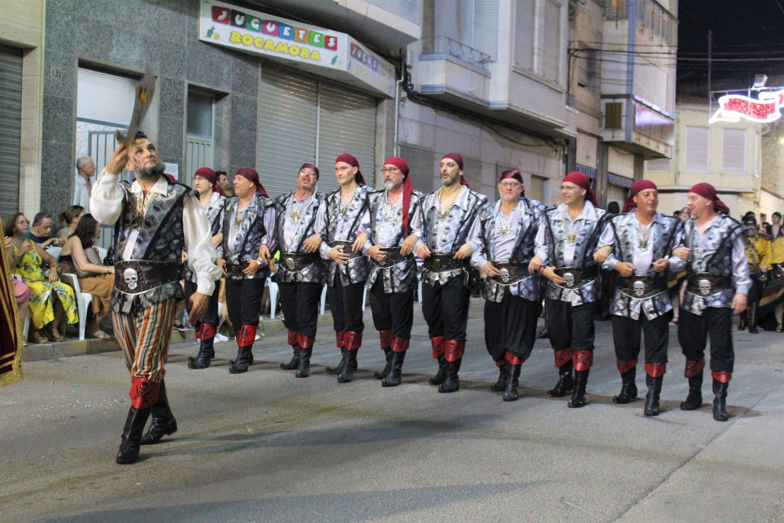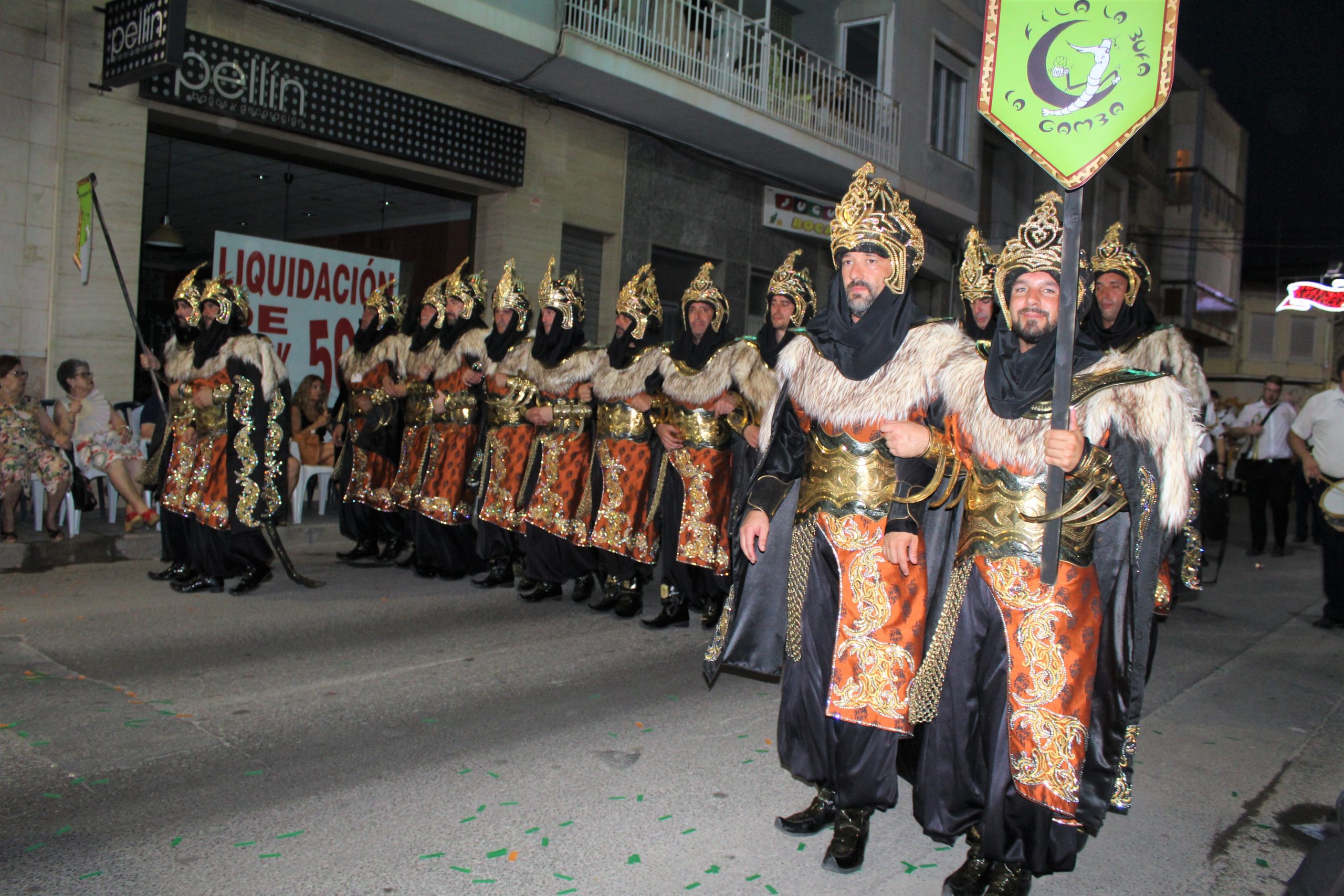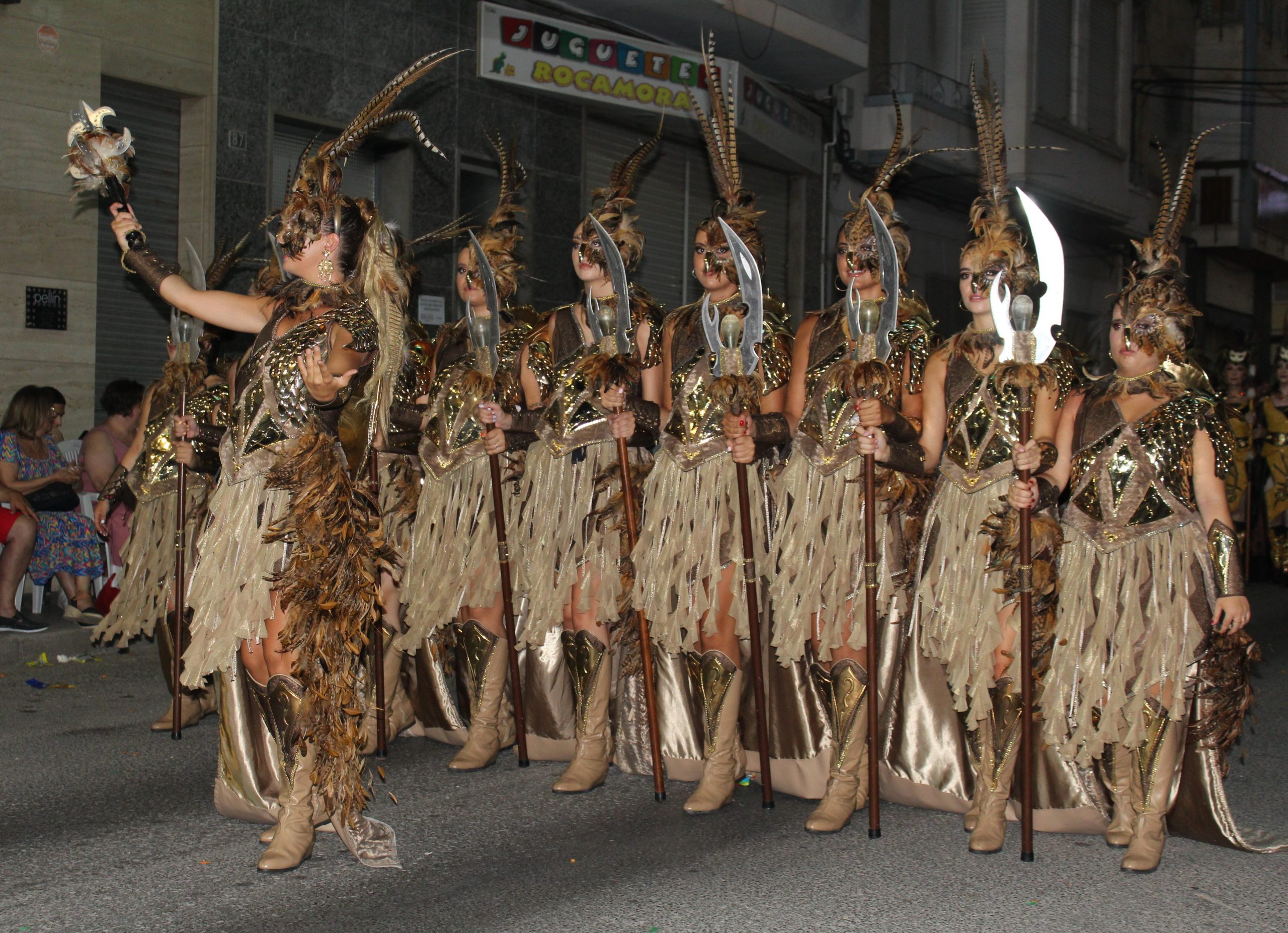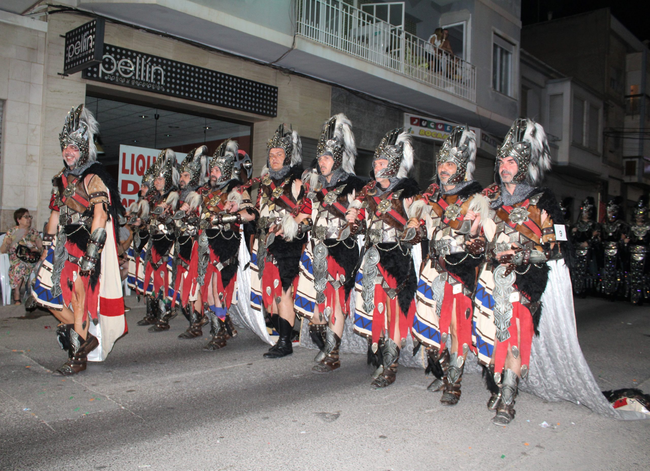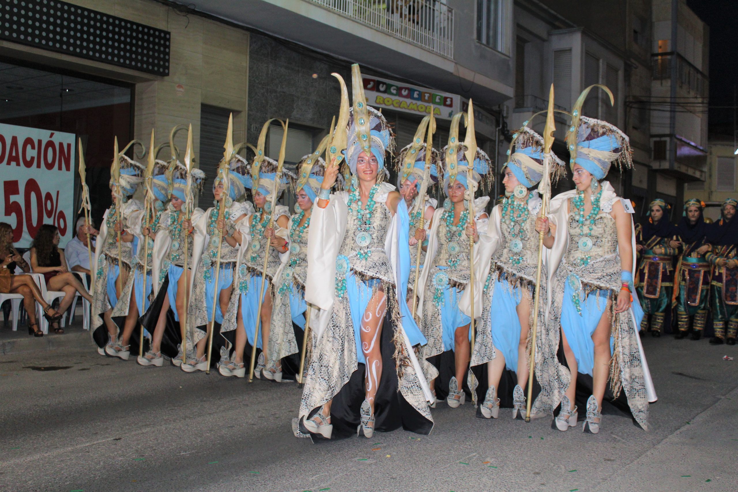 Encabezados por el embajador y Sultana Mora, el bando moro desfiló anoche por las calles de Novelda con las comparsas Árabes Damasquinos, Piratas Berberiscos, Árabe Beduinos, Negres Betànics y Árabes Omeyas. Mientras, el bando cristiano, con su embajador y Reina Cristiana, acompañados por Mozárabes, Zíngaros y Astures, recorrió las calles noveldenses bajo el esplendor de las marchas cristianas.