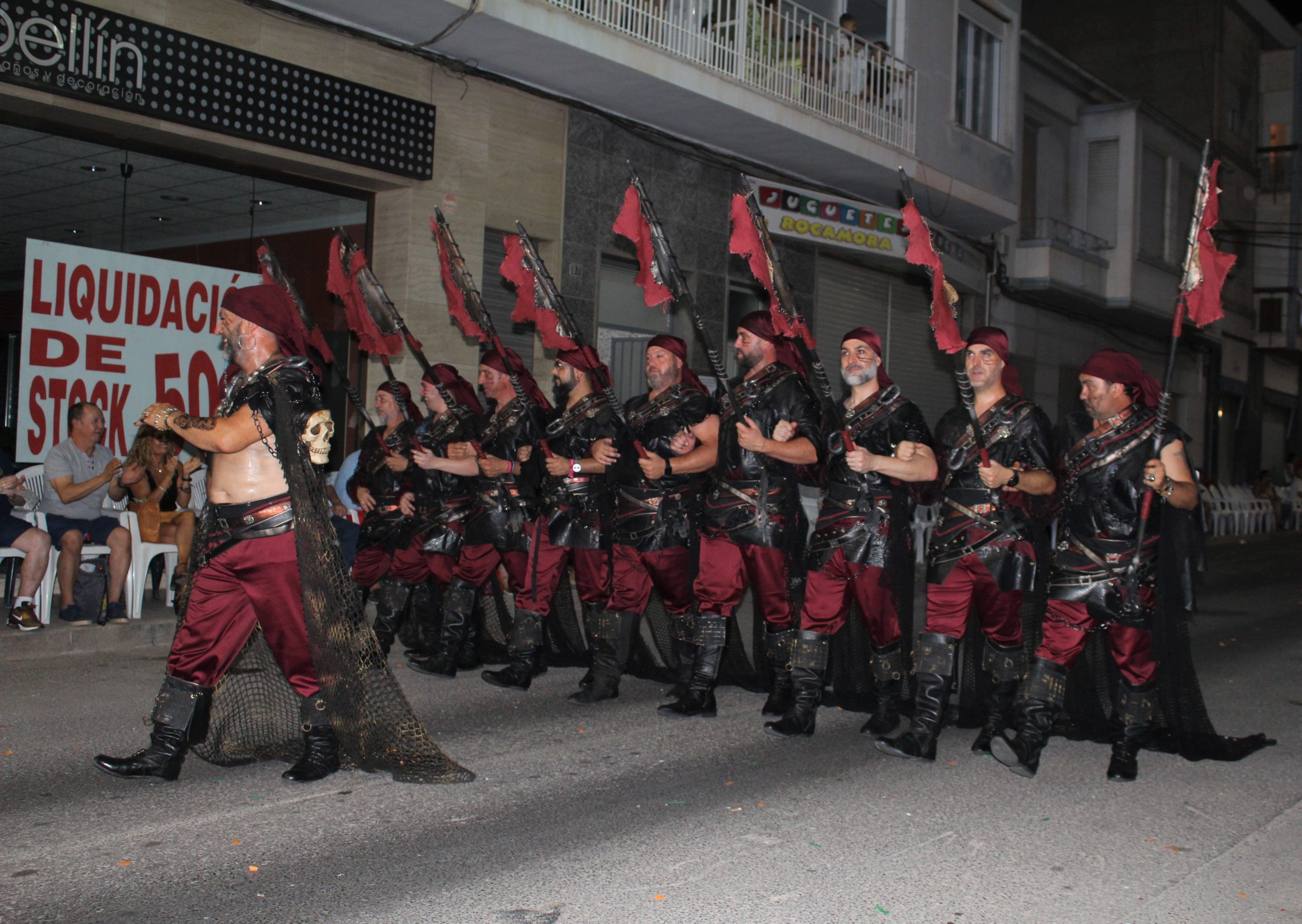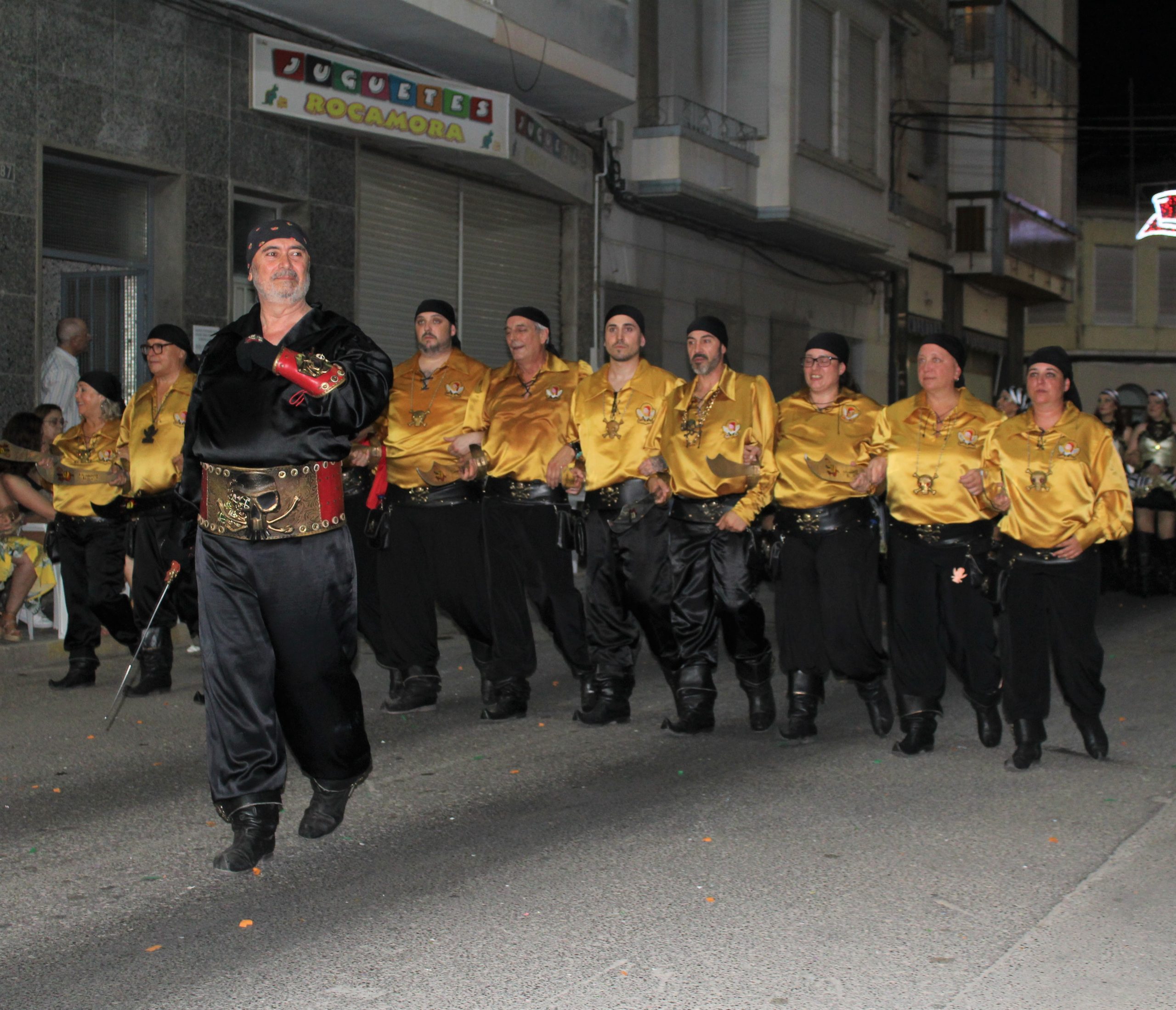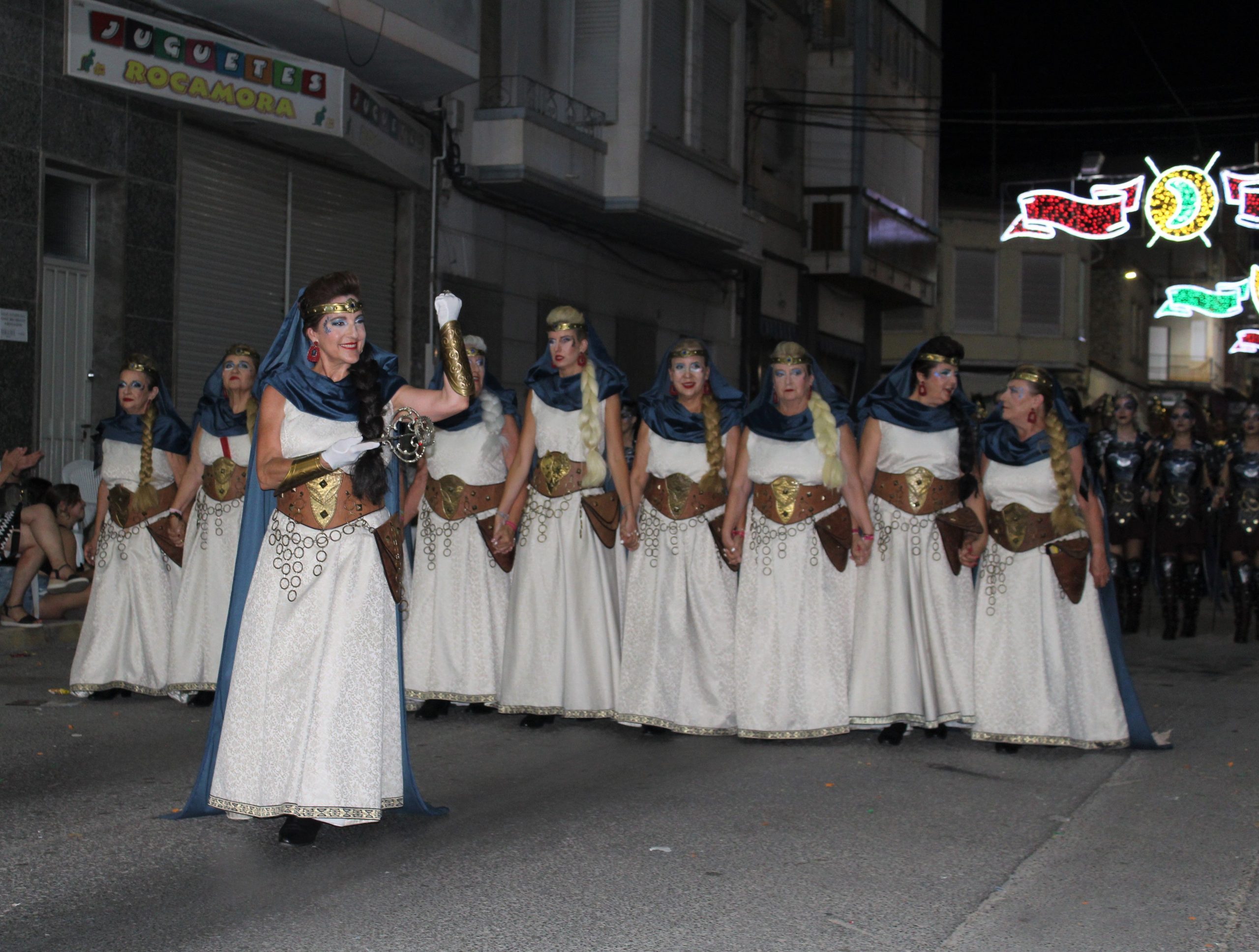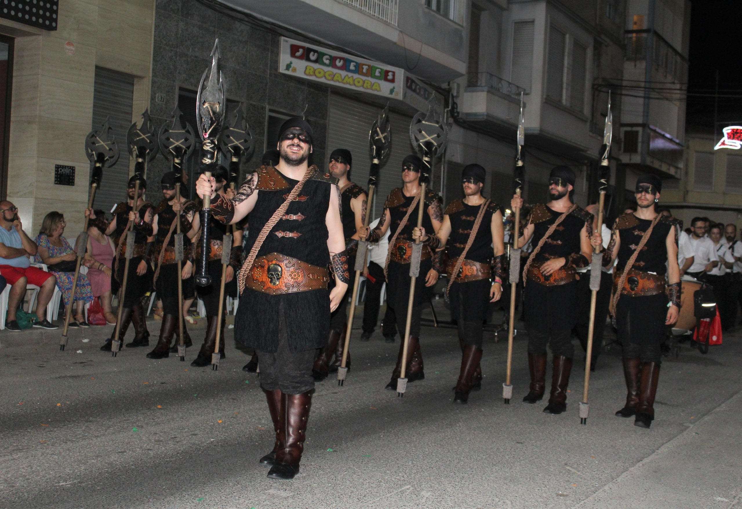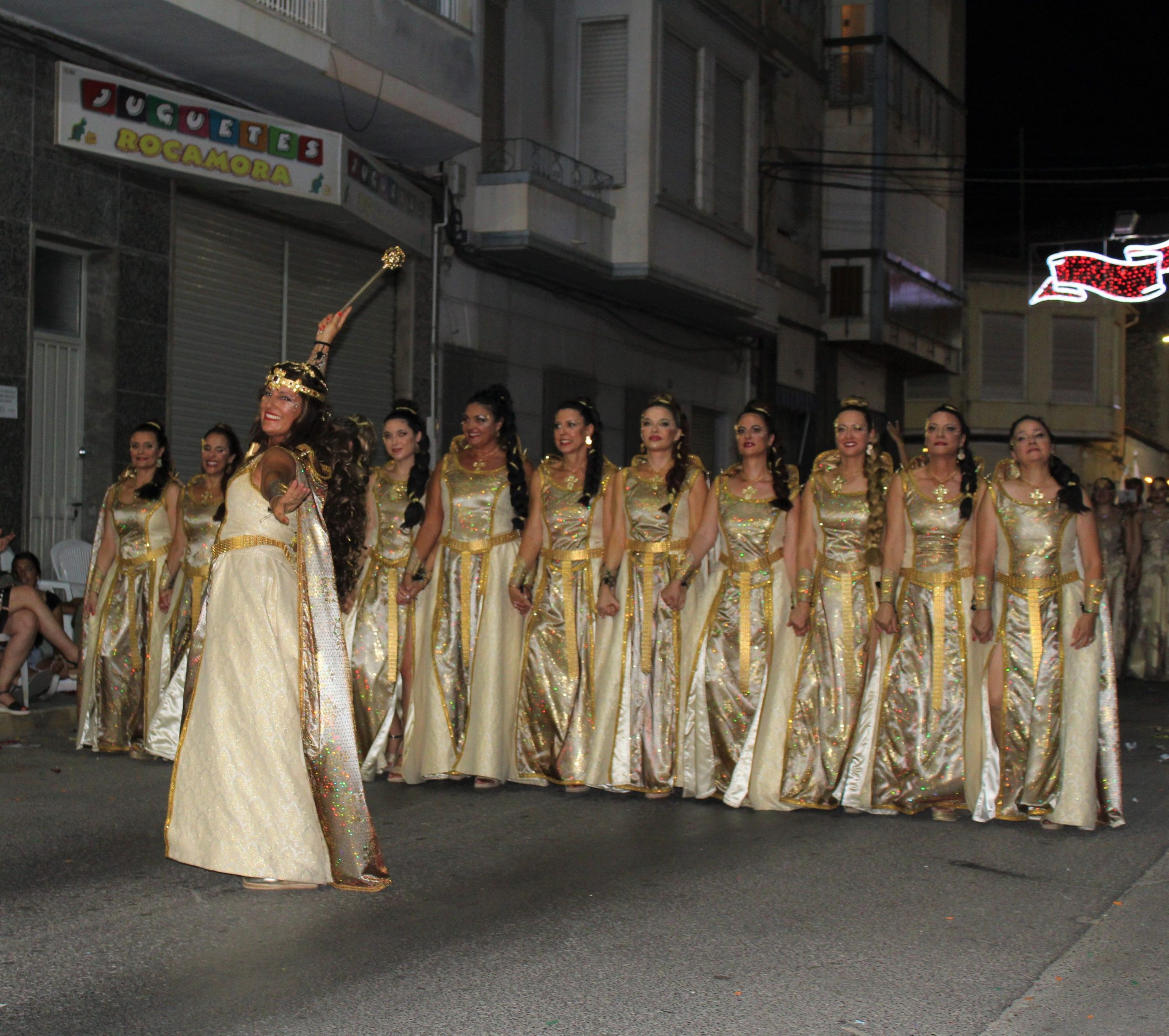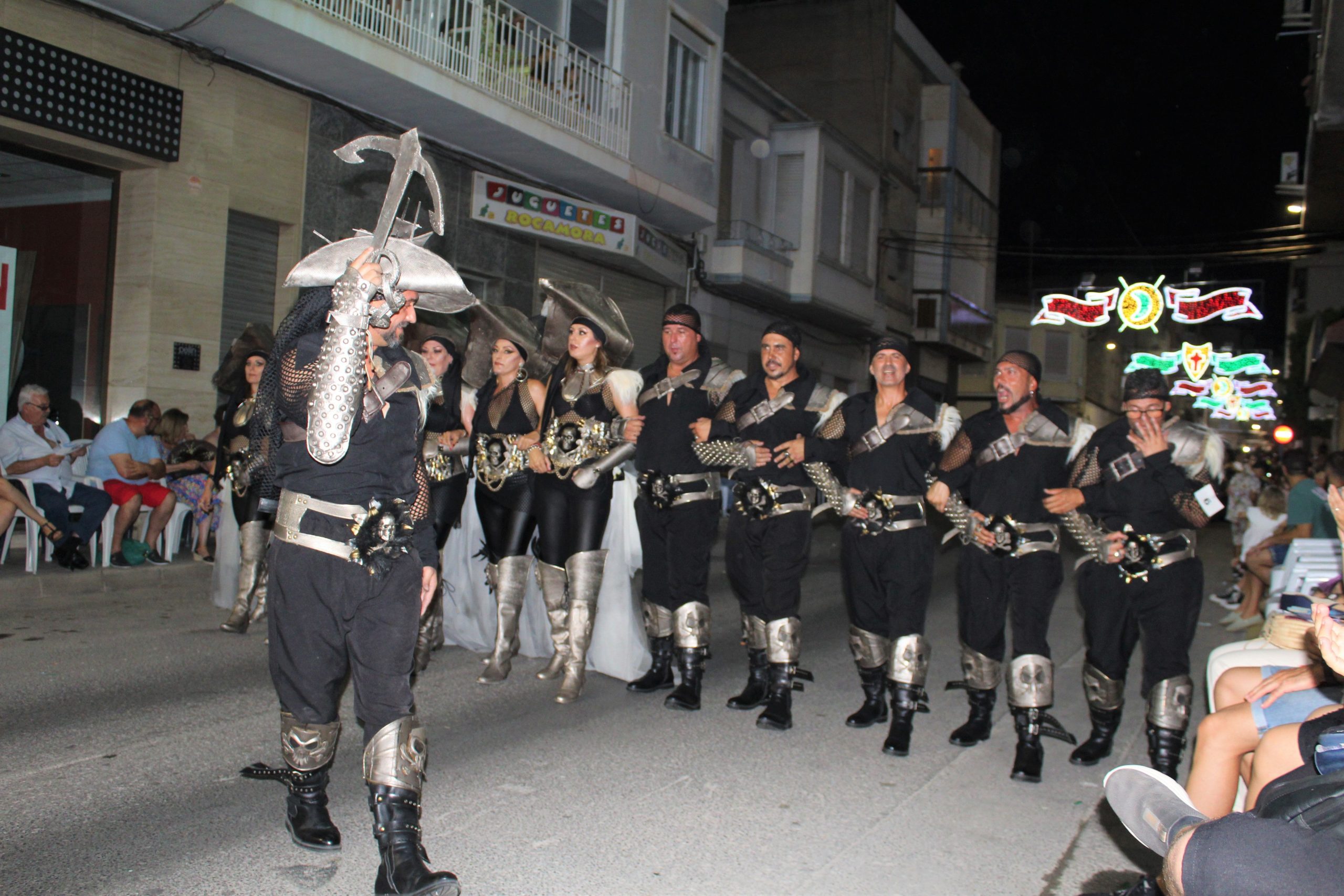 Encabezados por el embajador y Sultana Mora, el bando moro desfiló anoche por las calles de Novelda con las comparsas Árabes Damasquinos, Piratas Berberiscos, Árabe Beduinos, Negres Betànics y Árabes Omeyas. Mientras, el bando cristiano, con su embajador y Reina Cristiana, acompañados por Mozárabes, Zíngaros y Astures, recorrió las calles noveldenses bajo el esplendor de las marchas cristianas.