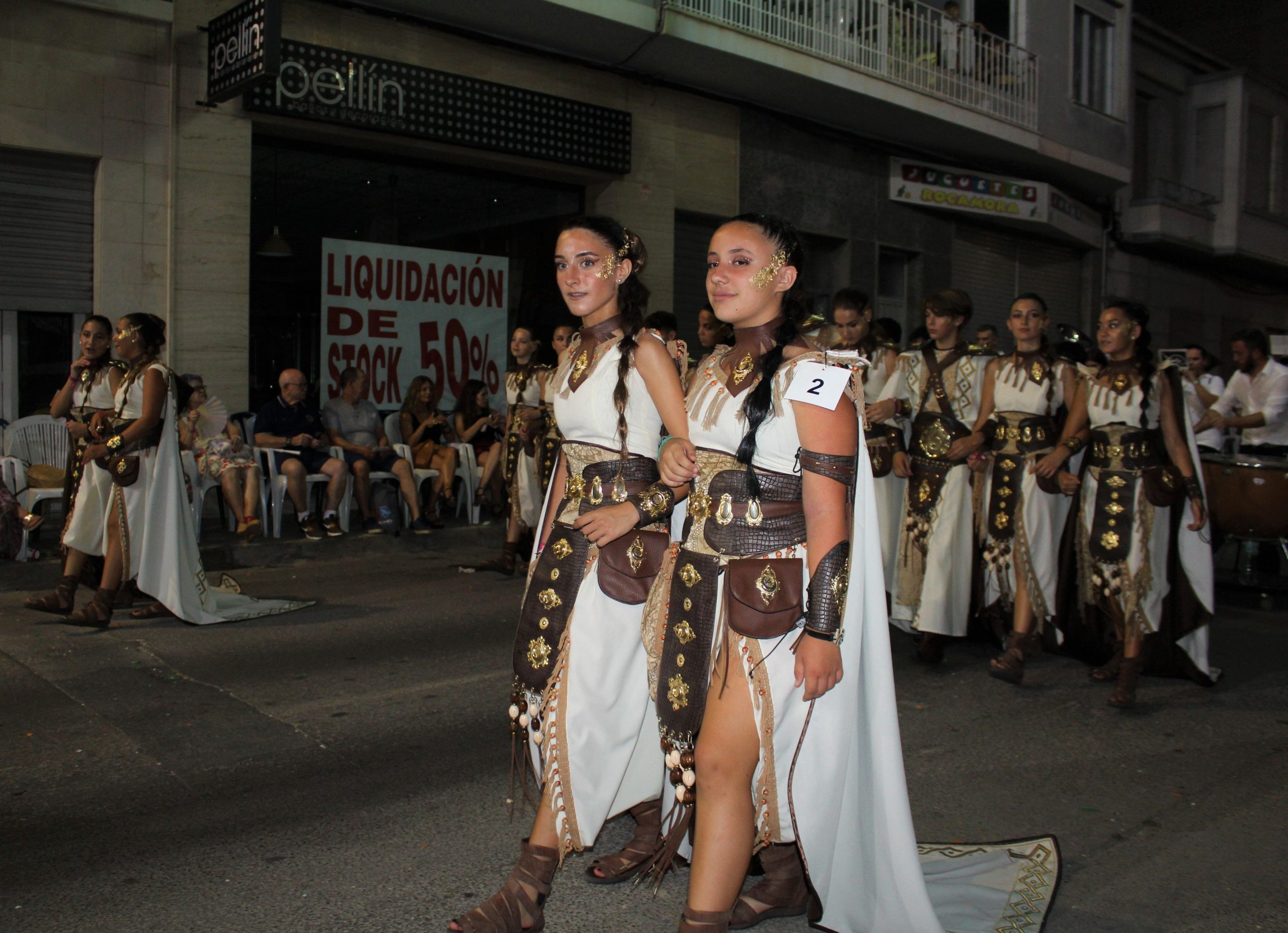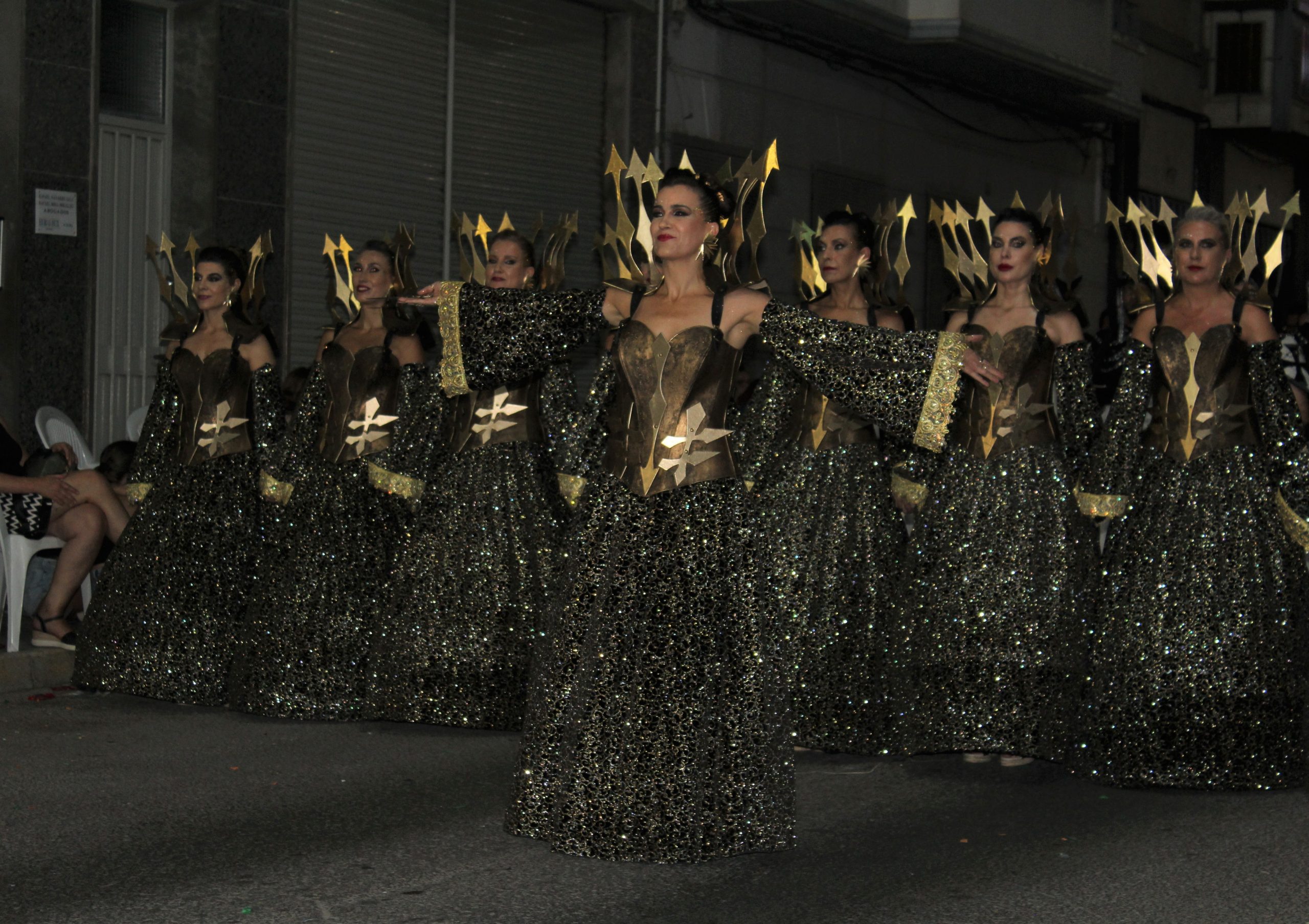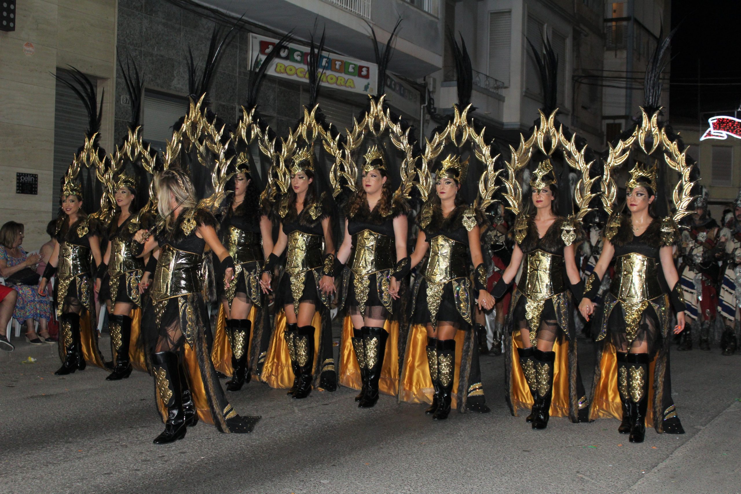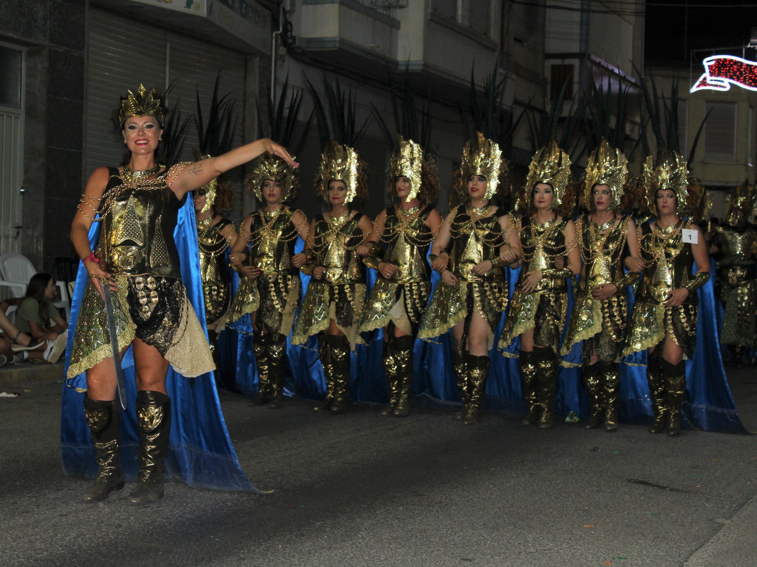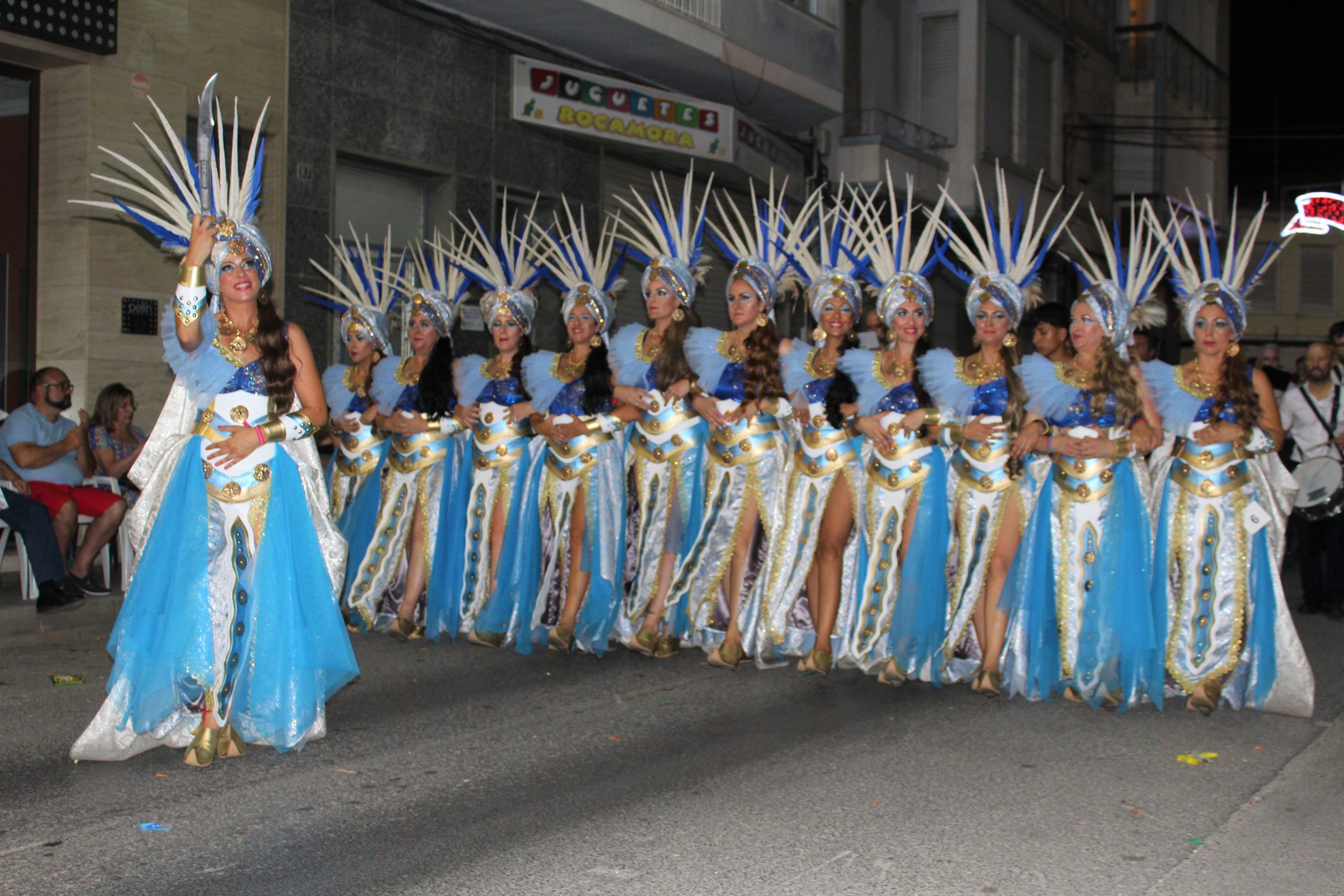Encabezados por el embajador y Sultana Mora, el bando moro desfiló anoche por las calles de Novelda con las comparsas Árabes Damasquinos, Piratas Berberiscos, Árabe Beduinos, Negres Betànics y Árabes Omeyas. Mientras, el bando cristiano, con su embajador y Reina Cristiana, acompañados por Mozárabes, Zíngaros y Astures, recorrió las calles noveldenses bajo el esplendor de las marchas cristianas.