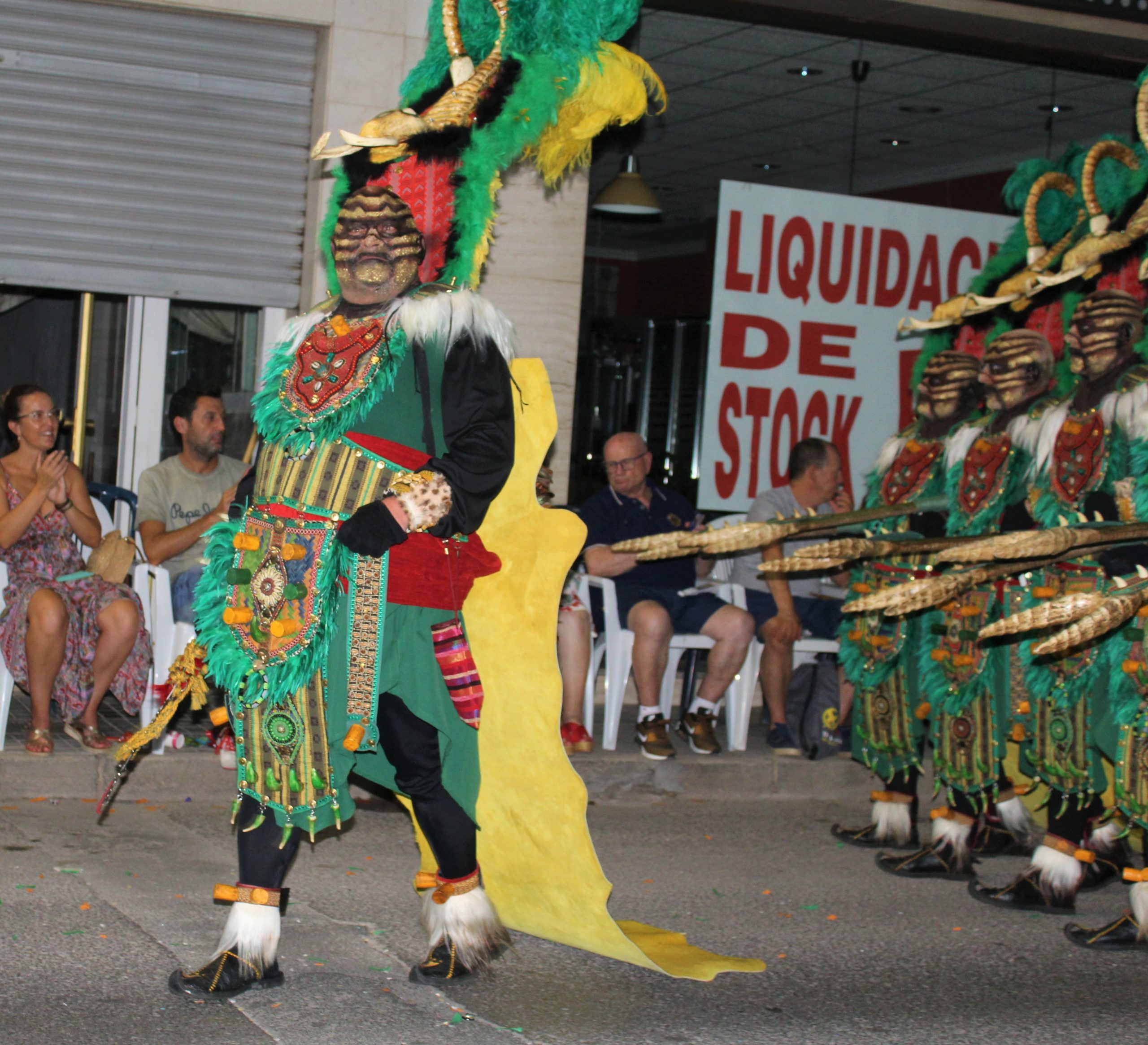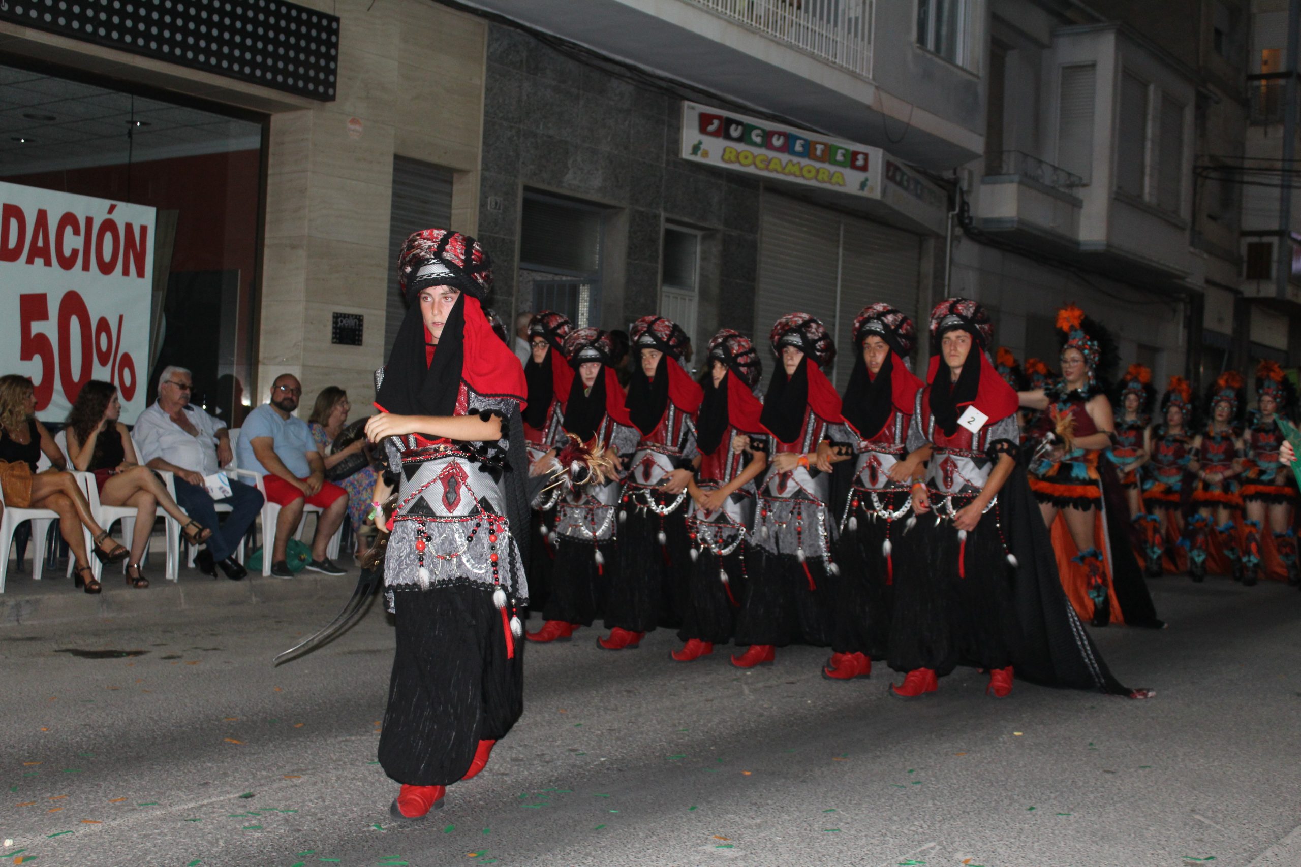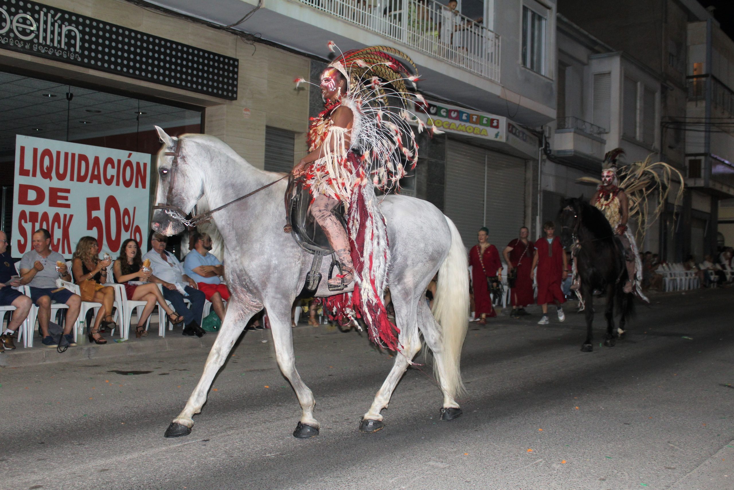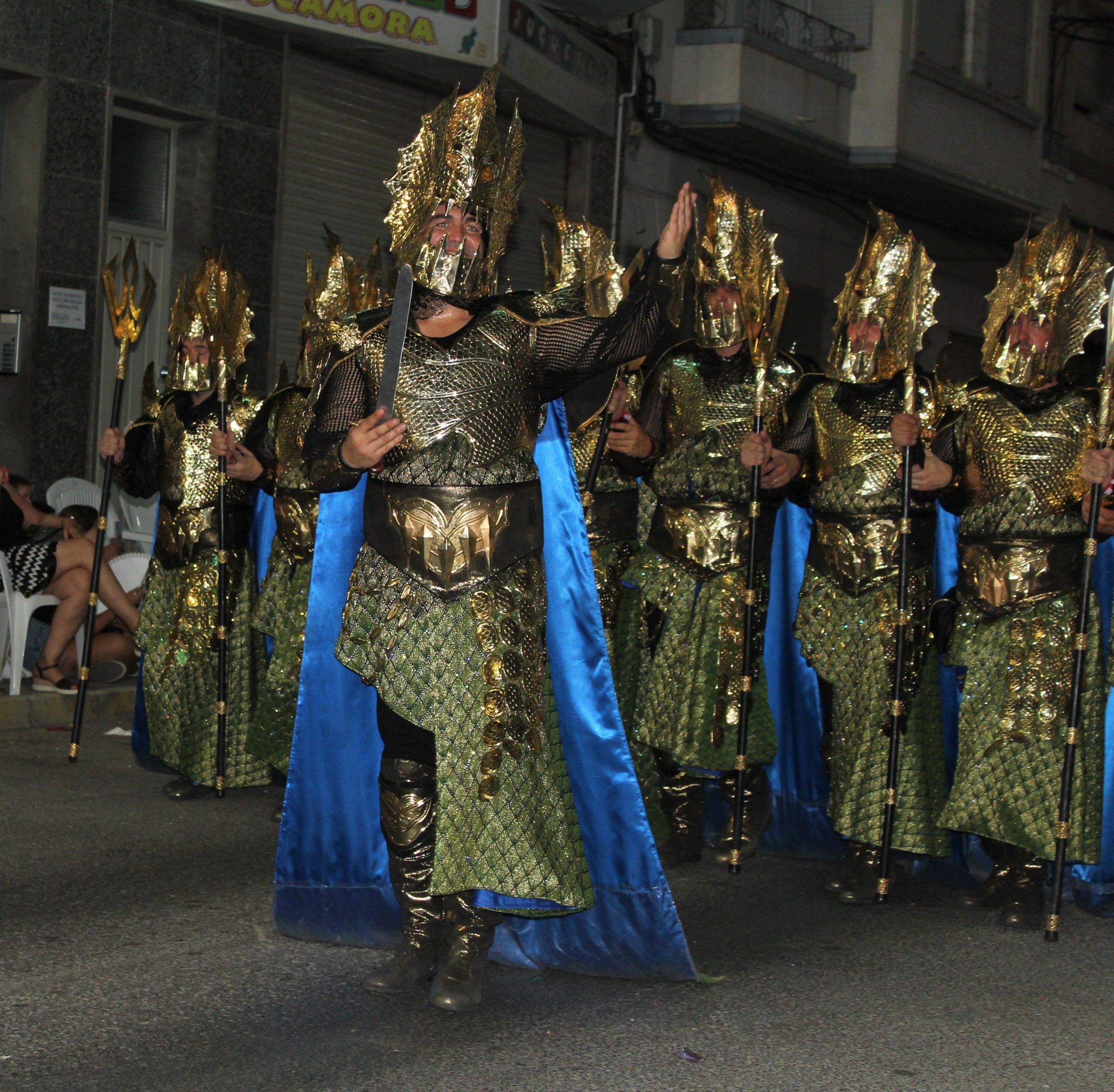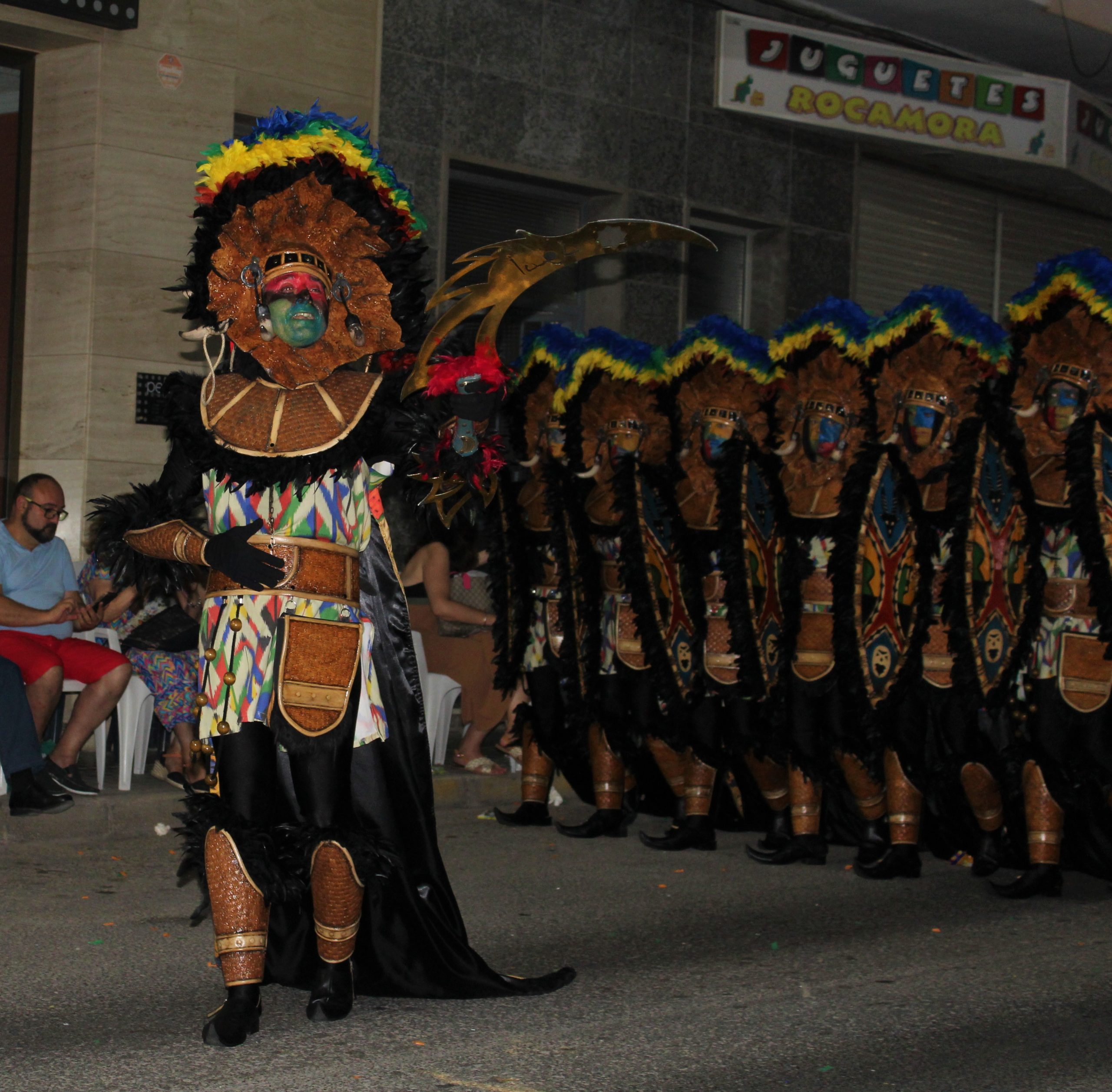 Encabezados por el embajador y Sultana Mora, el bando moro desfiló anoche por las calles de Novelda con las comparsas Árabes Damasquinos, Piratas Berberiscos, Árabe Beduinos, Negres Betànics y Árabes Omeyas. Mientras, el bando cristiano, con su embajador y Reina Cristiana, acompañados por Mozárabes, Zíngaros y Astures, recorrió las calles noveldenses bajo el esplendor de las marchas cristianas.