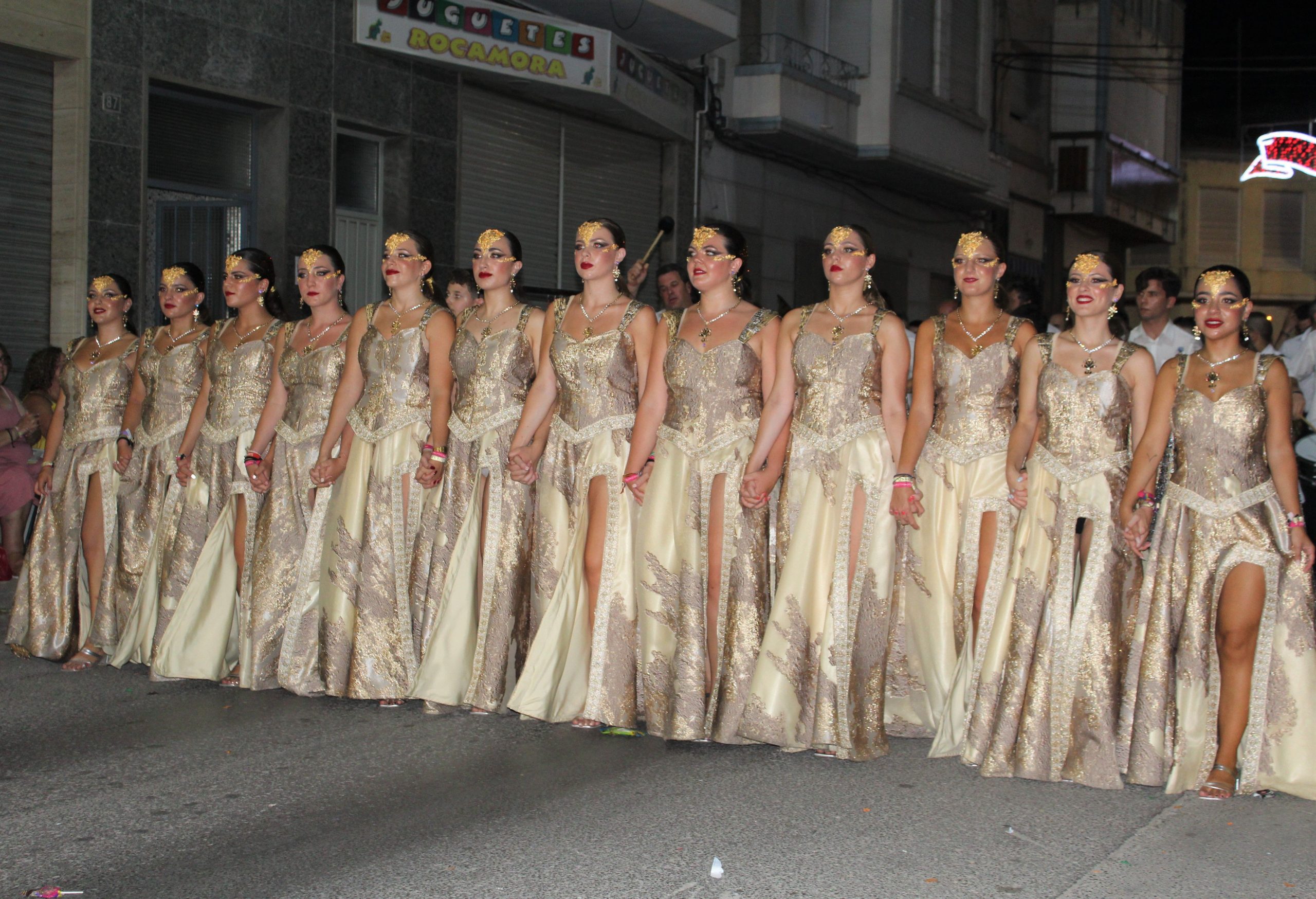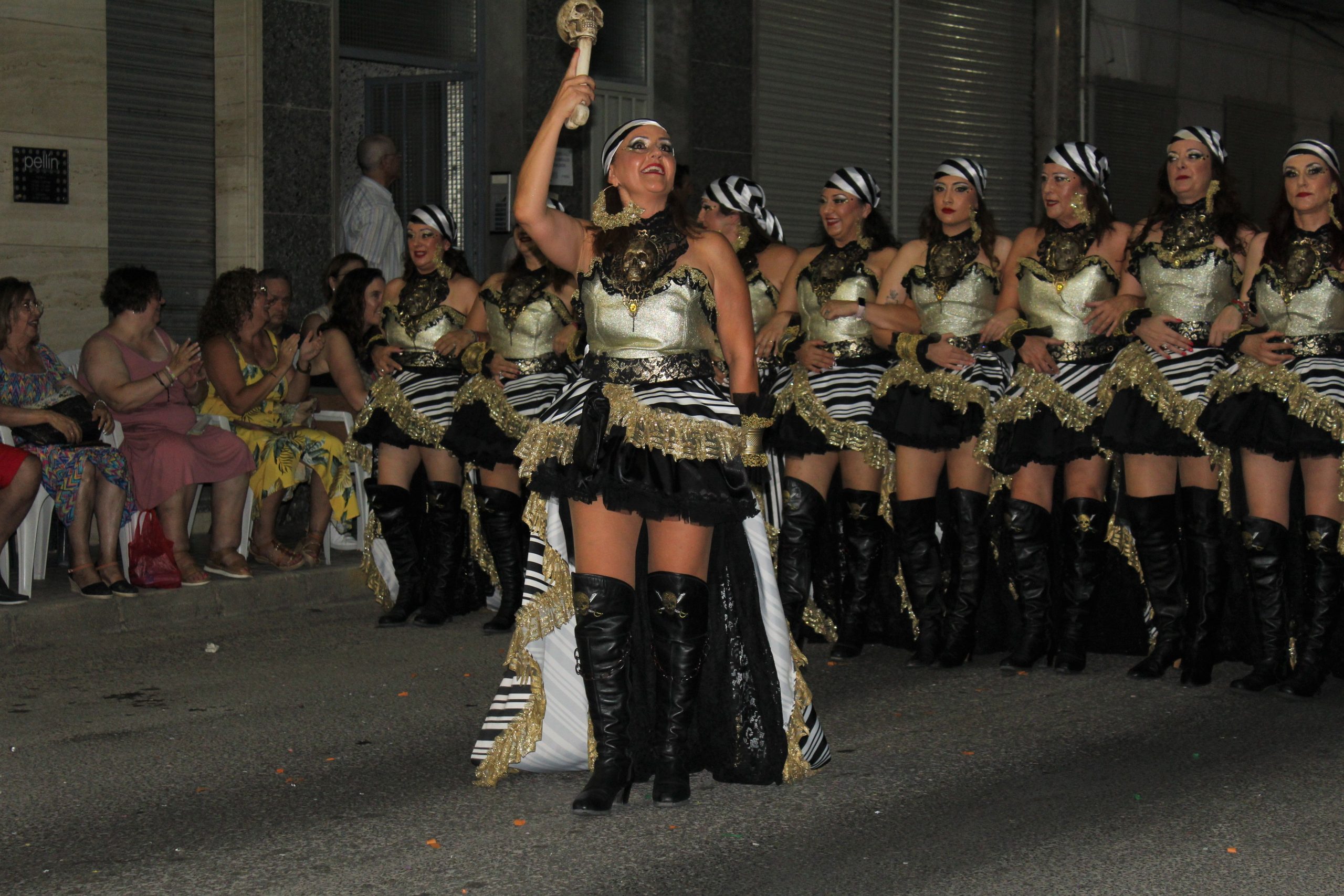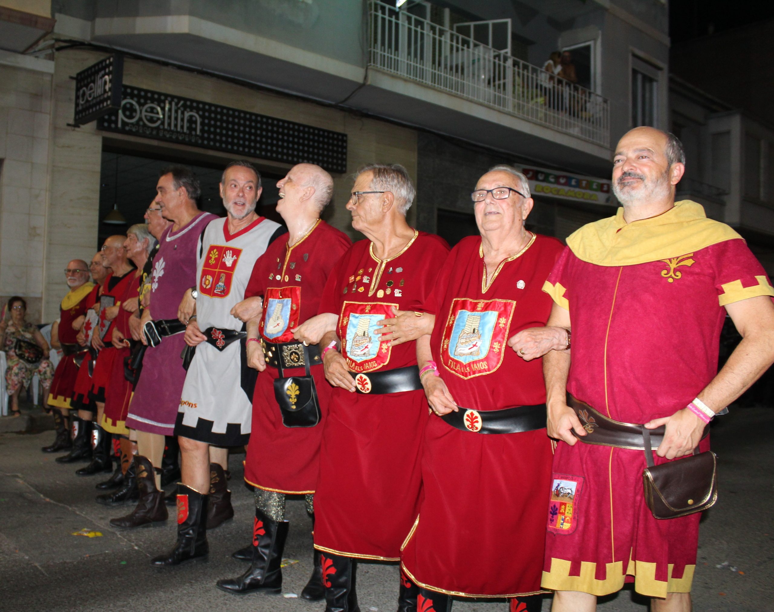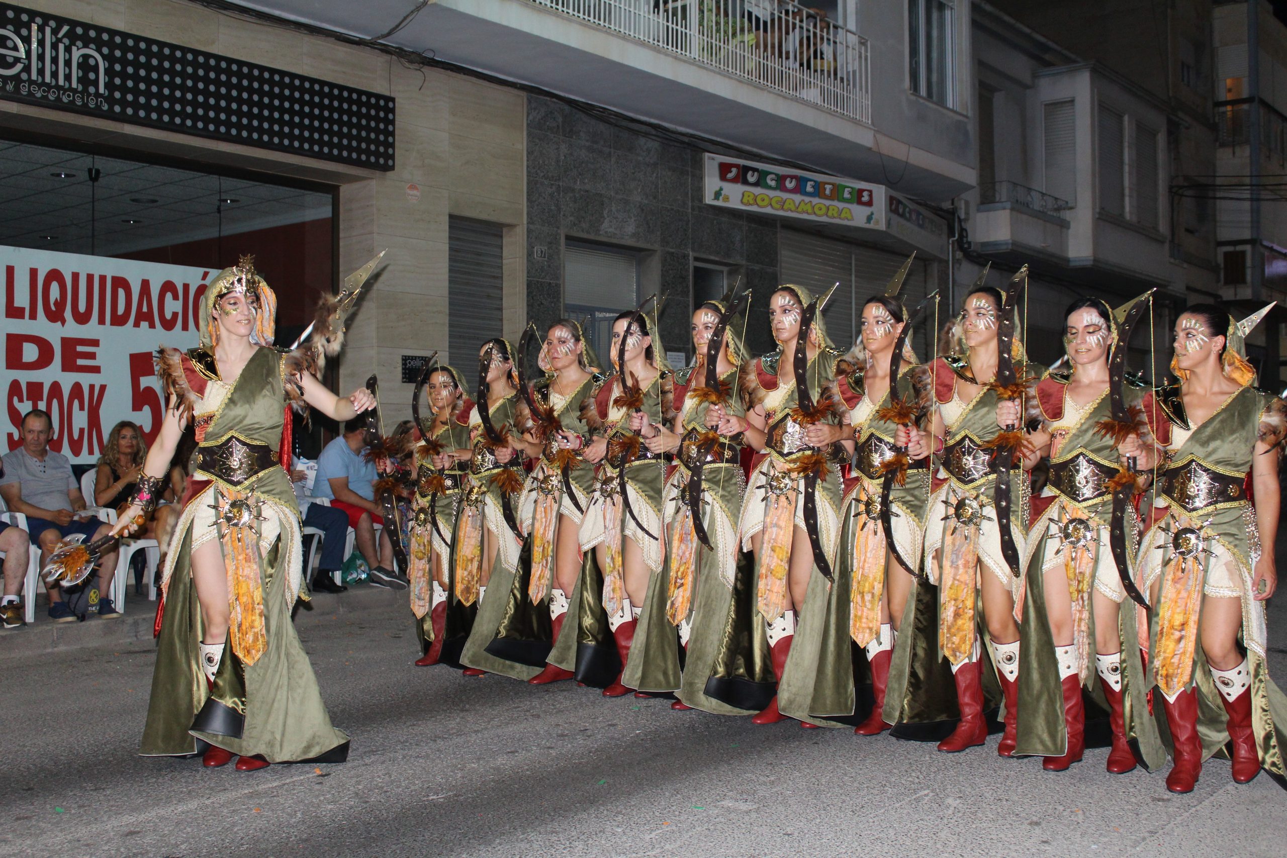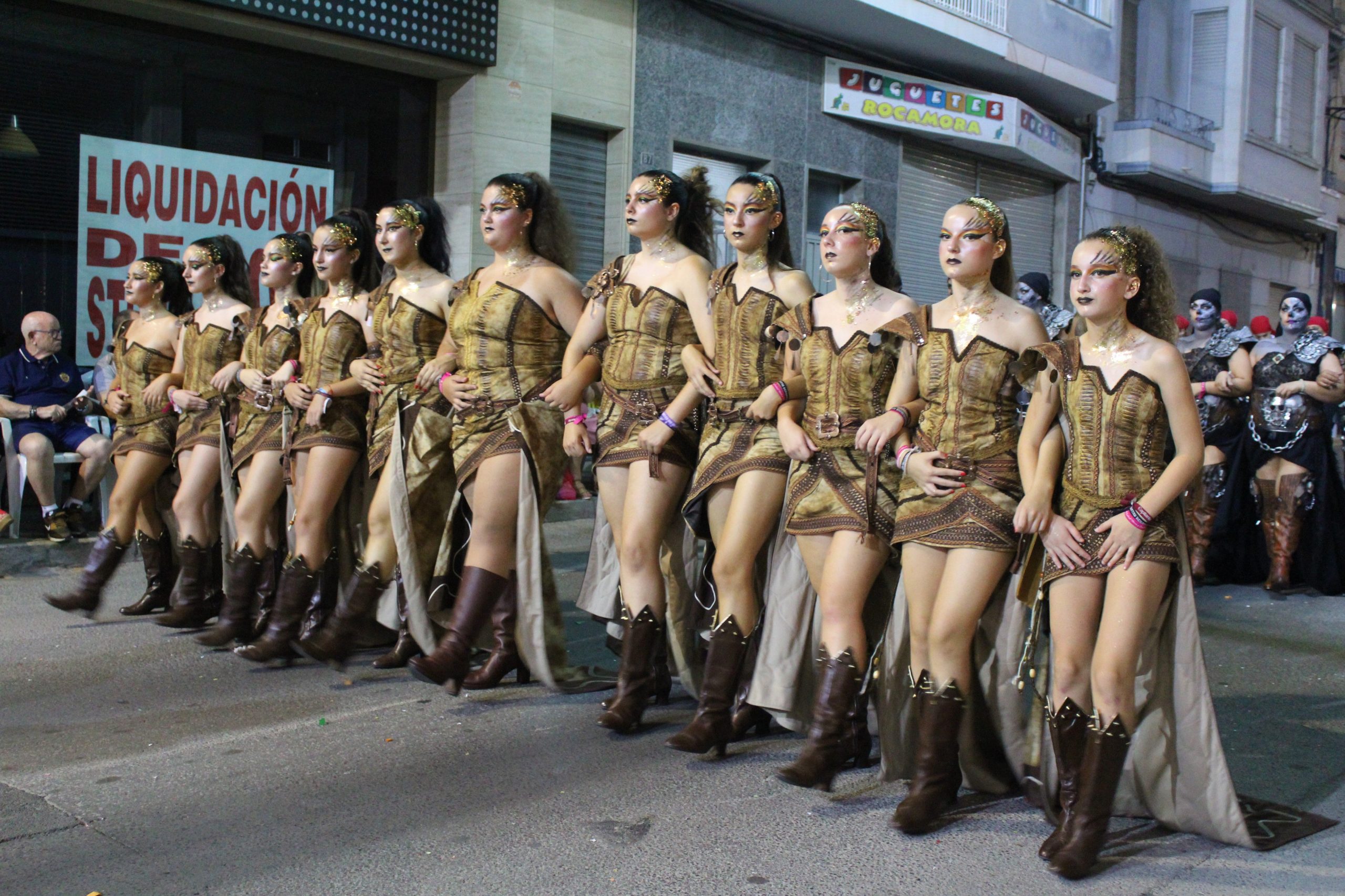 Encabezados por el embajador y Sultana Mora, el bando moro desfiló anoche por las calles de Novelda con las comparsas Árabes Damasquinos, Piratas Berberiscos, Árabe Beduinos, Negres Betànics y Árabes Omeyas. Mientras, el bando cristiano, con su embajador y Reina Cristiana, acompañados por Mozárabes, Zíngaros y Astures, recorrió las calles noveldenses bajo el esplendor de las marchas cristianas.