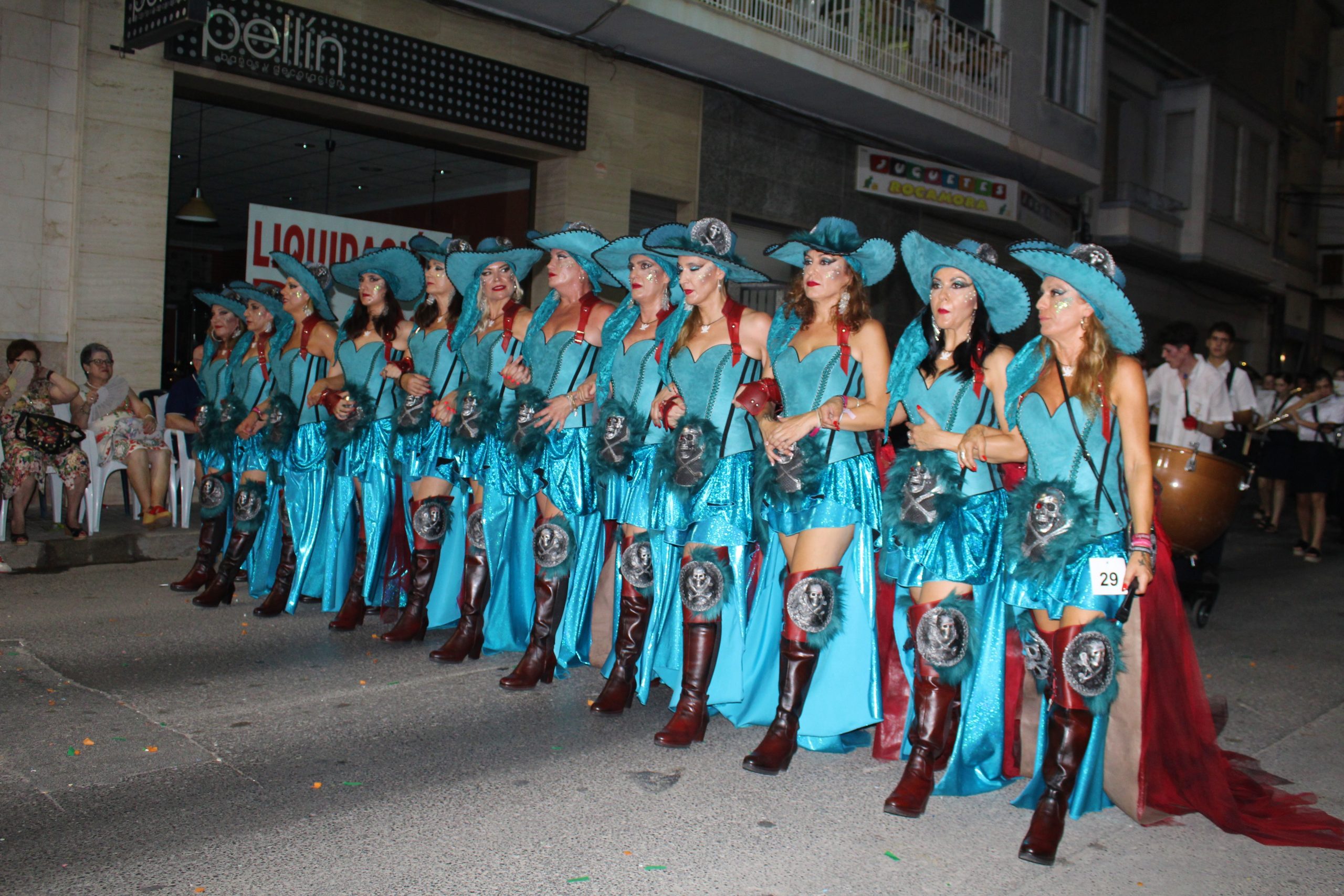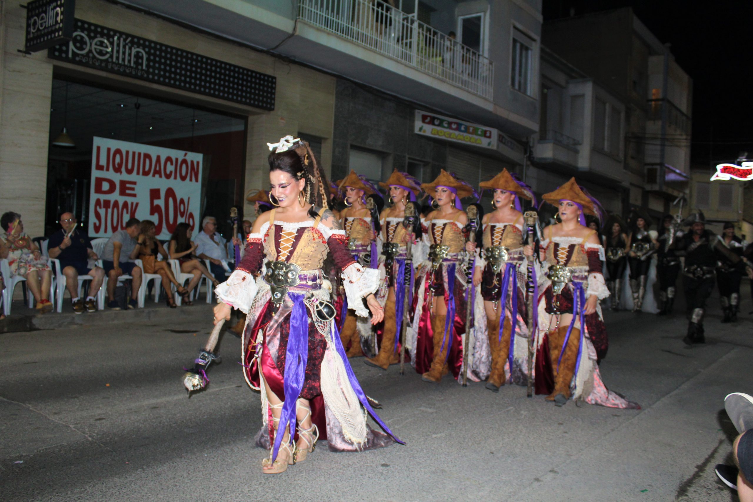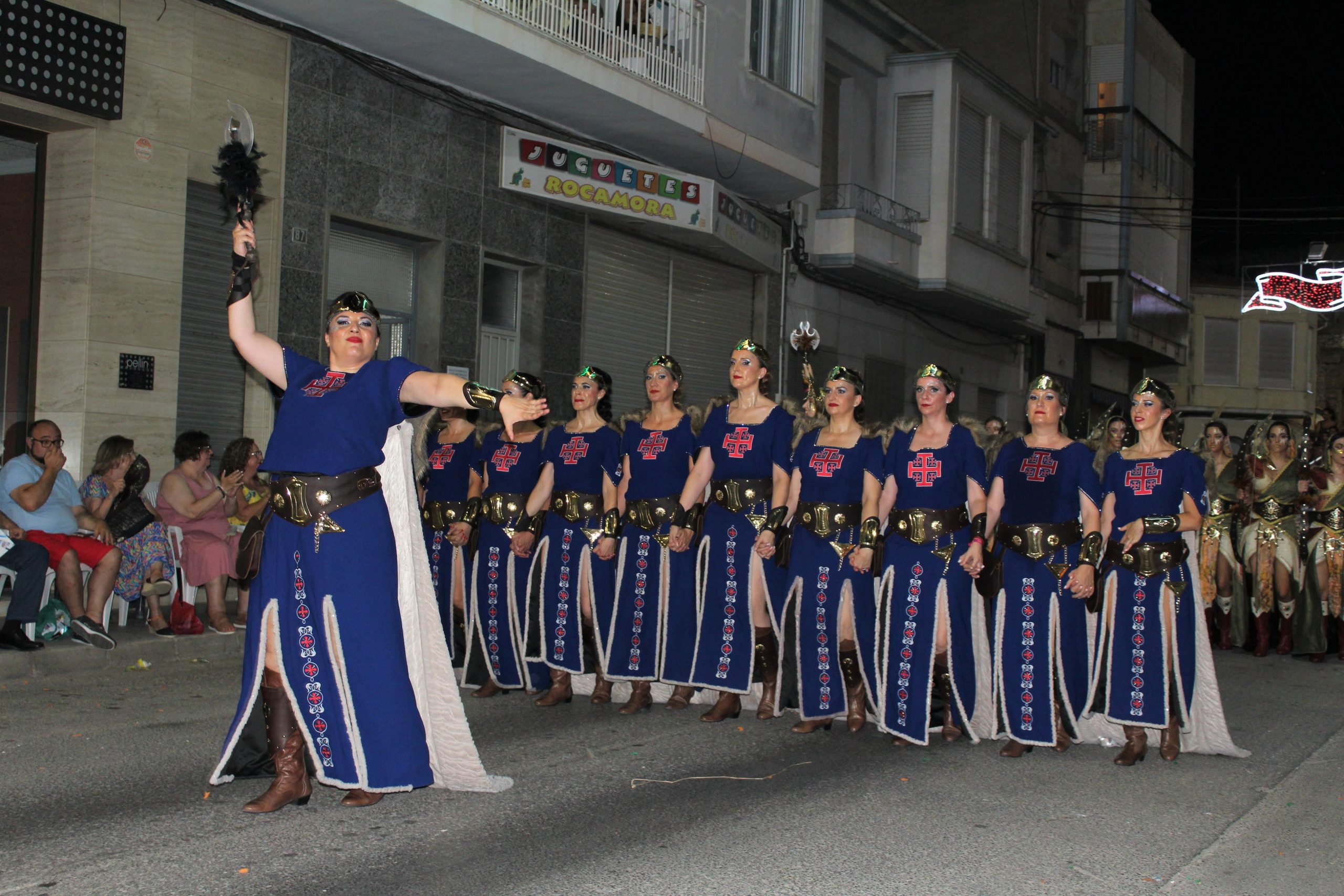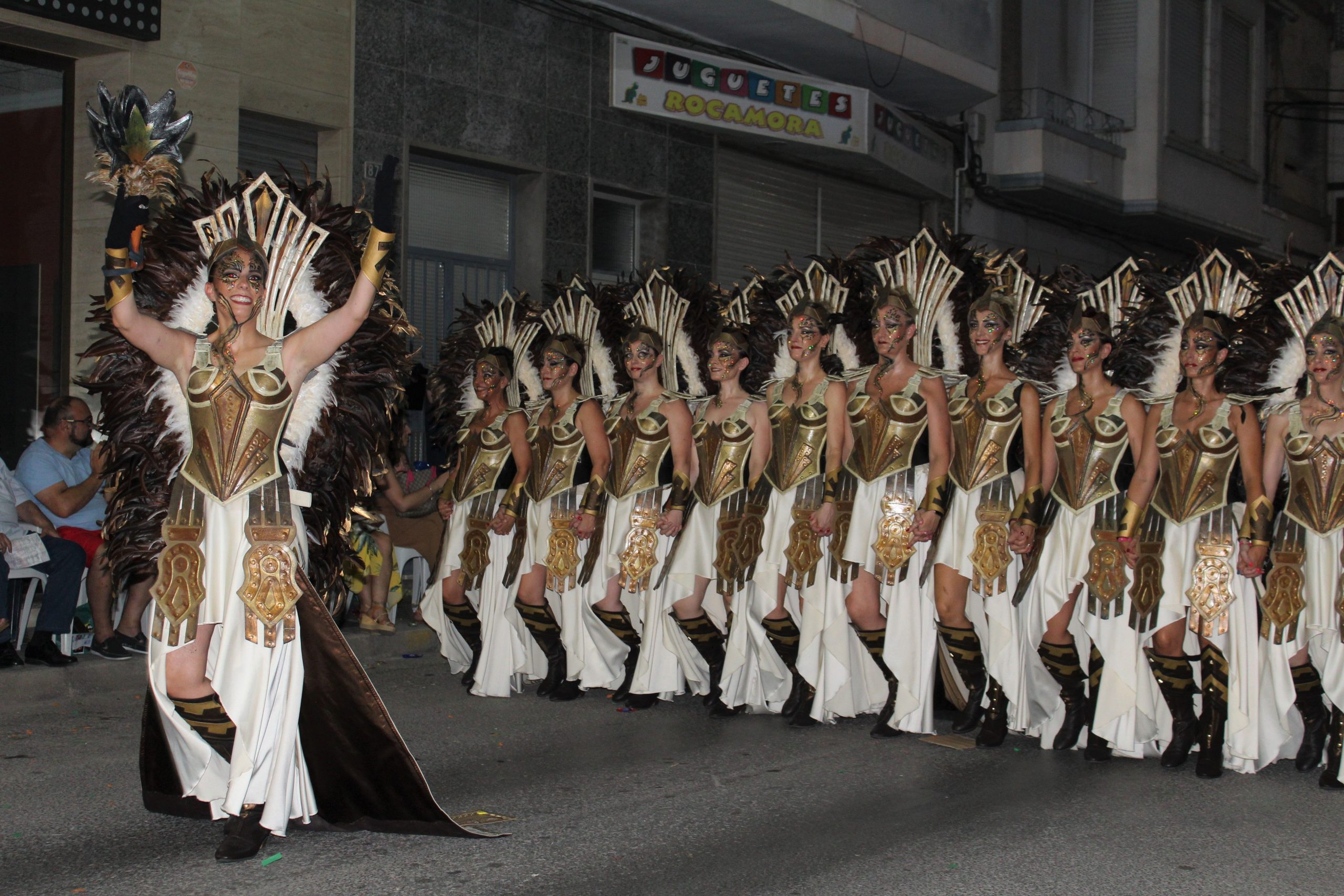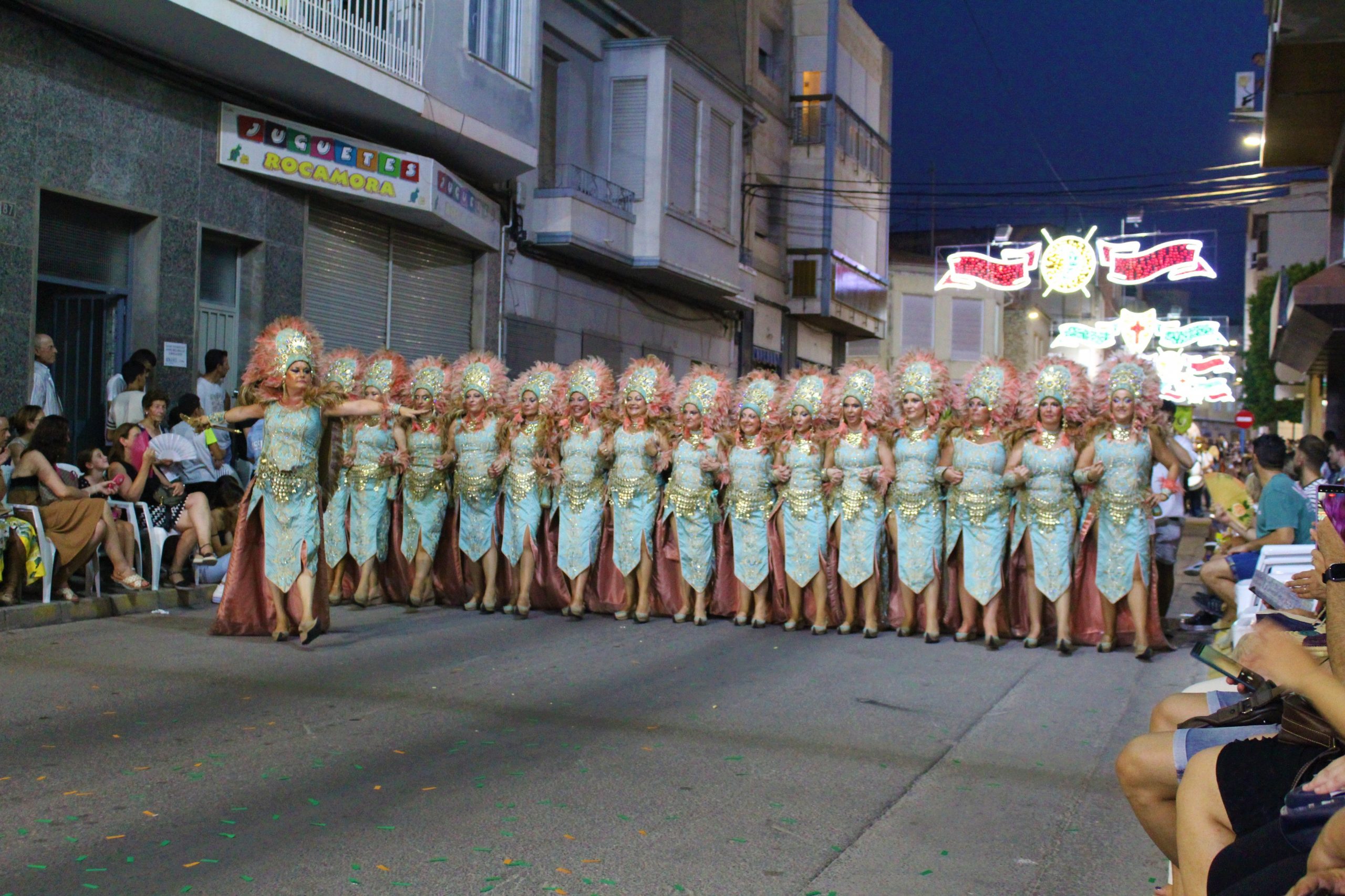 Encabezados por el embajador y Sultana Mora, el bando moro desfiló anoche por las calles de Novelda con las comparsas Árabes Damasquinos, Piratas Berberiscos, Árabe Beduinos, Negres Betànics y Árabes Omeyas. Mientras, el bando cristiano, con su embajador y Reina Cristiana, acompañados por Mozárabes, Zíngaros y Astures, recorrió las calles noveldenses bajo el esplendor de las marchas cristianas.