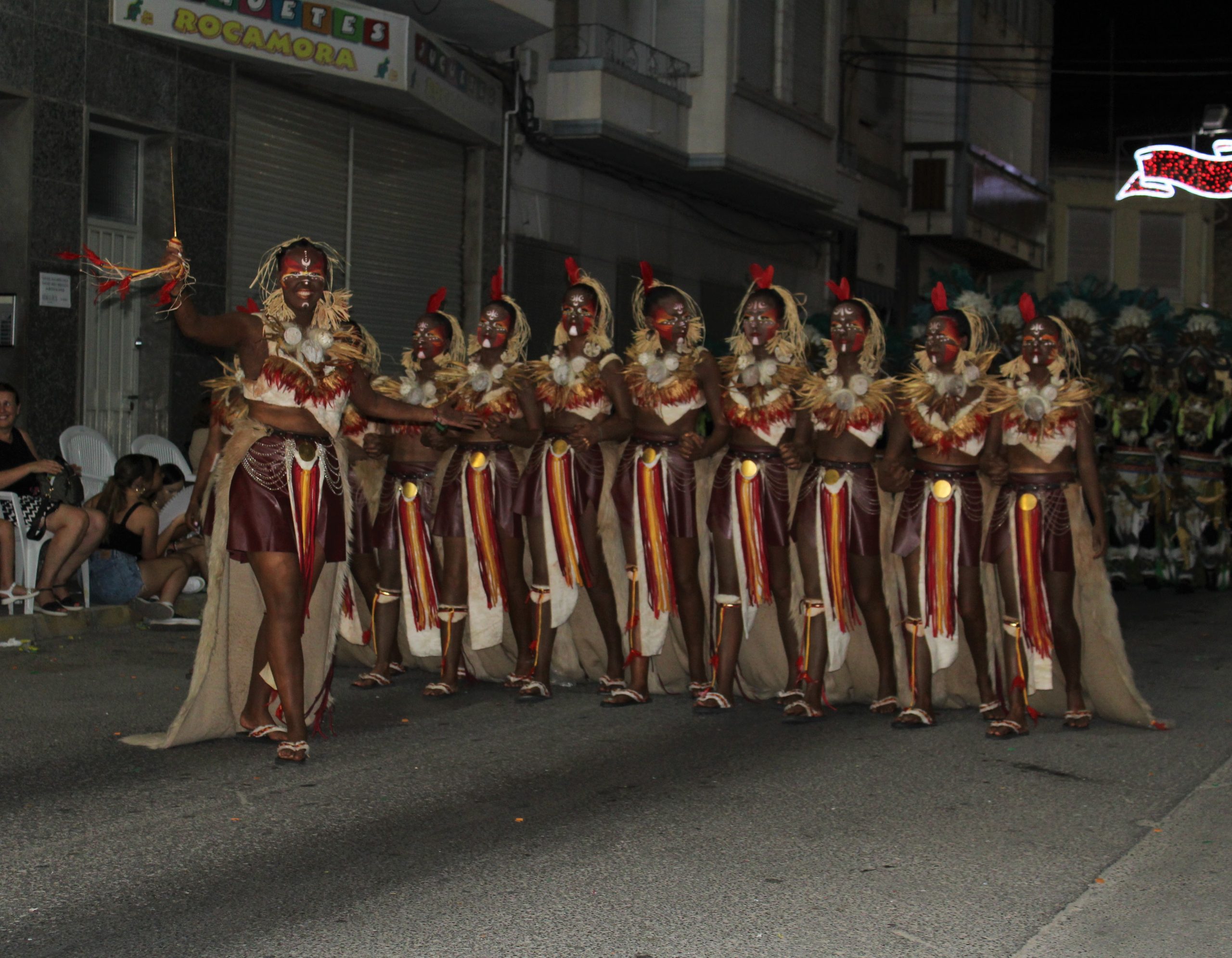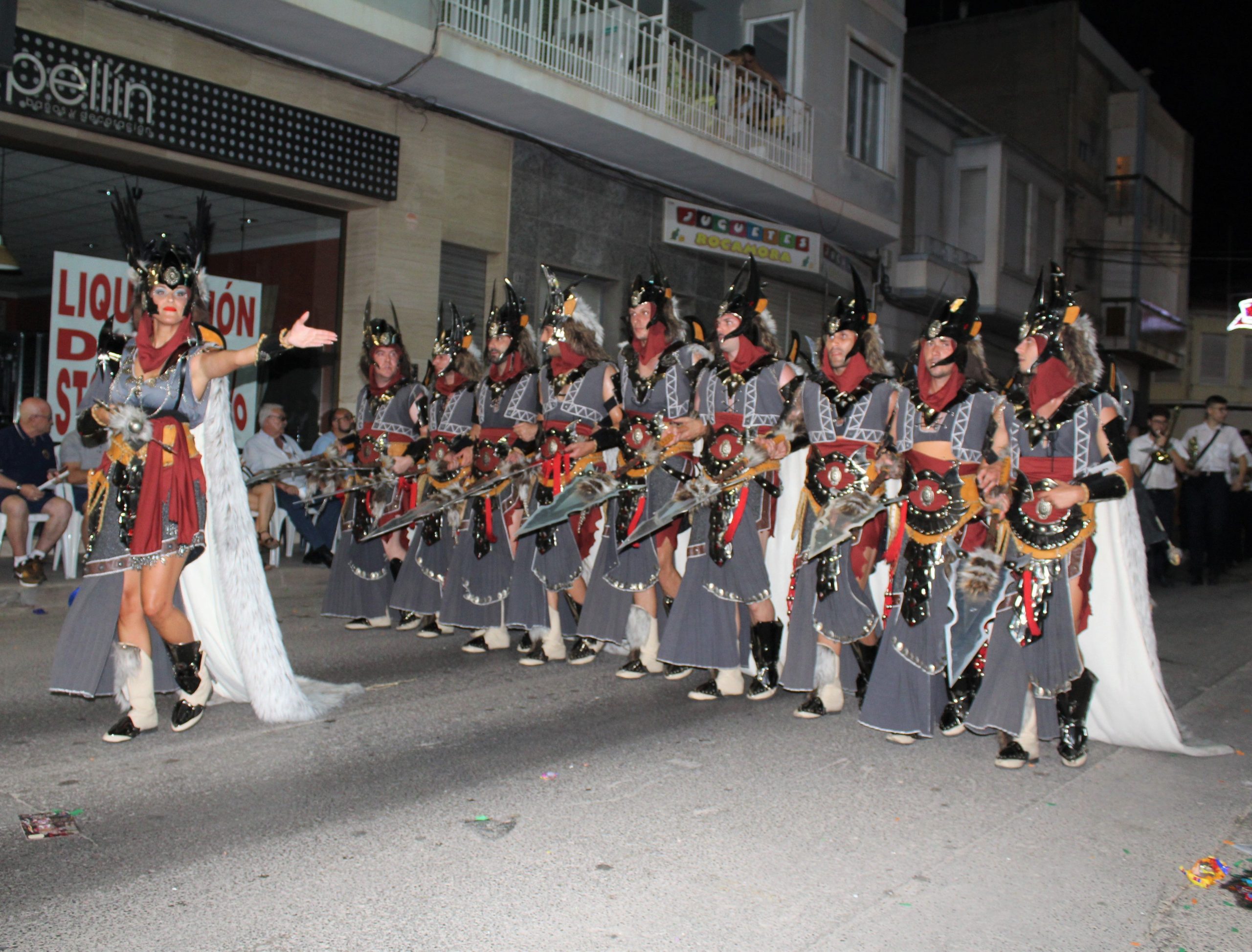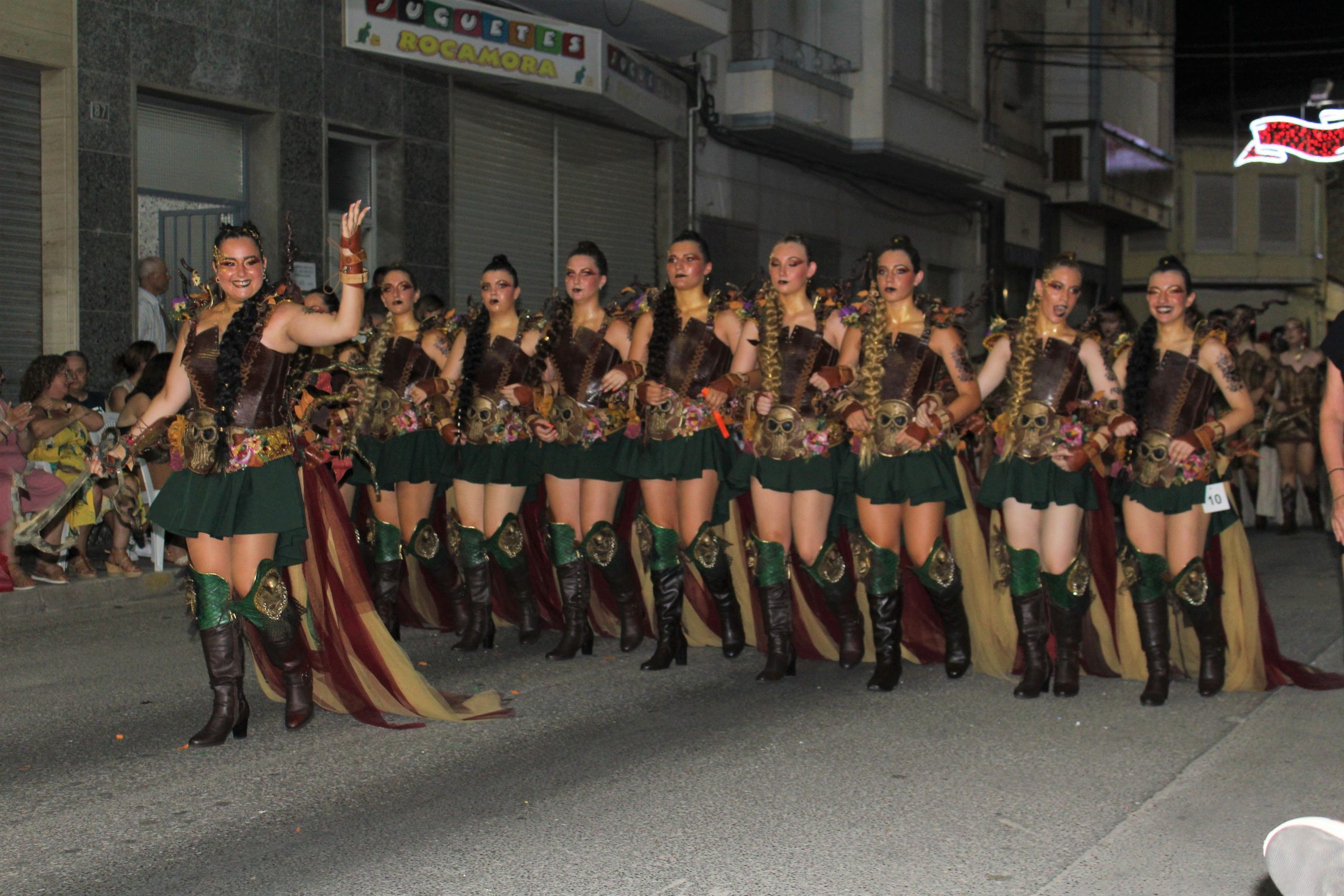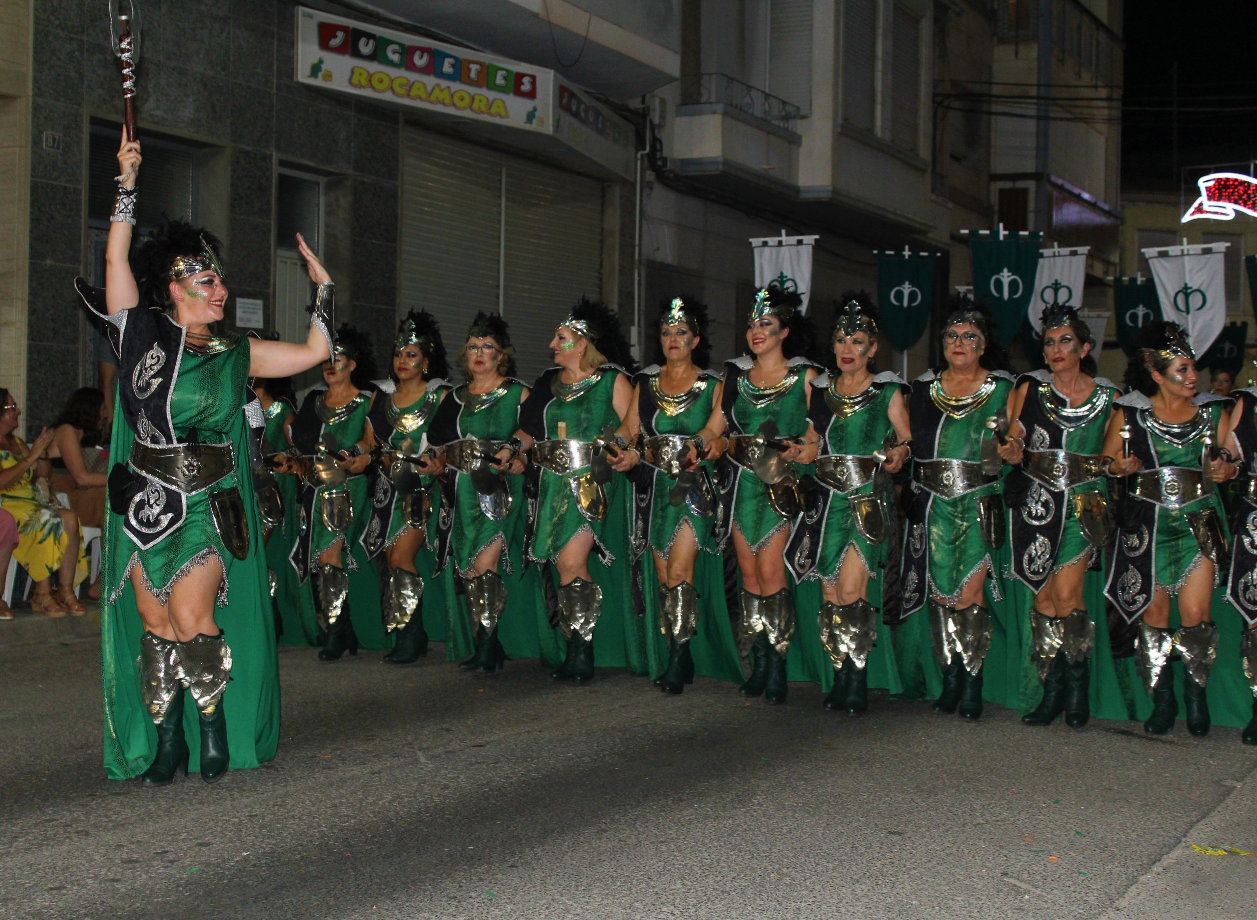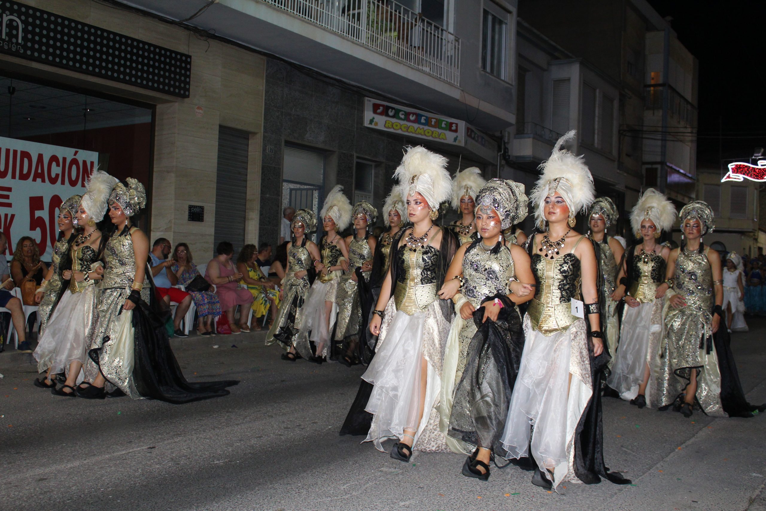 Encabezados por el embajador y Sultana Mora, el bando moro desfiló anoche por las calles de Novelda con las comparsas Árabes Damasquinos, Piratas Berberiscos, Árabe Beduinos, Negres Betànics y Árabes Omeyas. Mientras, el bando cristiano, con su embajador y Reina Cristiana, acompañados por Mozárabes, Zíngaros y Astures, recorrió las calles noveldenses bajo el esplendor de las marchas cristianas.