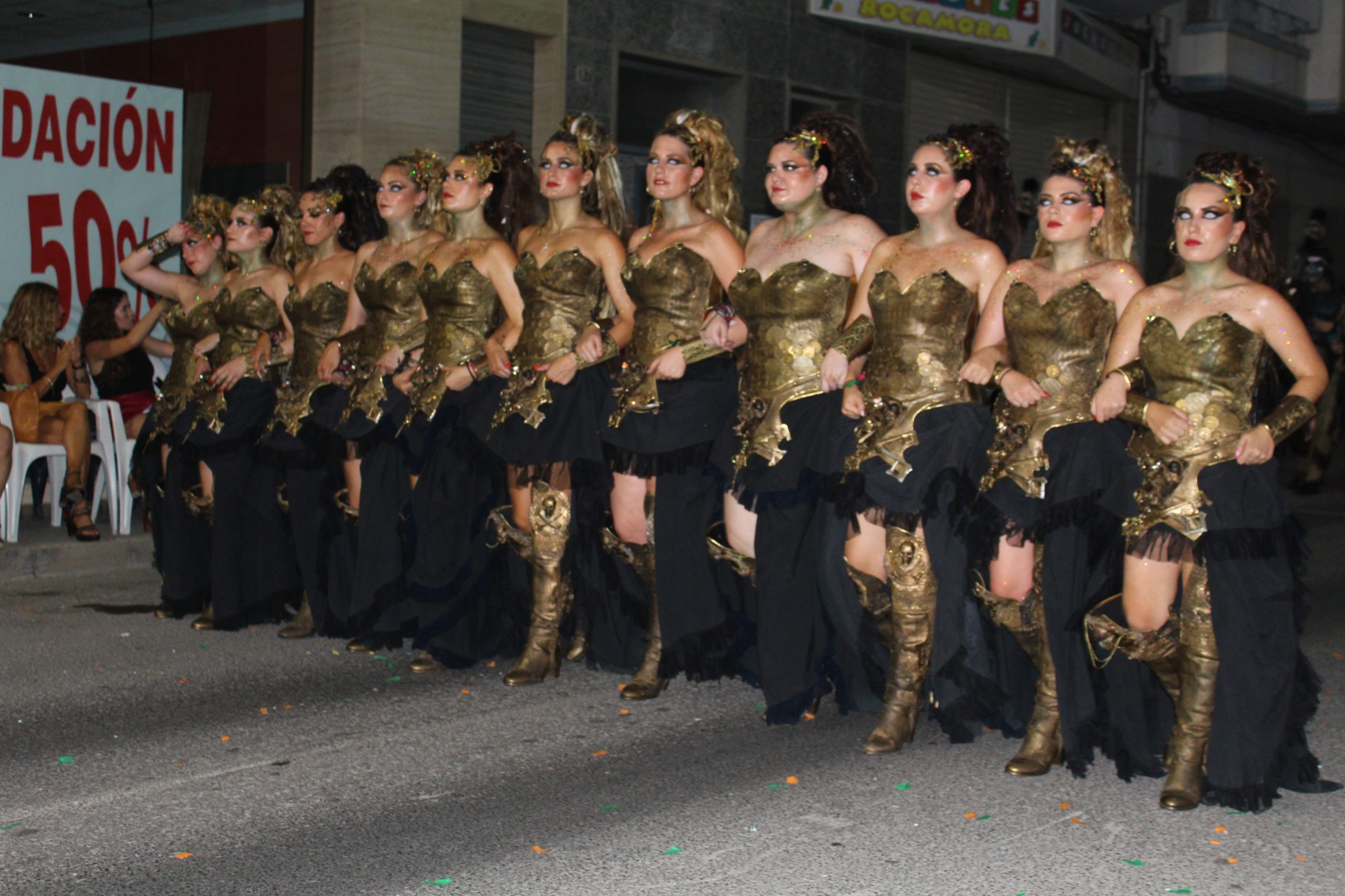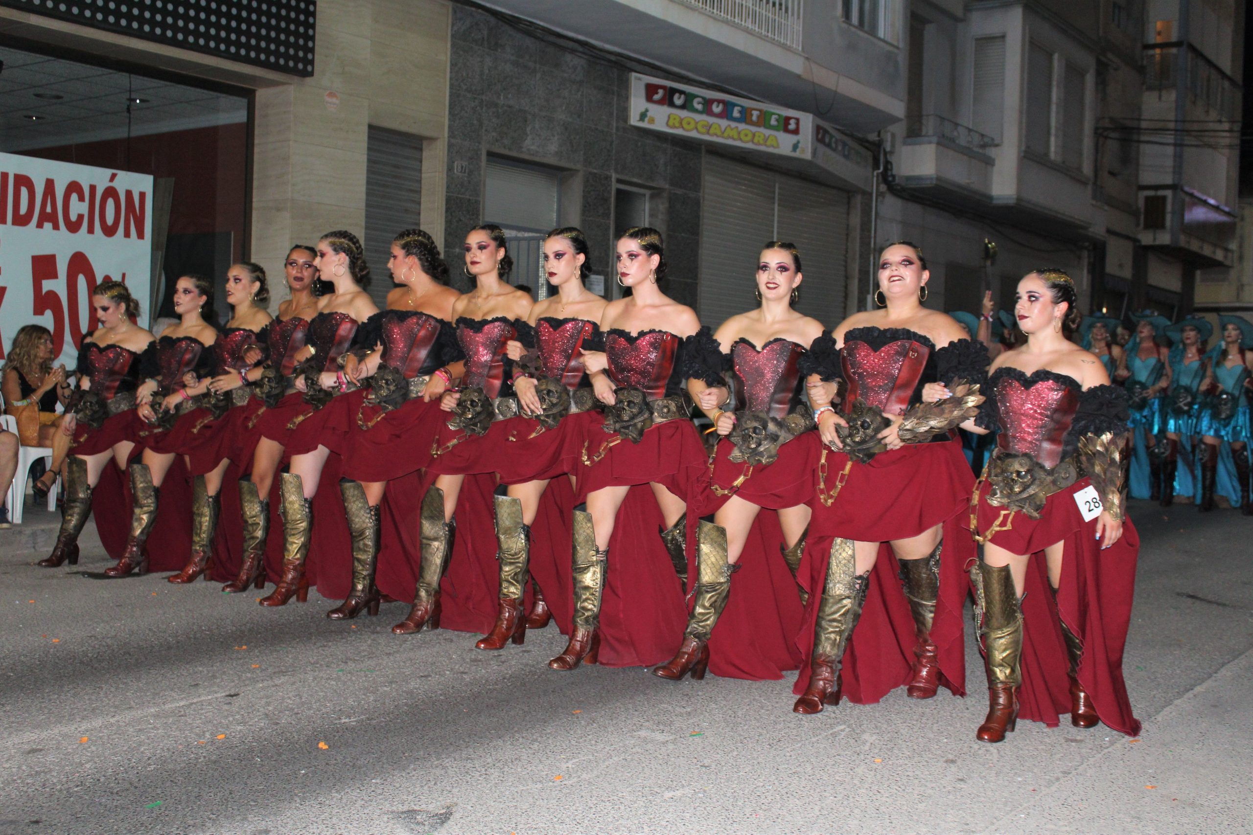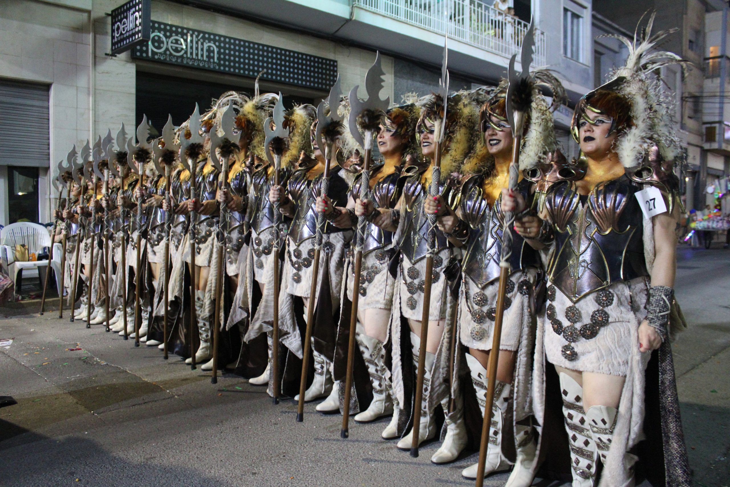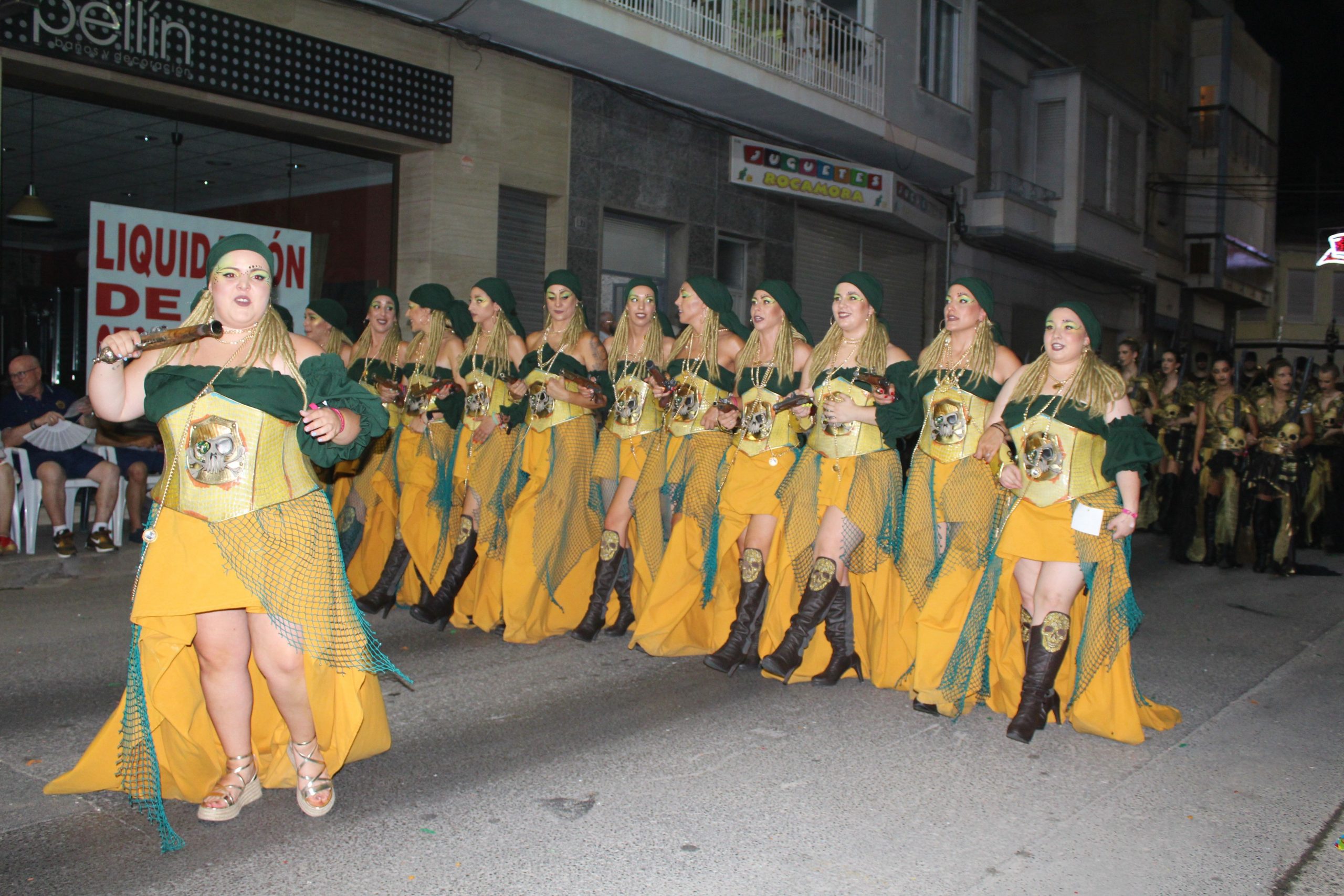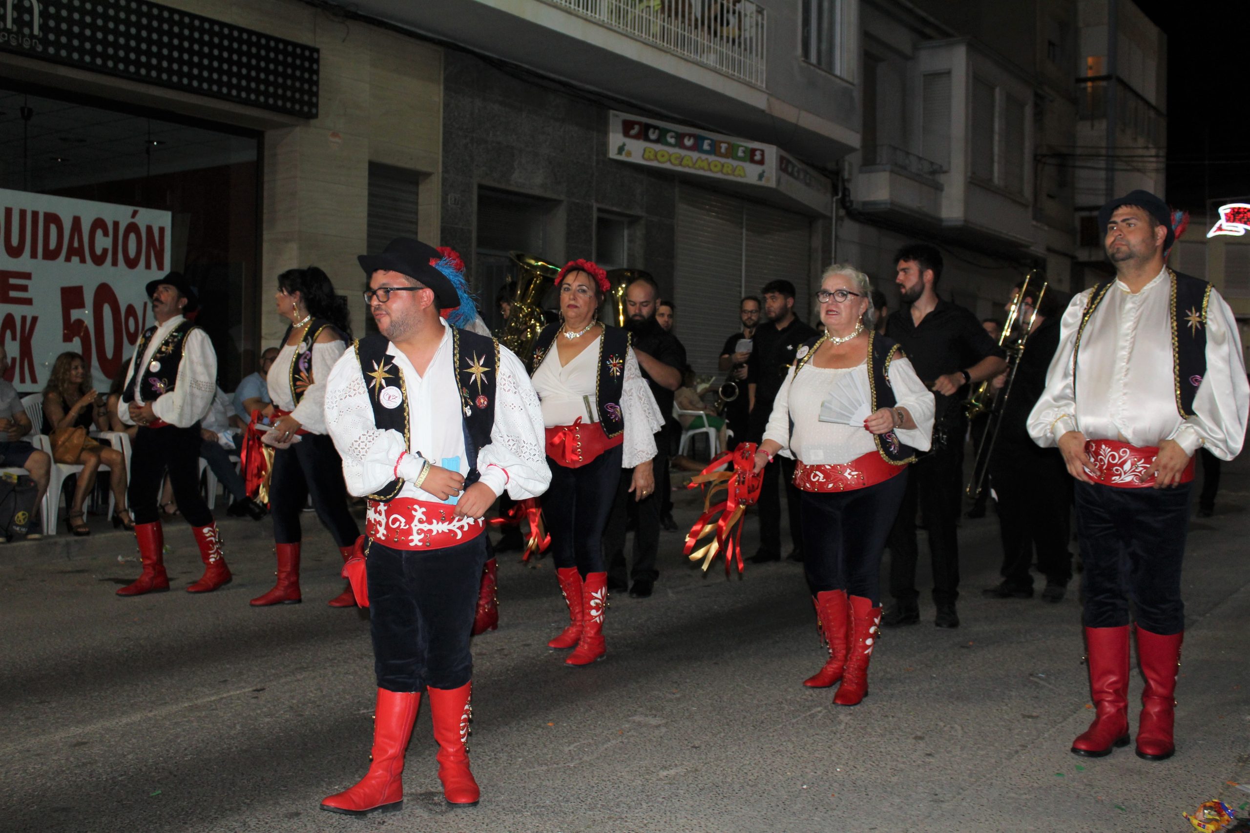 Encabezados por el embajador y Sultana Mora, el bando moro desfiló anoche por las calles de Novelda con las comparsas Árabes Damasquinos, Piratas Berberiscos, Árabe Beduinos, Negres Betànics y Árabes Omeyas. Mientras, el bando cristiano, con su embajador y Reina Cristiana, acompañados por Mozárabes, Zíngaros y Astures, recorrió las calles noveldenses bajo el esplendor de las marchas cristianas.