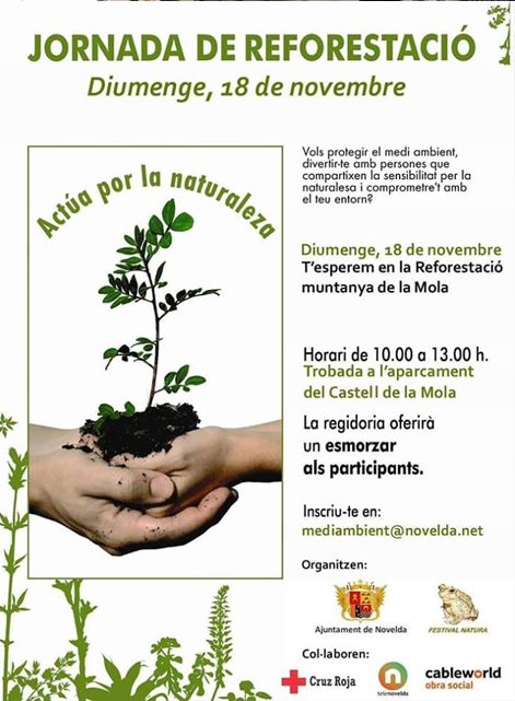 La concejalía de Calidad Ambiental y la Asociación Festival Natura han organizado una jornada popular de reforestación que tendrá lugar el próximo domingo, 18 de noviembre, en el cerro de La Mola y el cauce del río Vinalopó.