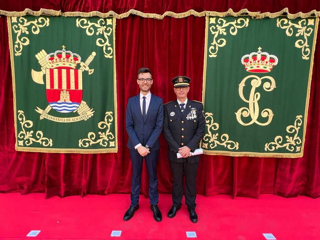 El intendente de la Policía Local, Rafa Sarrió, recibió, en el marco de la celebración de la festividad de la Virgen del Pilar en Alicante, una distinción honorífica por el empeño y cumplimiento de sus obligaciones personales y profesionales, así como por la colaboración demostrada con la Guardia Civil.