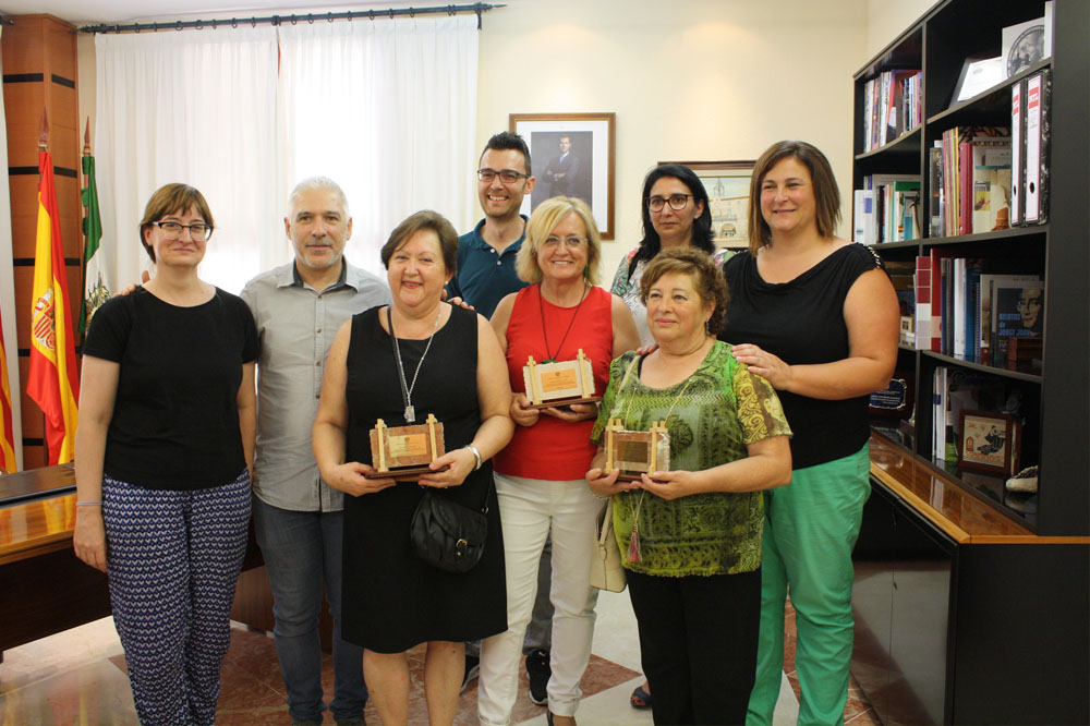 Arropadas por el personal del departamento en el que han desarrollado su trayectoria profesional, Carmen Bañón Pérez, Alicia Martínez Sepulcre y Carmen Molina Córdoba recibieron en el despacho de Alcaldía el agradecimiento del alcalde “por su dedicación en Servicios Sociales, un área fundamental en este pueblo”. Esteve felicitó a las tres trabajadoras, a las que entregó una placa en reconocimiento a sus años de servicio en el Ayuntamiento, y expresó su deseo de que “vivan y disfruten la nueva etapa que se les presenta con mayor libertad”.