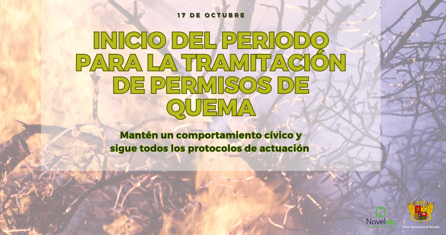 La concejalía de Medio Ambiente ha informado de la apertura mañana martes, 17 de octubre, del periodo de presentación de la documentación para la quema de rastrojos y restos de poda, un trámite que se puede realizar a través de la Sede Electrónica del Ayuntamiento y de forma presencial, con cita previa específica para quemas, que se podrá solicitar a través del banner de portada de la página web municipal (www.novelda.es), en la Oficina de Atención Ciudadana .