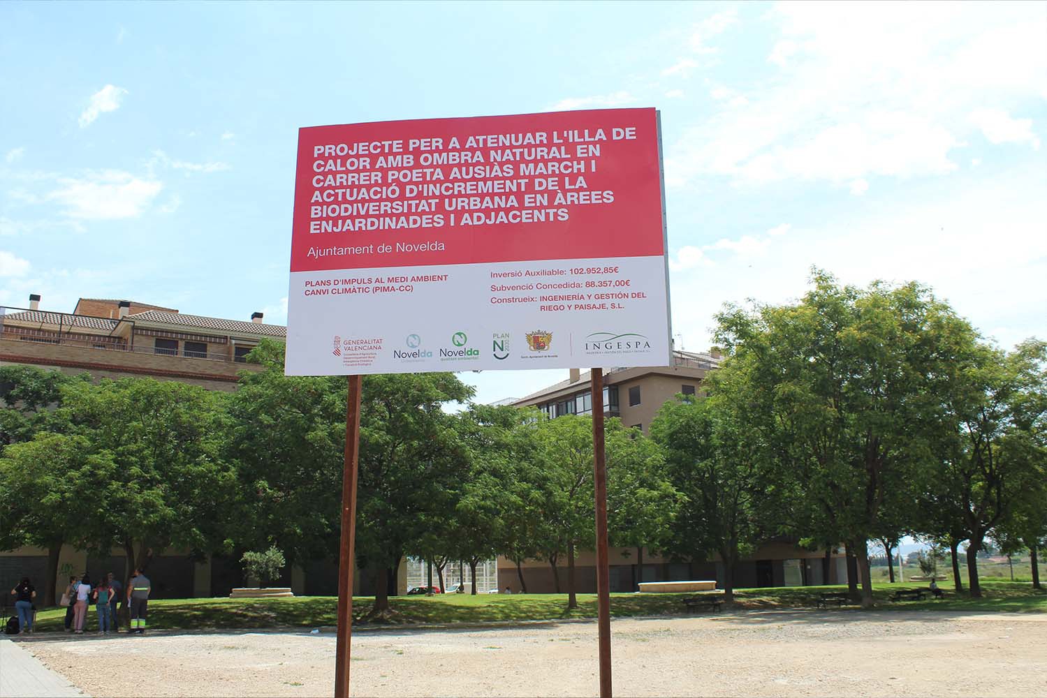 El Ayuntamiento de Novelda ha firmado el acta de replanteo para el inicio de las obras del proyecto de atenuación de la isla de calor, una iniciativa que, con la cofinanciación de la Conselleria de Emergencia Climática y Transición Ecológica, pretende reducir la sensación térmica de calor en las áreas ajardinadas del entorno de la calle Ausiàs March.