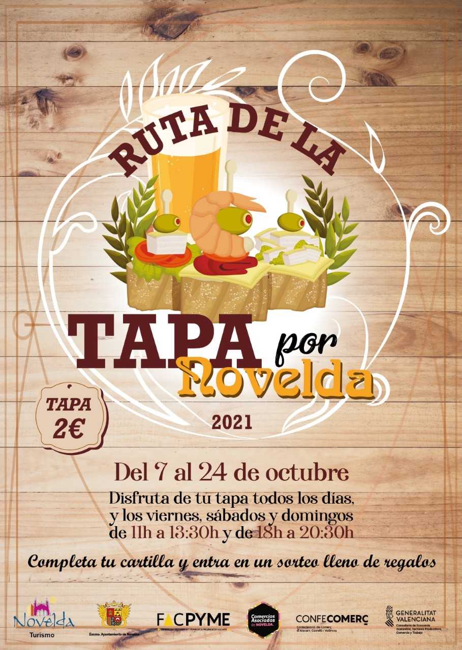 Comercios Asociados de Novelda, con la colaboración de la concejalía de Turismo, pone en marcha, del 7 al 24 de octubre, una nueva edición de la Ruta de Tapas, un evento que tiene como objetivo la promoción gastronómica de Novelda y que este año formará parte de la propuesta lúdica de la V edición de Novelda Modernista.
