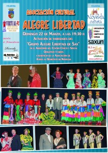 Domingo día 22, a las 19’30 h., en el Auditorio Municipal. Teatro de variedades a cargo de Asociación Cultural “Alegre Libertad”, de Sax. Organiza: Asociación de Ayuda a Diabéticos de Novelda.