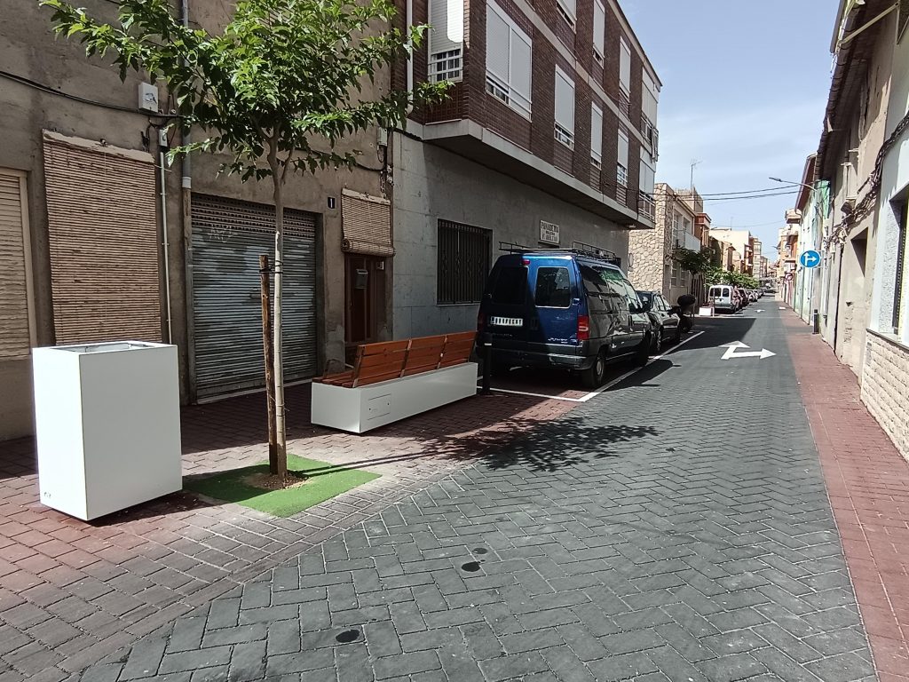 El proyecto ha contemplado no solo la conversión en zonas de preferencia peatonal de estas vías con asfalto impreso que, de fachada a fachada, delimita con diferentes colores los espacios para vehículos y viandantes, sino también una intervención integral en la red de agua potable, sustituyendo el fibrocemento por tubo de conducción dúctil; la modernización del saneamiento, con la mejora de las conducciones de alcantarillado y la implantación de imbornales en puntos estratégicos para facilitar la evacuación de aguas pluviales; la intervención sobre el alumbrado público, con la instalación de luminarias tipo led, la renovación de la señalización vertical y horizontal de tráfico y la instalación de nuevo mobiliario urbano. En este caso Miralles ha recordado que se trata de un mobiliario que mantiene los criterios técnicos y funcionales de la primera fase, con la incorporación en algunos puntos de “bancos libro que nos permiten seguir potenciando la identidad local y poniendo en valor el modernismo que identifica a la ciudad”. Además se ha realizado una actuación especial en el parque que delimita las calles Vázquez de Mella y Espoz y Mina, donde se han instalado juegos infantiles e inclusivos, y también una intervención para la creación de alcorques y plantación de arbolado en algunas de las vías con los que “conseguir algo de sombra y rebajar las altas temperaturas”.